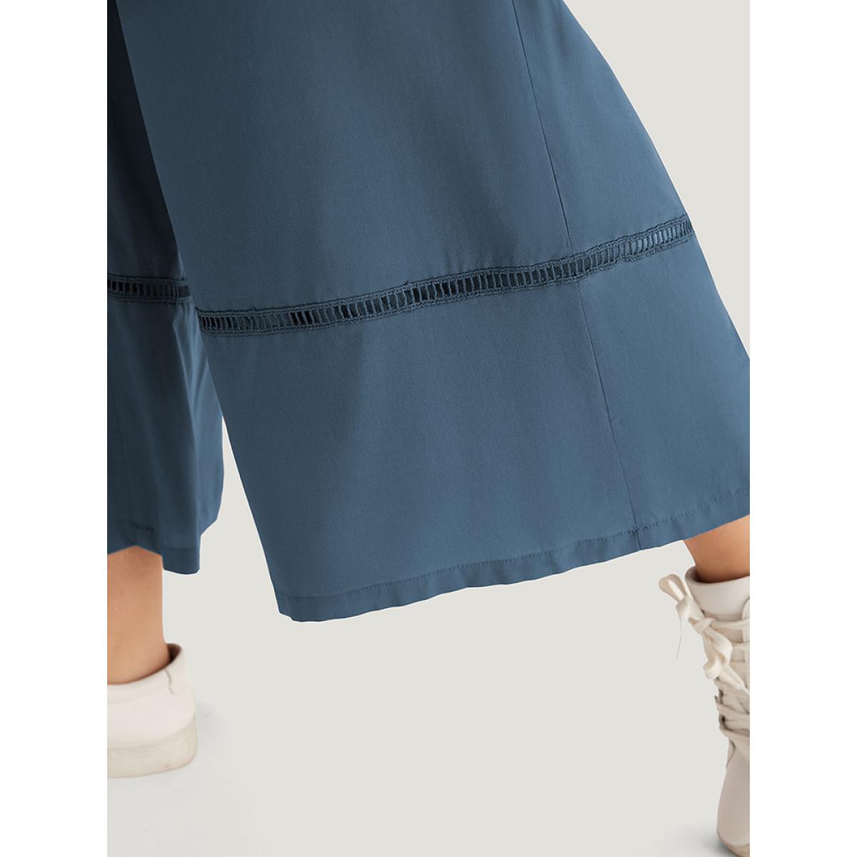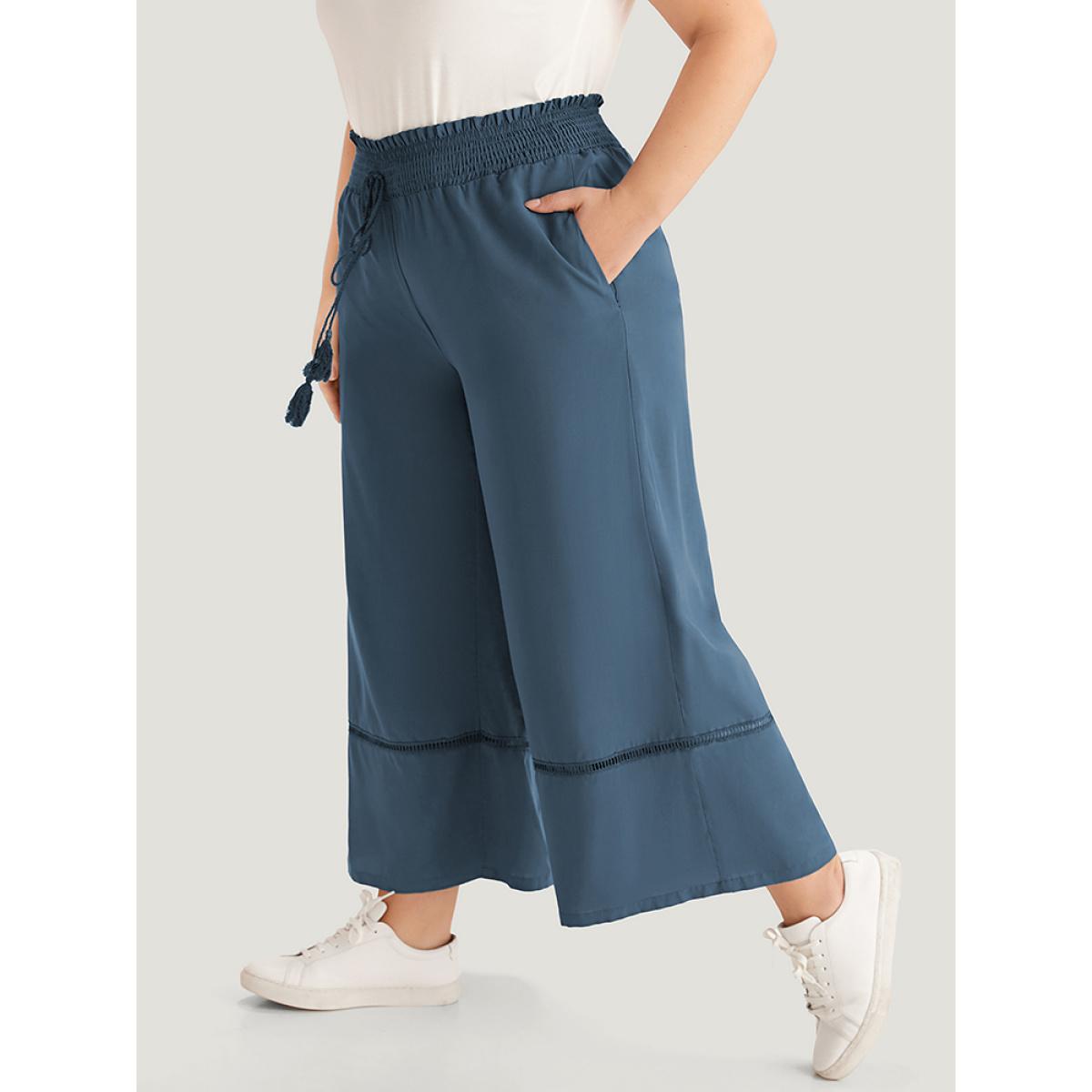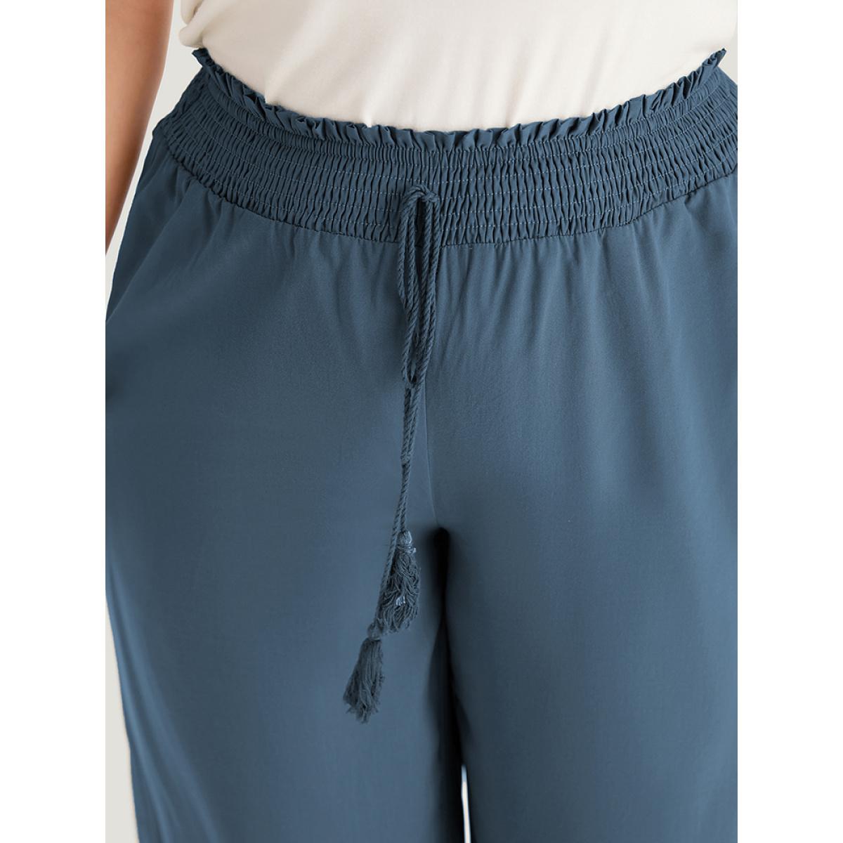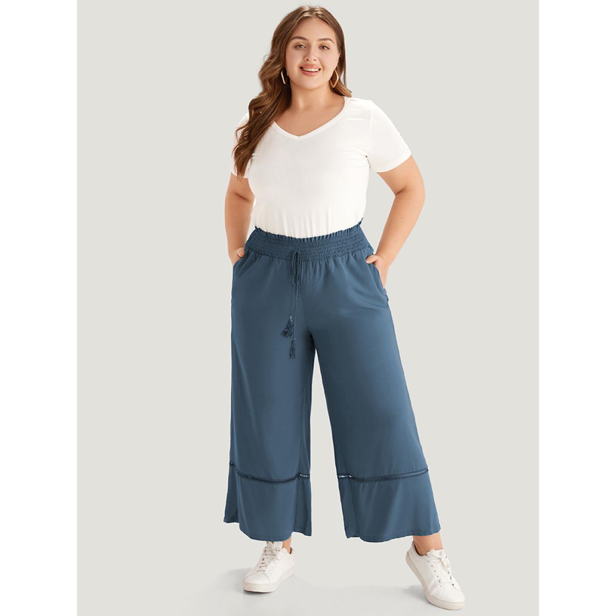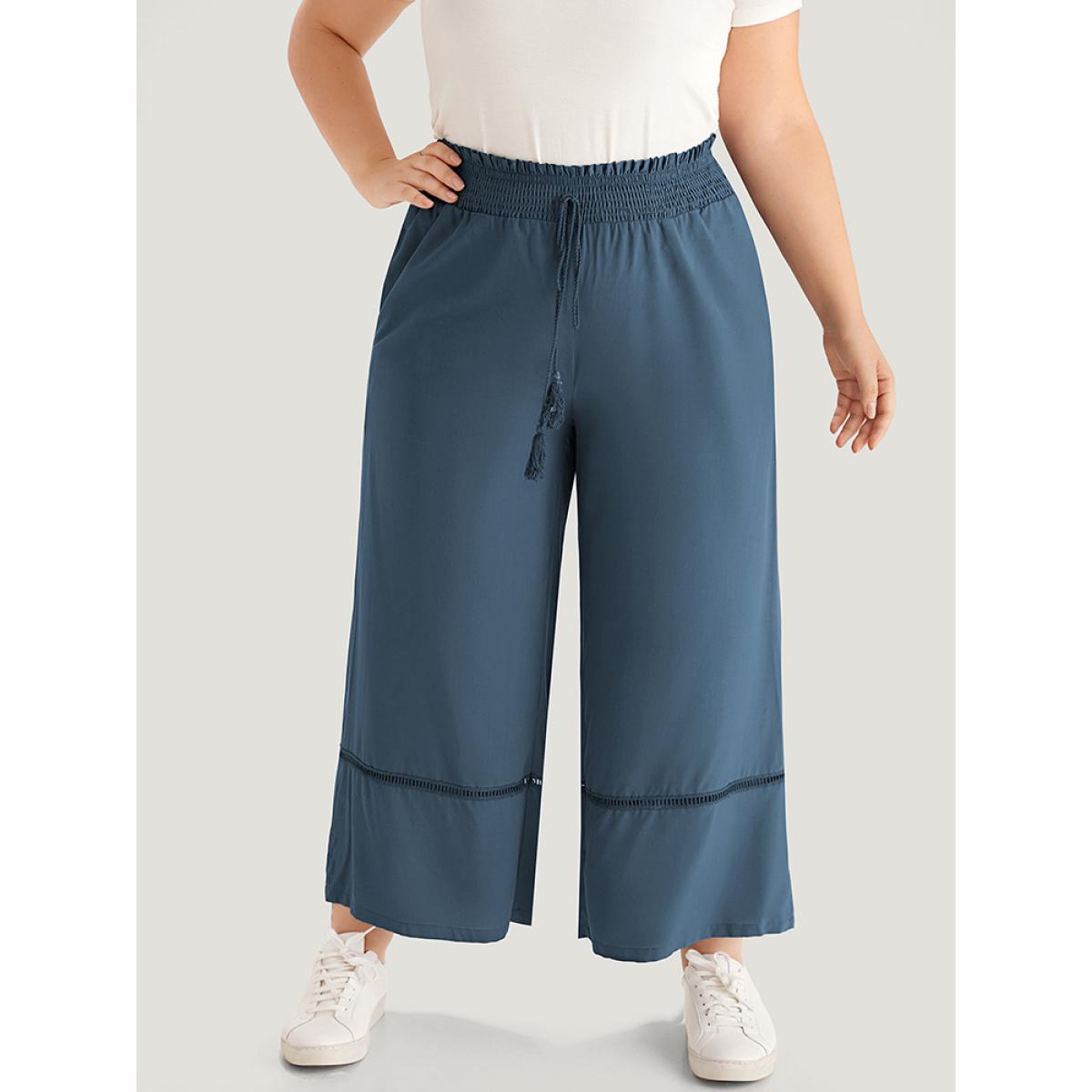 Plus Size Solid Shirred Bowknot Paperbag Waist Patchwork Pants Women Aegean Casual Straight Leg High Rise Dailywear Pants BloomChic 30/6X