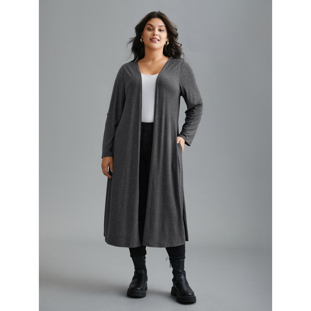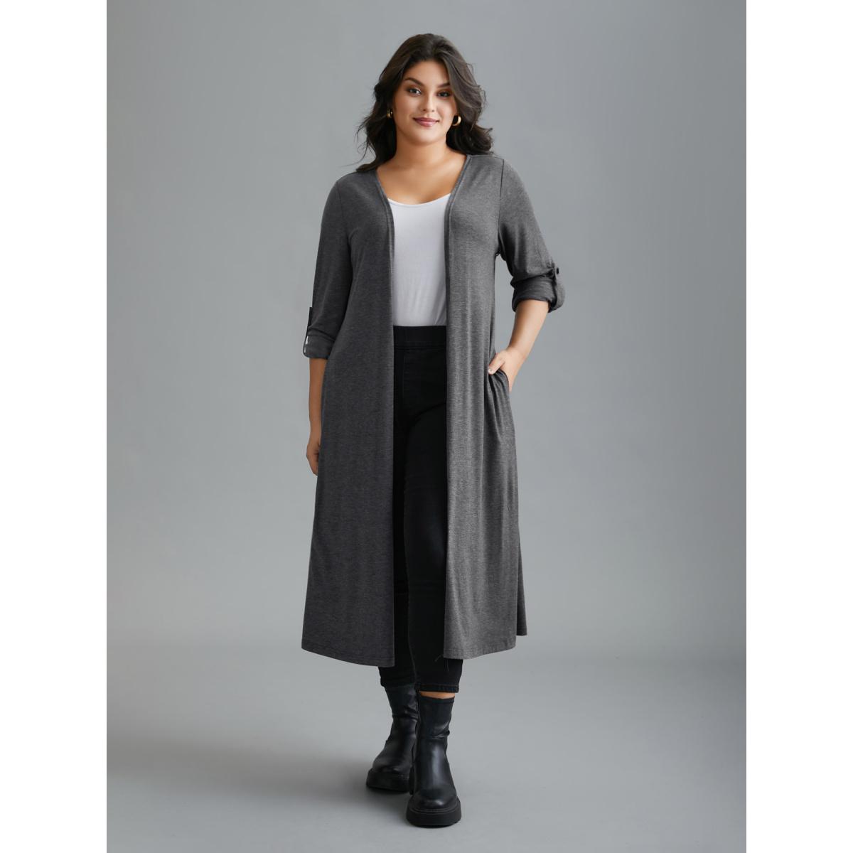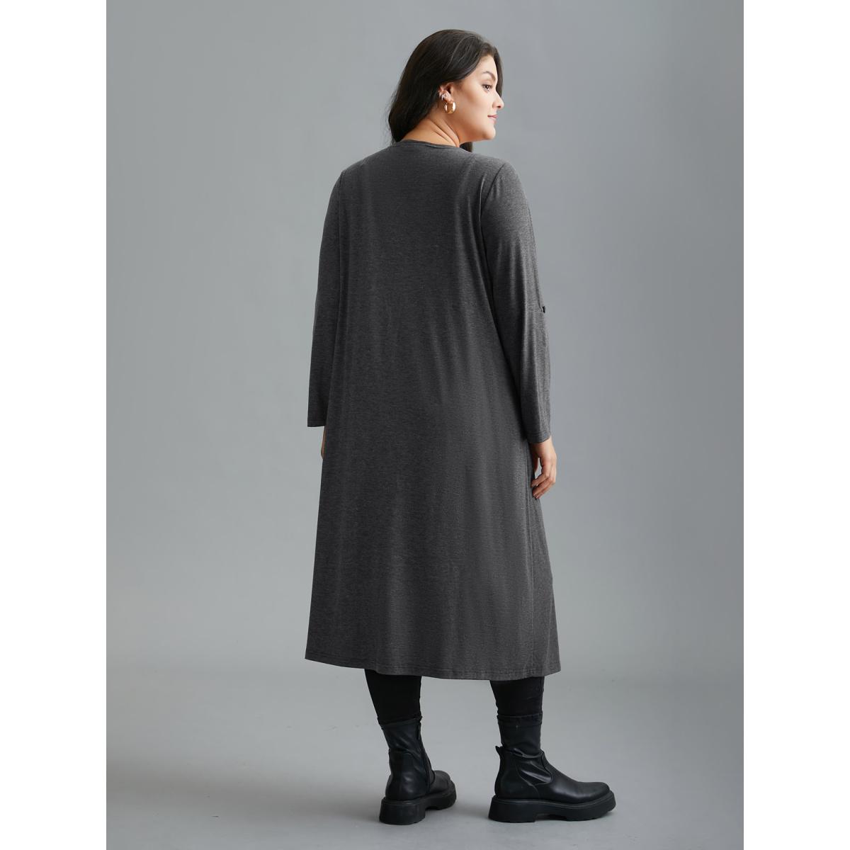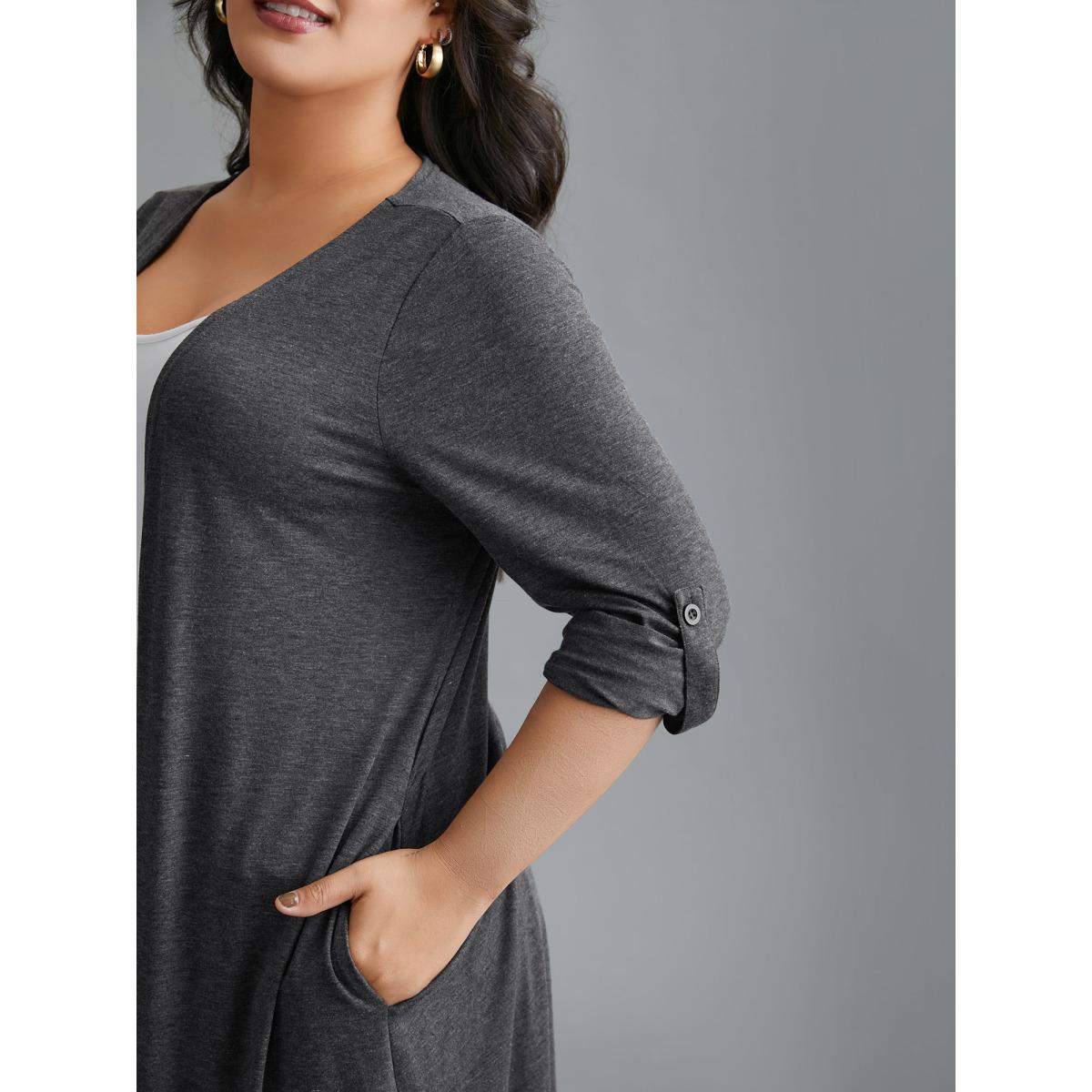 Plus Size Solid Tab Sleeve Pocket Kimono Women DimGray Casual Button Loose Side seam pocket Everyday Kimonos BloomChic 30/6X