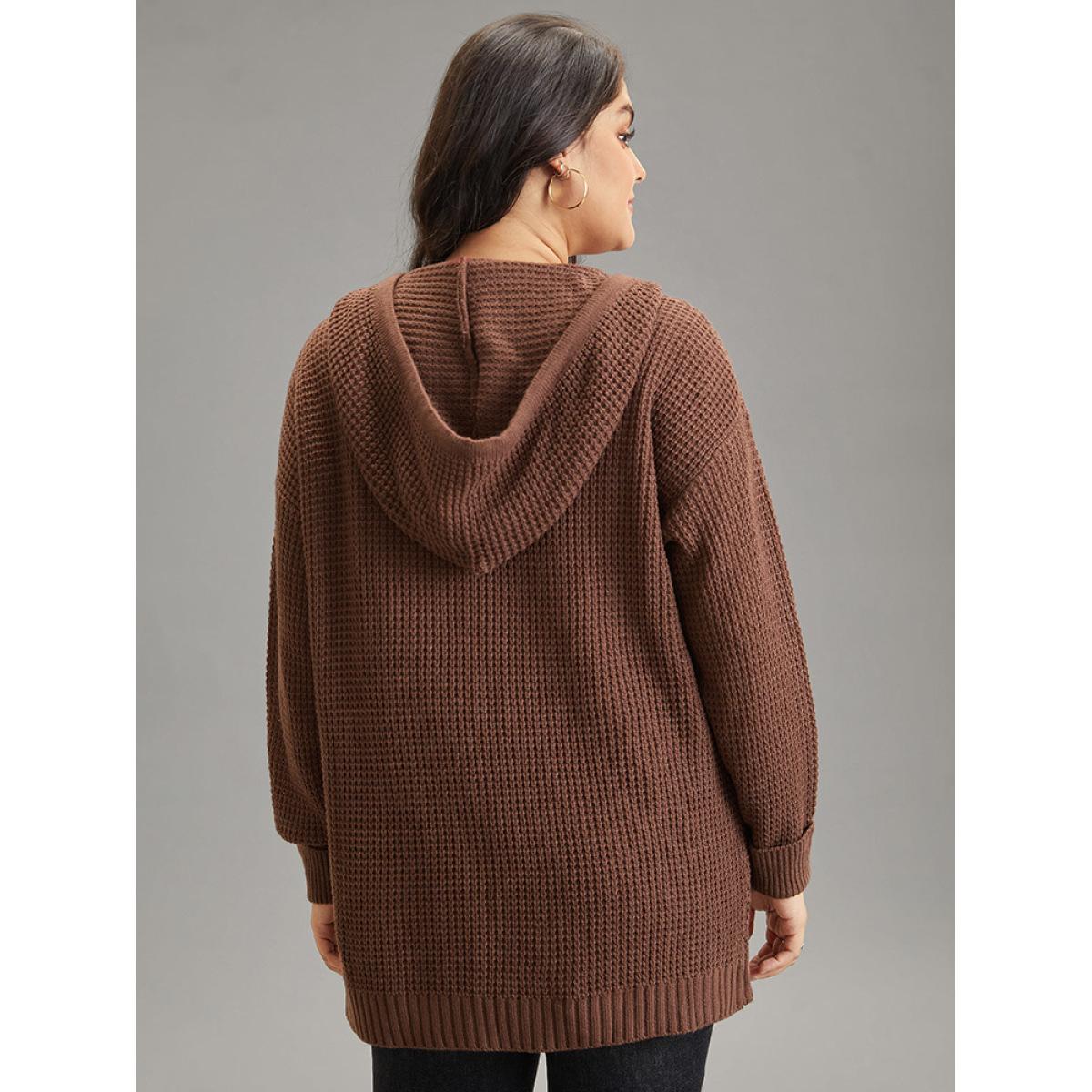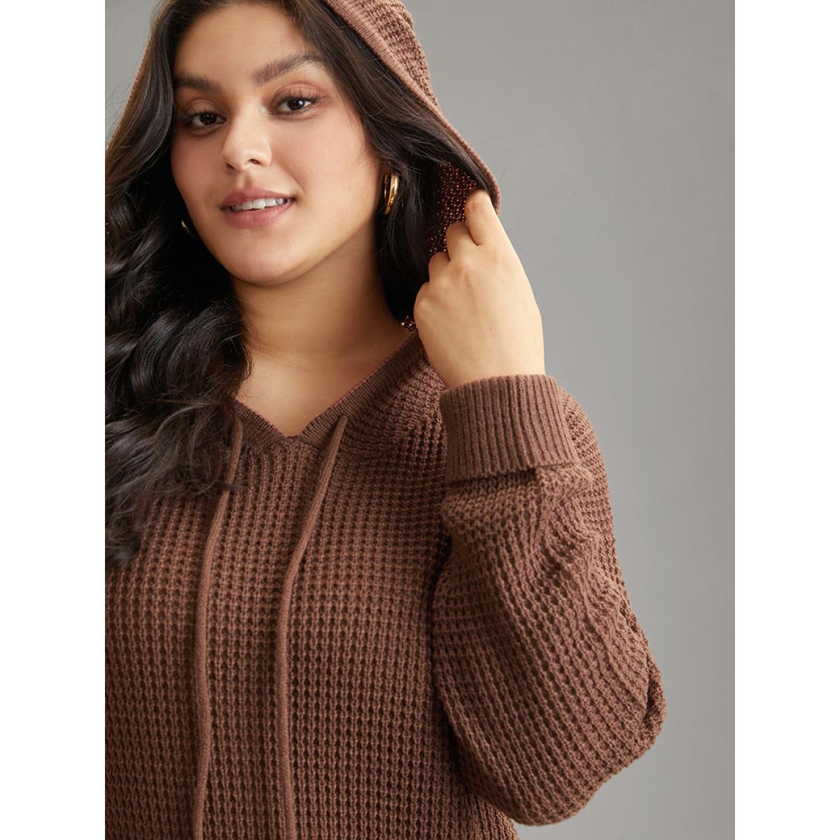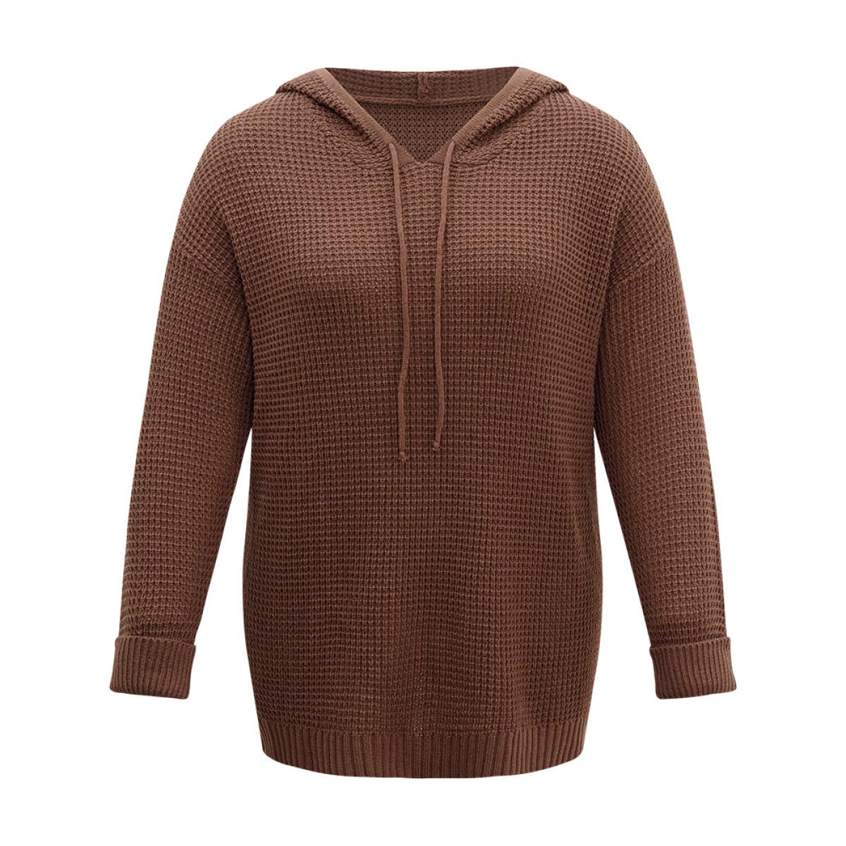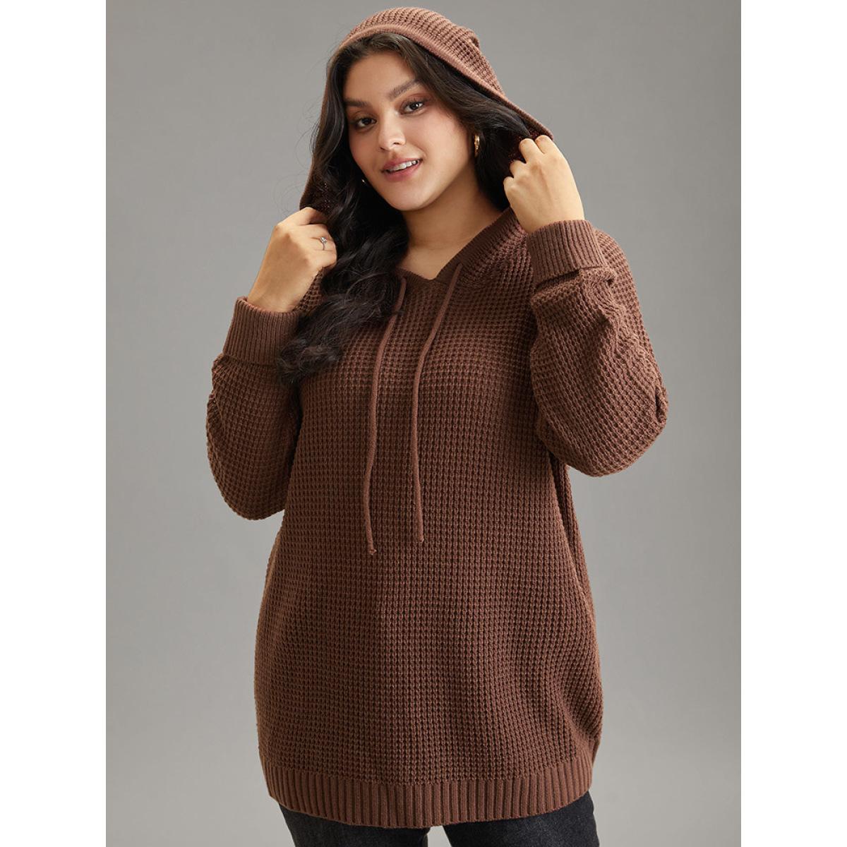 Plus Size Solid Texture Hooded Drawstring Pullover Rust Women Casual Loose Long Sleeve Hooded Dailywear Pullovers BloomChic 22-24/3X