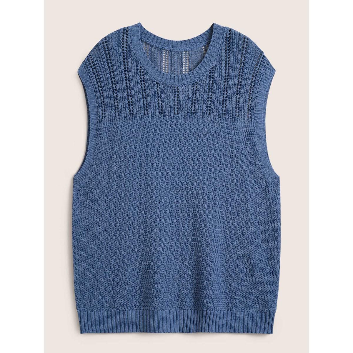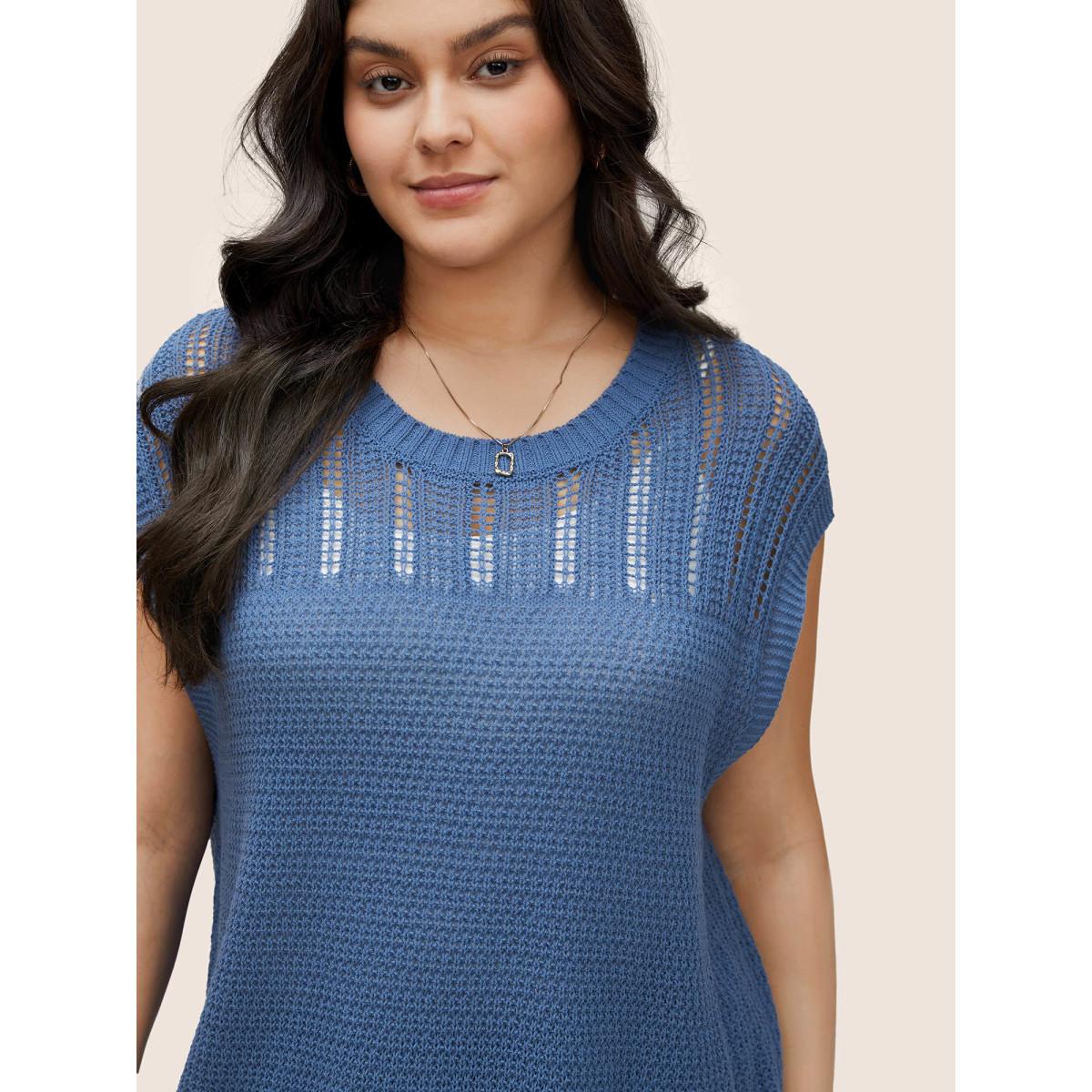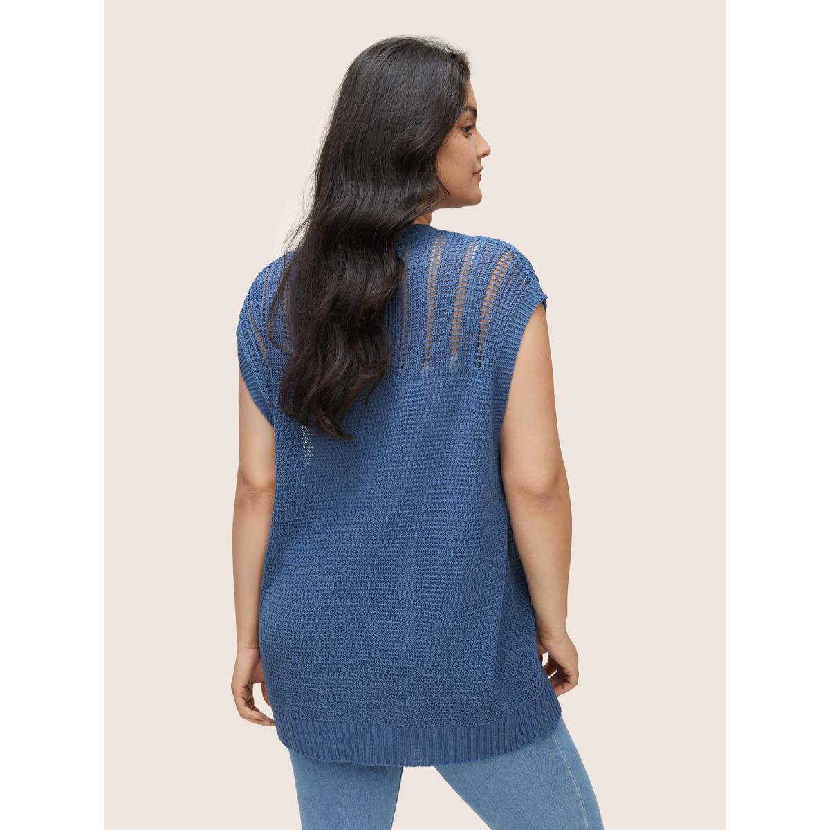 Plus Size Solid Texture Pointelle Knit Sweater Vest Aegean Women Casual Sleeveless Round Neck Everyday Pullovers BloomChic 30/6X