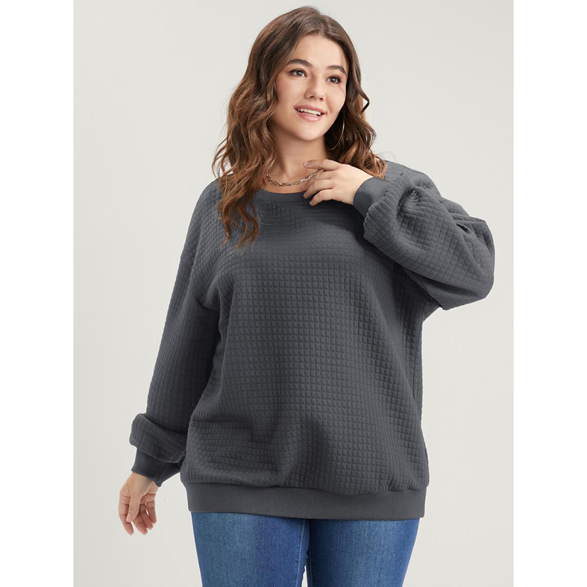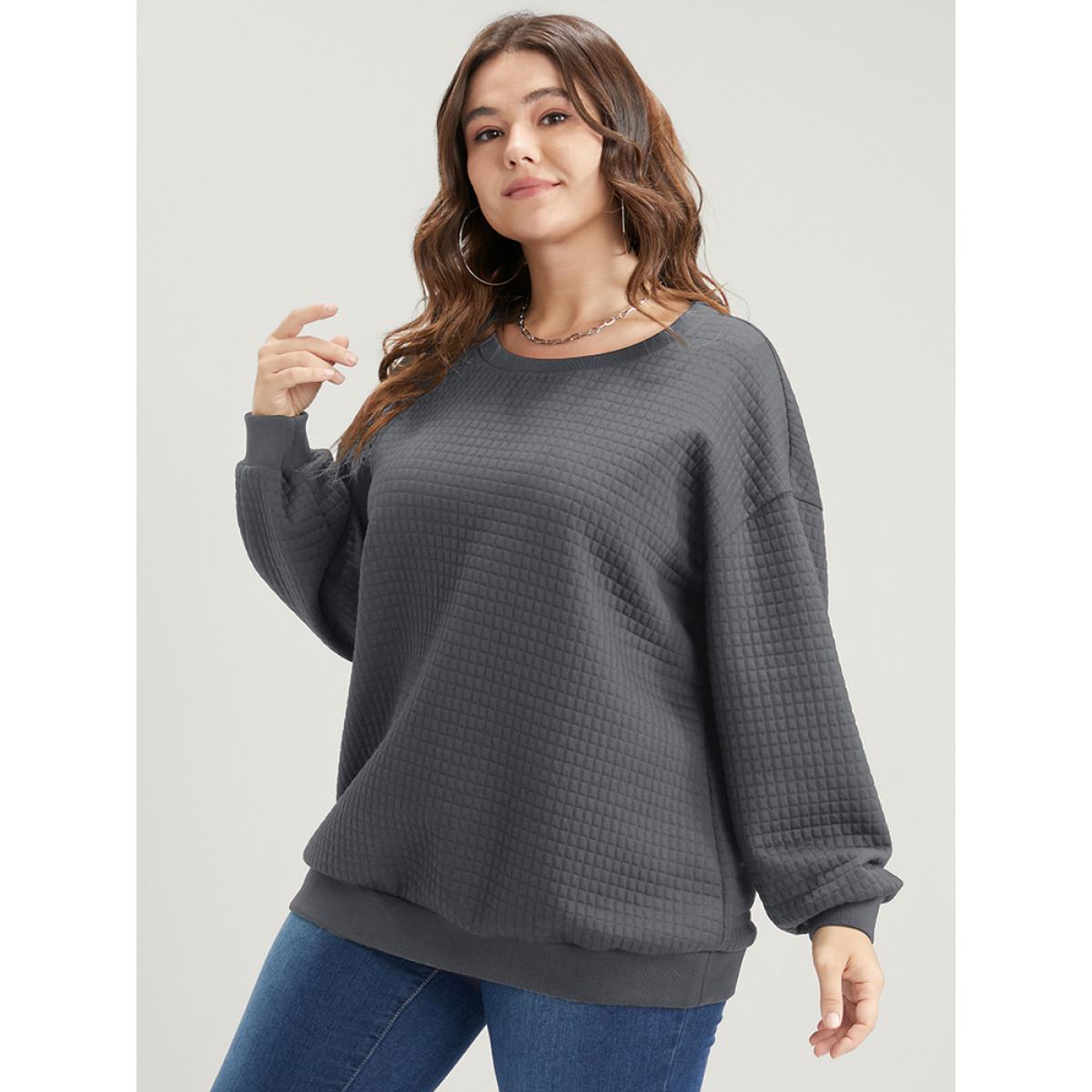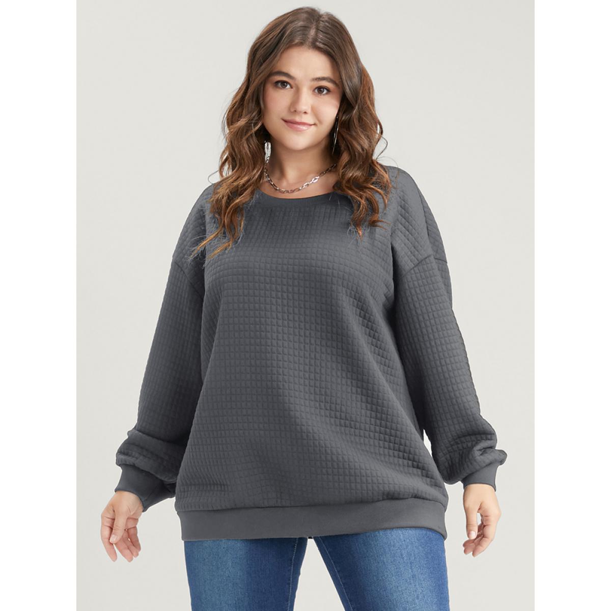 Plus Size Textured Fabric Crew Neck Straight-Fit Sweatshirt Women Mediumgray Casual Texture Loose Round Neck Everyday Sweatshirts BloomChic 26/4X