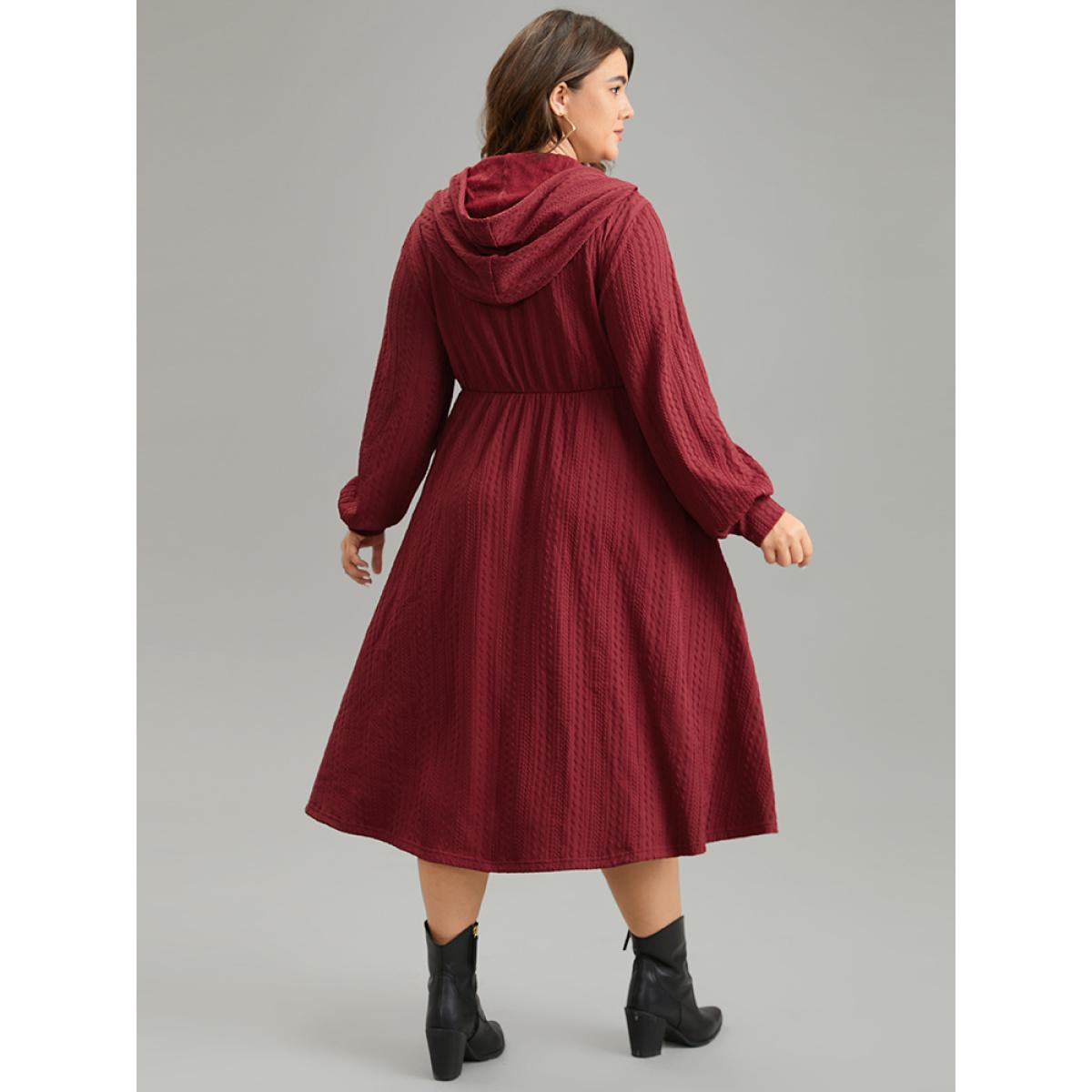 Plus Size Solid Textured Hooded Button Up Dress Scarlet Women Casual Texture Hooded Long Sleeve Curvy Midi Dress BloomChic 26/4X Product Image