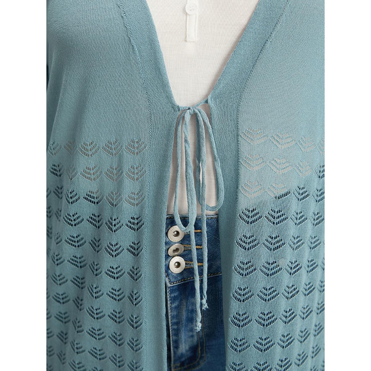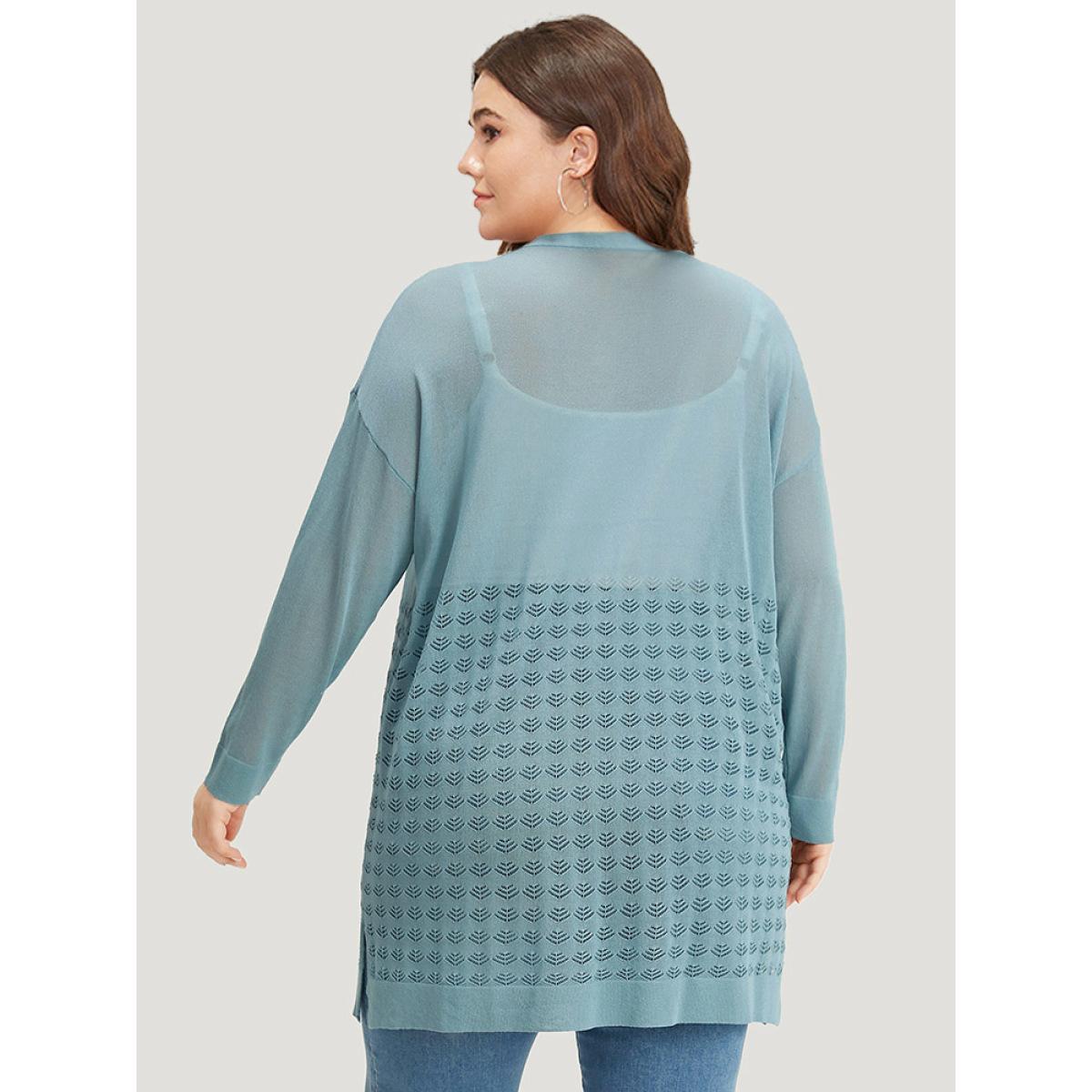 Plus Size Solid Ties Front Geo Eyelet Cardigan Mint Women Casual Loose Long Sleeve Everyday Cardigans BloomChic 12/L Product Image
