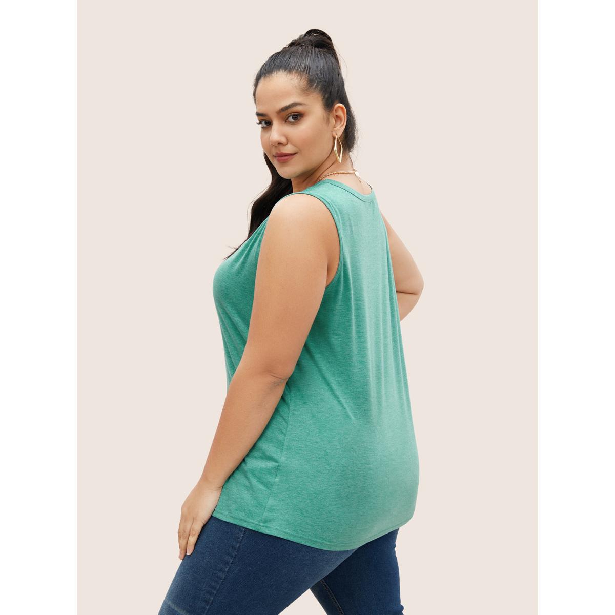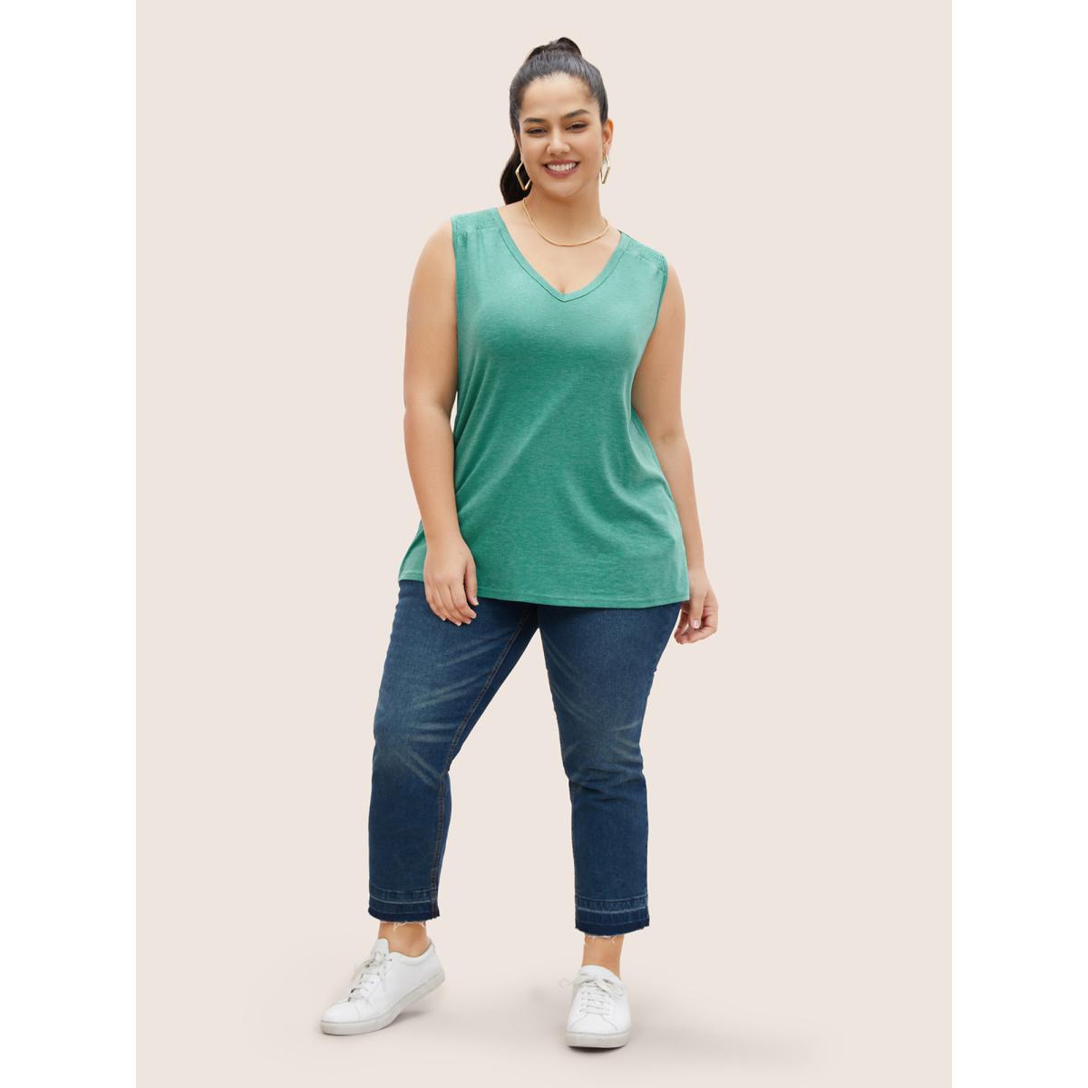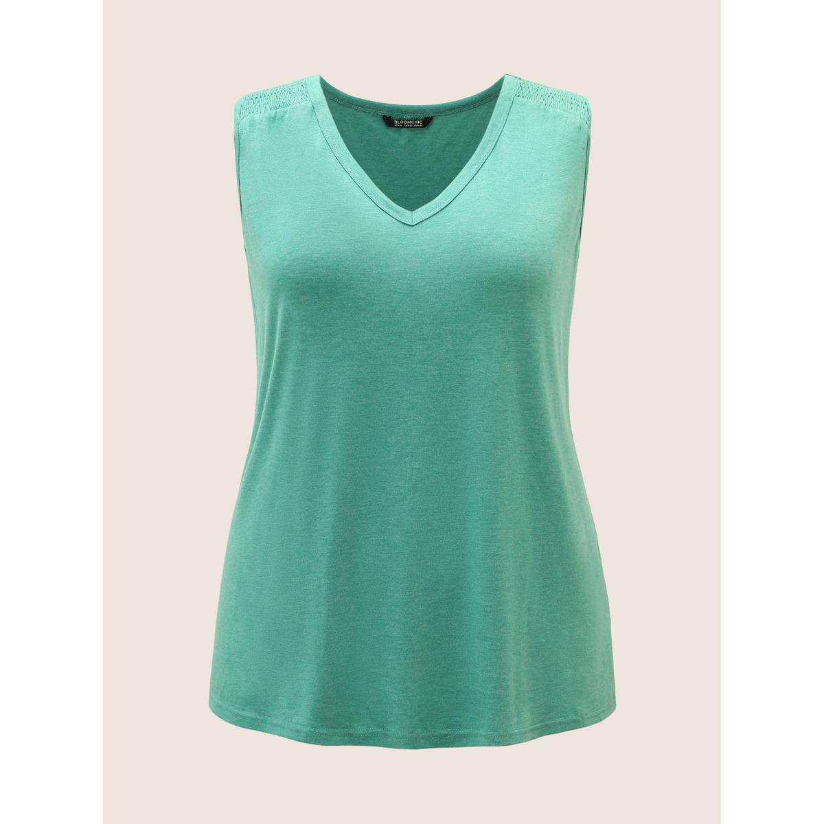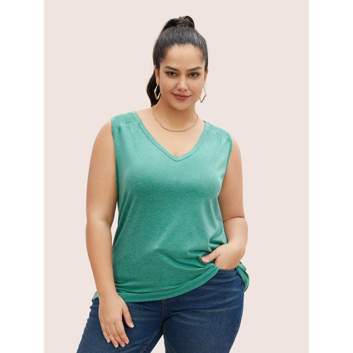 Plus Size Solid V Neck Shirred Tank Top Women Emerald Casual Shirred V-neck Everyday Tank Tops Camis BloomChic 14-16/1X
