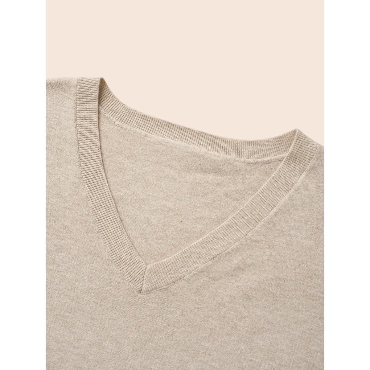 Plus Size Solid V Neck Wool Blend Pullover Champagne Women Casual Long Sleeve V-neck Everyday Pullovers BloomChic 18-20/2X Product Image