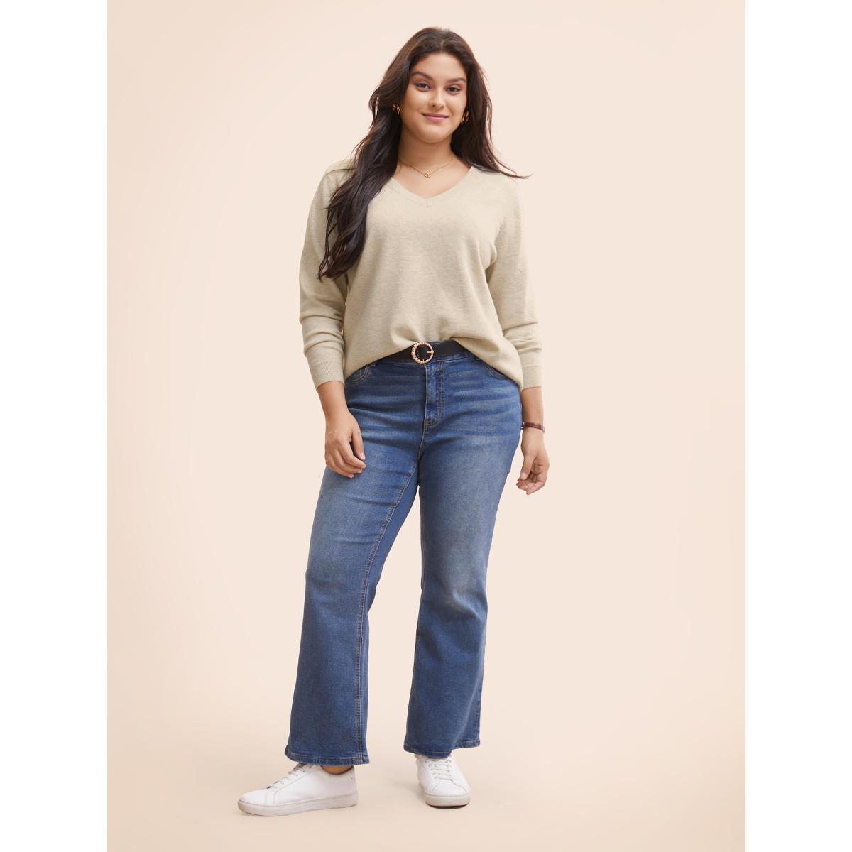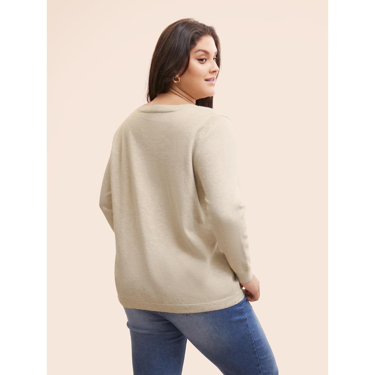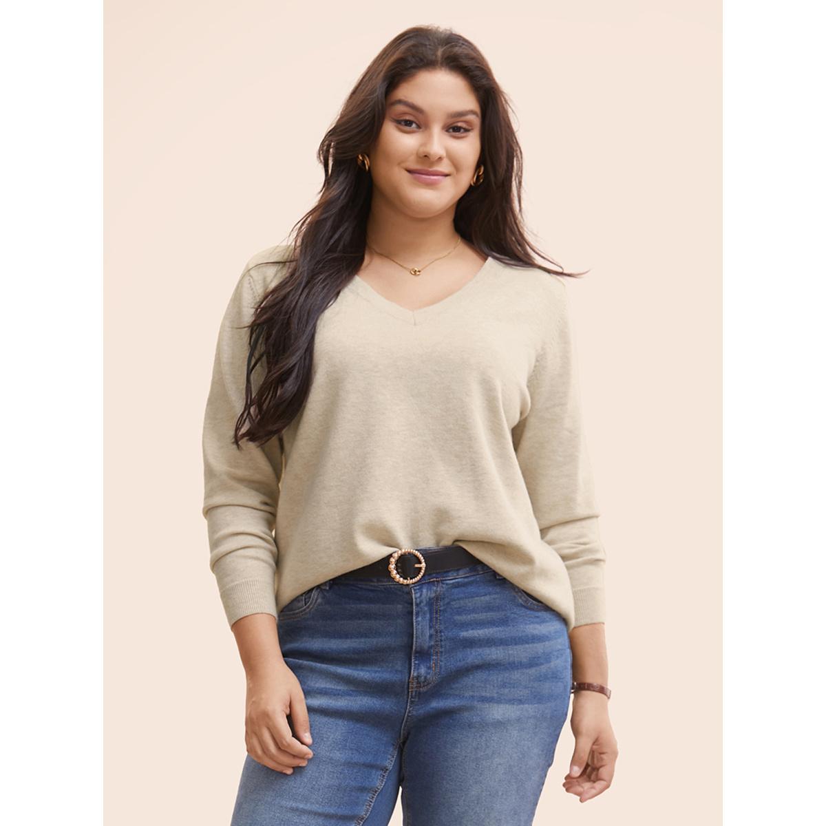 Plus Size Solid V Neck Wool Blend Pullover Champagne Women Casual Long Sleeve V-neck Everyday Pullovers BloomChic 18-20/2X