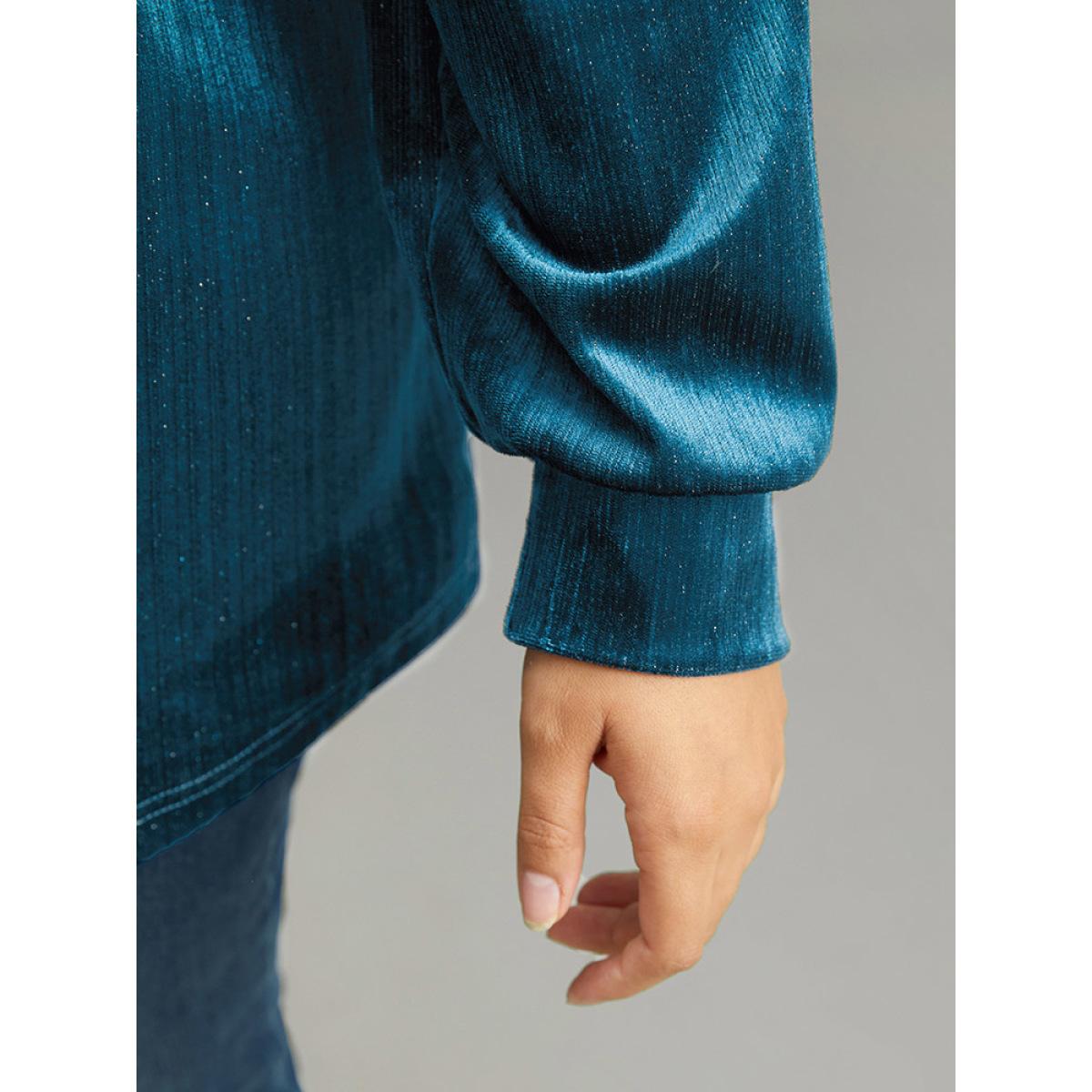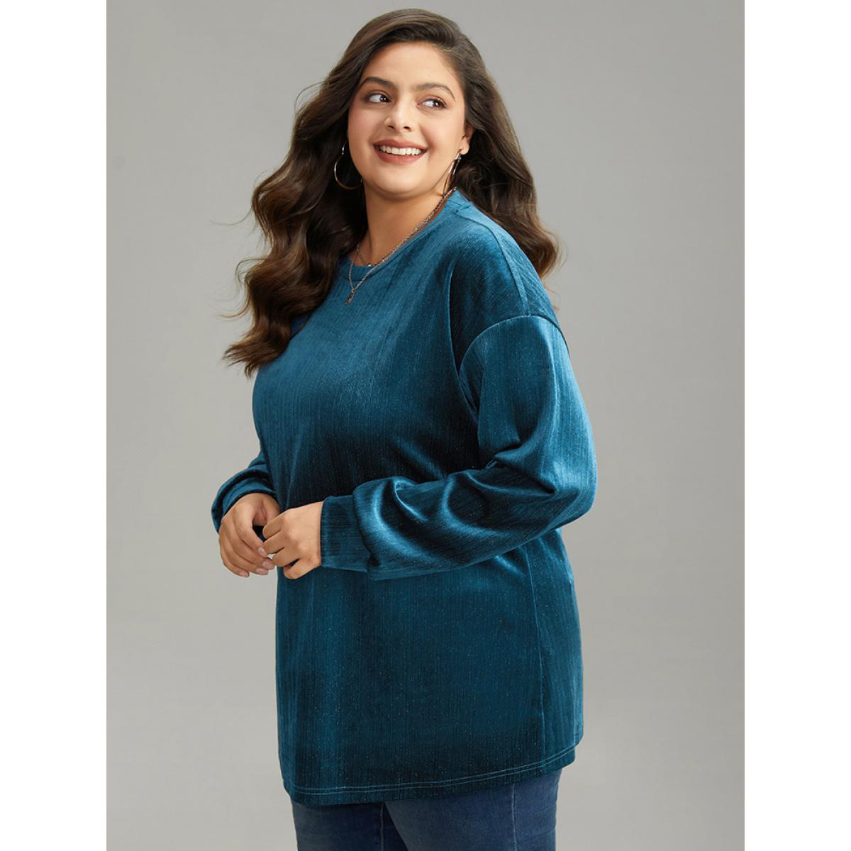Plus Size Solid Velvet Round Neck Sweatshirt Women Aegean Casual Elastic cuffs Round Neck Dailywear Sweatshirts BloomChic 14-16/1X Product Image