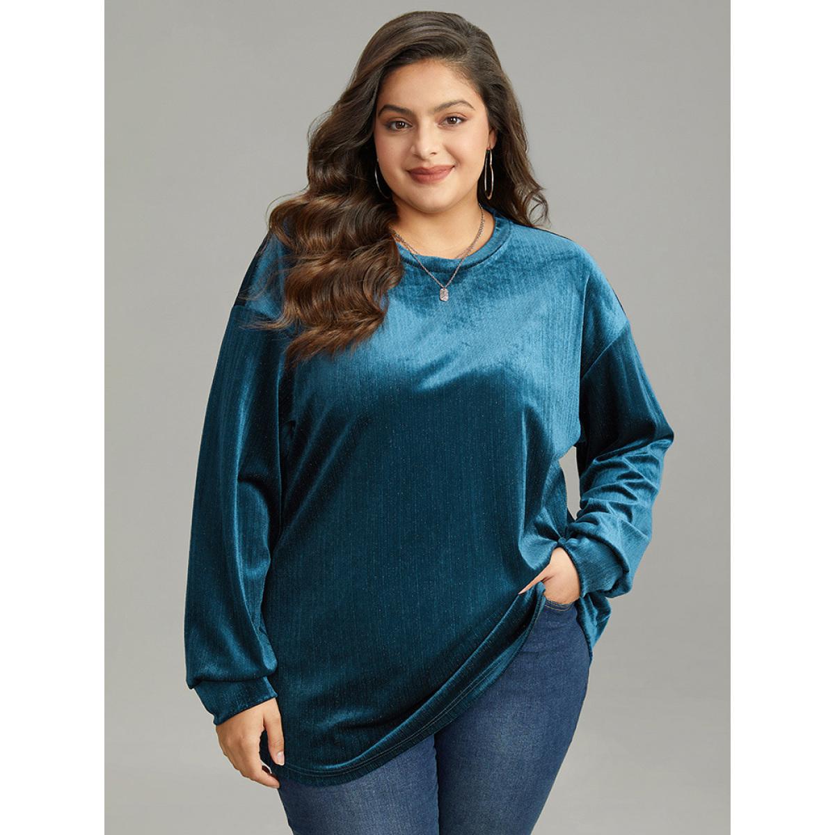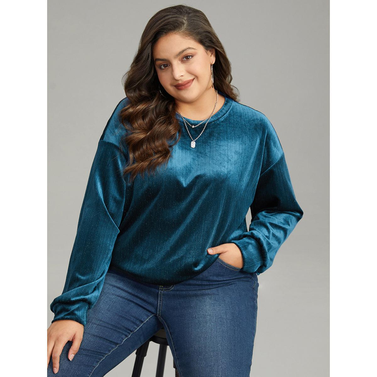 Plus Size Solid Velvet Round Neck Sweatshirt Women Aegean Casual Elastic cuffs Round Neck Dailywear Sweatshirts BloomChic 14-16/1X
