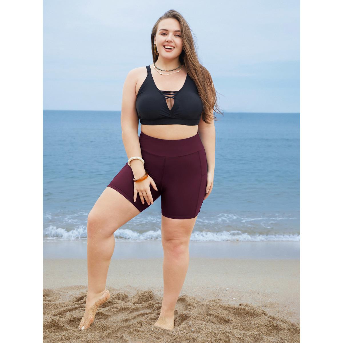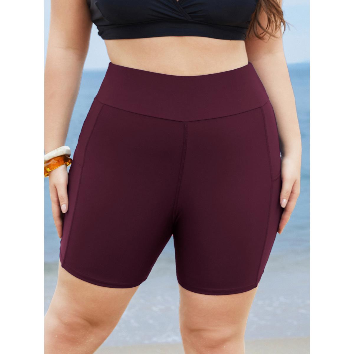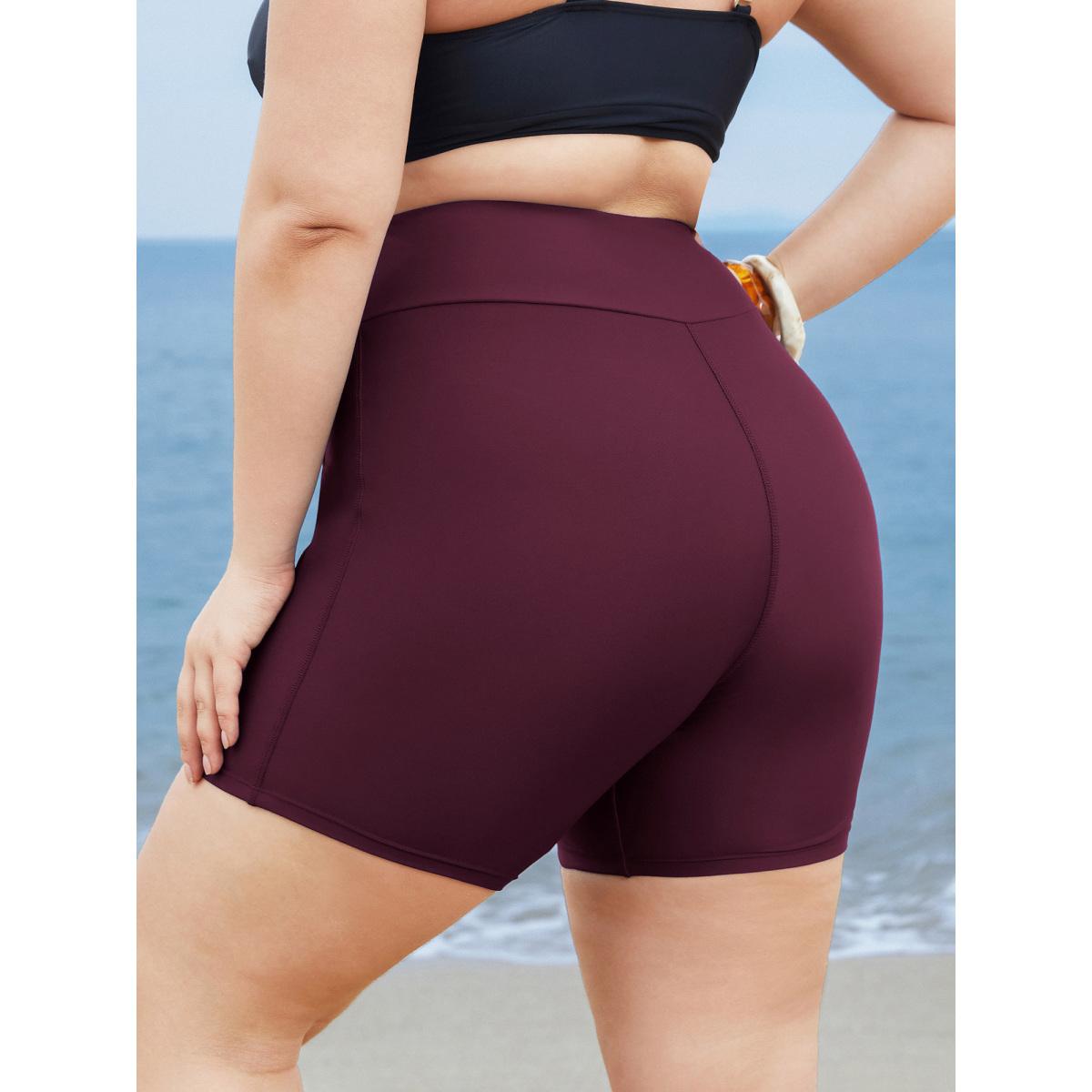 Plus Size Solid Wideband Waist Swim Shorts Women's Swimwear Plum Beach Non High stretch Skinny High Rise Curve Swim Bottoms BloomChic 26/4X