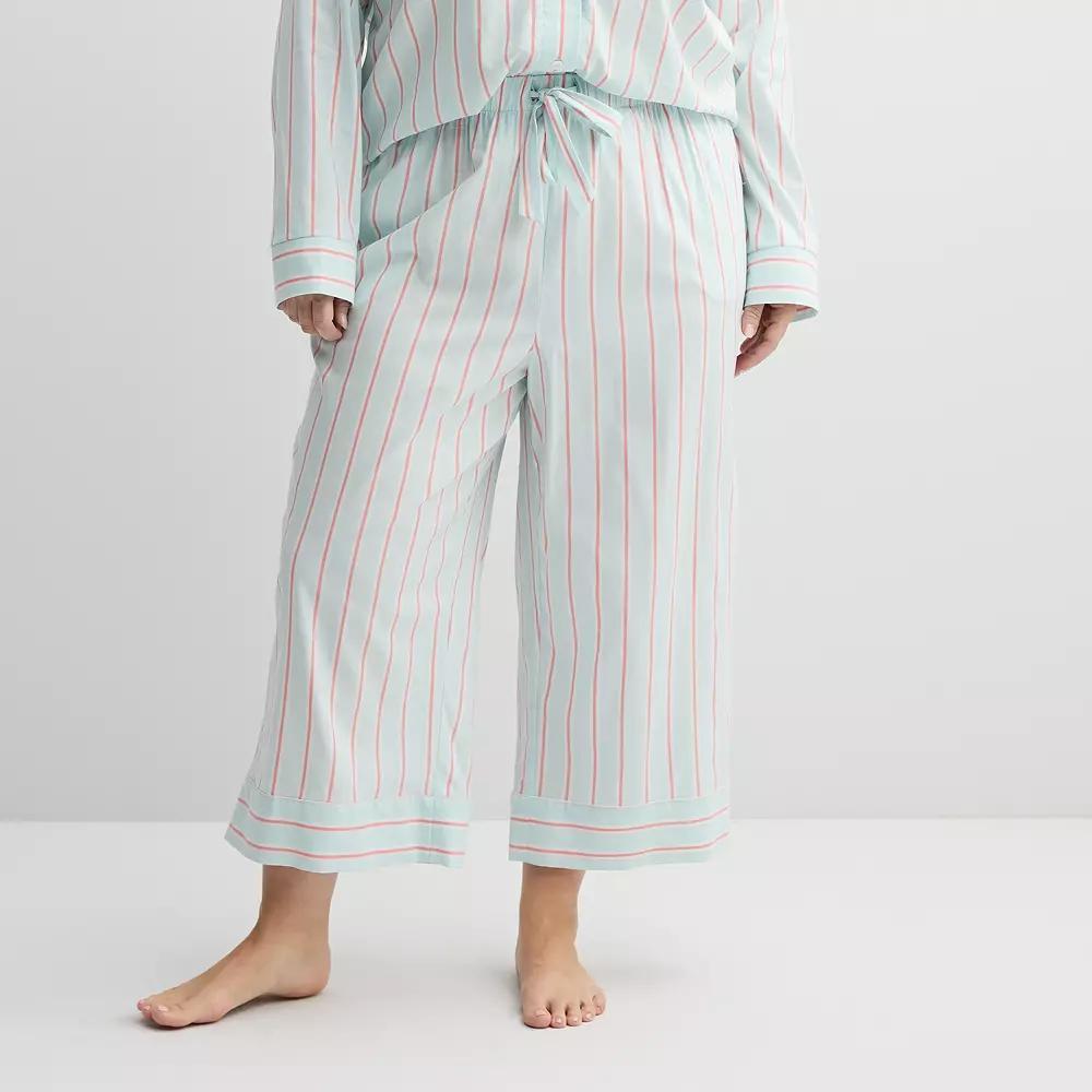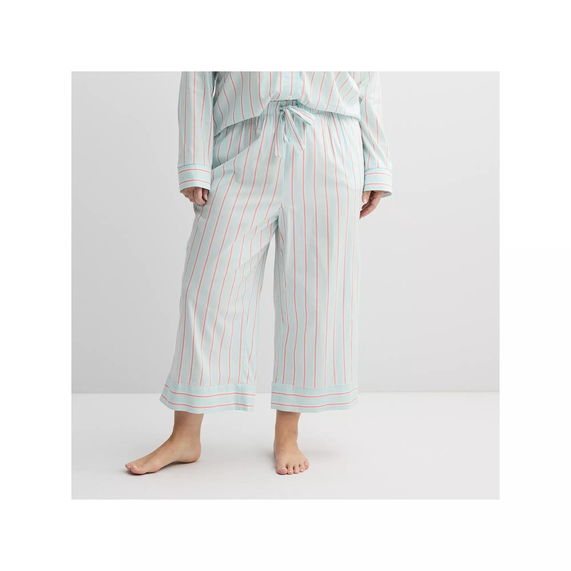 Update your sleepwear collection with these comfortable women's woven separates cropped pajama pants from Sonoma Goods For Life.Click on this WOMEN'S GUIDE to find the perfect fit and more!Update your sleepwear collection with these comfortable women's woven separates cropped pajama pants from Sonoma Goods For Life.Click on this WOMEN'S GUIDE to find the perfect fit and more!FEATURES Drawstring elastic waistband 2 front pockets Straight hem Cropped length Woven constructionFIT & SIZING Relaxed fit 24 3/4-in. inseam 12 1/4-in. leg opening Straight leg opening High rise sits below the natural waistlineFABRIC & CARE Cotton, rayon Machine wash and tumble dry low ImportedRESPONSIBLE Supports more sustainable cotton farming Size: 1X. Color: Blue Stripe. Gender: female. Age Group: adult.