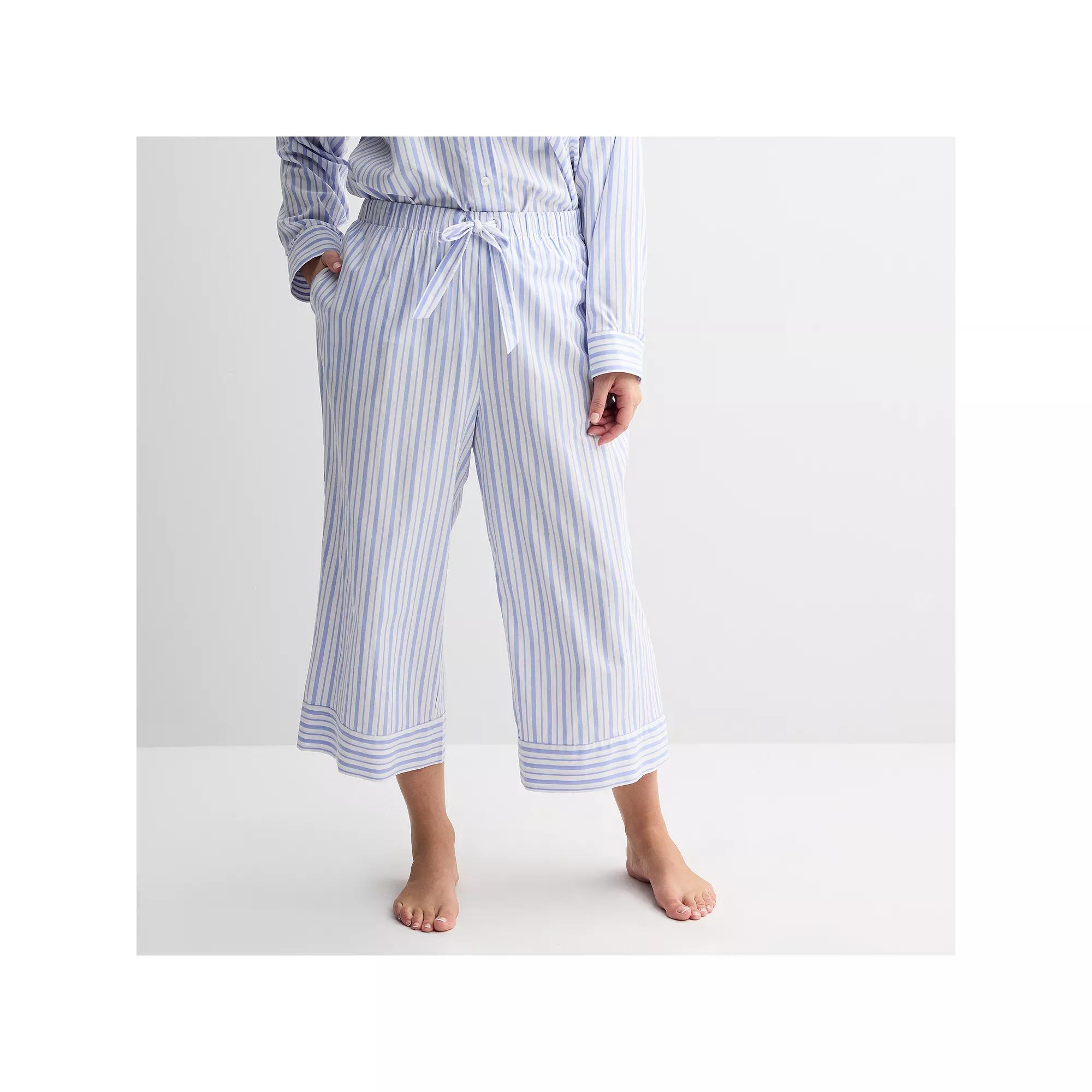 Update your sleepwear collection with these comfortable womens woven separates cropped pajama pants from Sonoma Goods For Life.Click on this WOMENS GUIDE to find the perfect fit and more!Update your sleepwear collection with these comfortable womens woven separates cropped pajama pants from Sonoma Goods For Life.Click on this WOMENS GUIDE to find the perfect fit and more!FEATURES Drawstring elastic waistband 2 front pockets Straight hem Cropped length Woven constructionFIT & SIZING Relaxed fit 24 3/4-in. inseam 12 1/4-in. leg opening Straight leg opening High rise sits below the natural waistlineFABRIC & CARE Cotton, rayon Machine wash and tumble dry low ImportedRESPONSIBLE Supports more sustainable cotton farming Size: 2X. Color: Blue White Stripe. Gender: female. Age Group: adult.