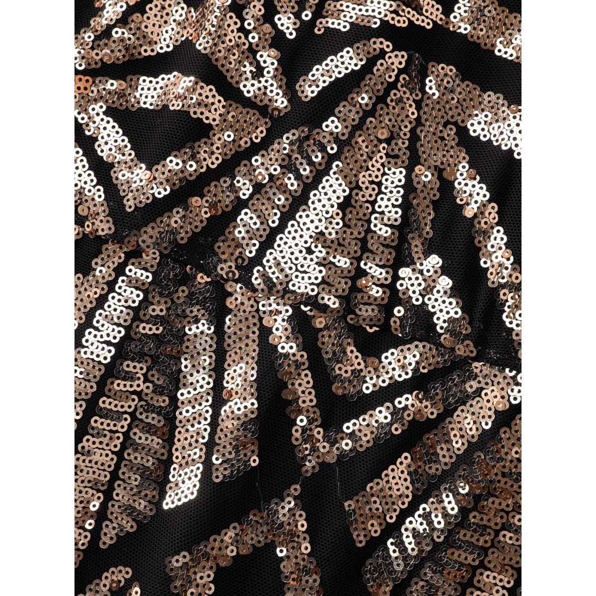 Plus Size Sequin Surplice Neck Ruffle Trim Zipper Dress Black Women Party Rhinestone detailing V-neck Sleeveless Curvy Midi Dress BloomChic 12/L