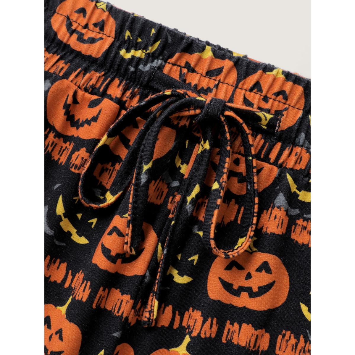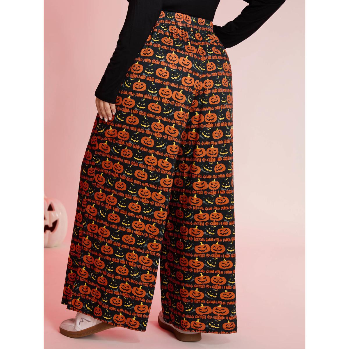 Plus Size Spooky Pumpkin Elastic Waistband Wide-Leg Pants Women Multicolor Playful Loose Mid Rise Casual Pants BloomChic 26/4X