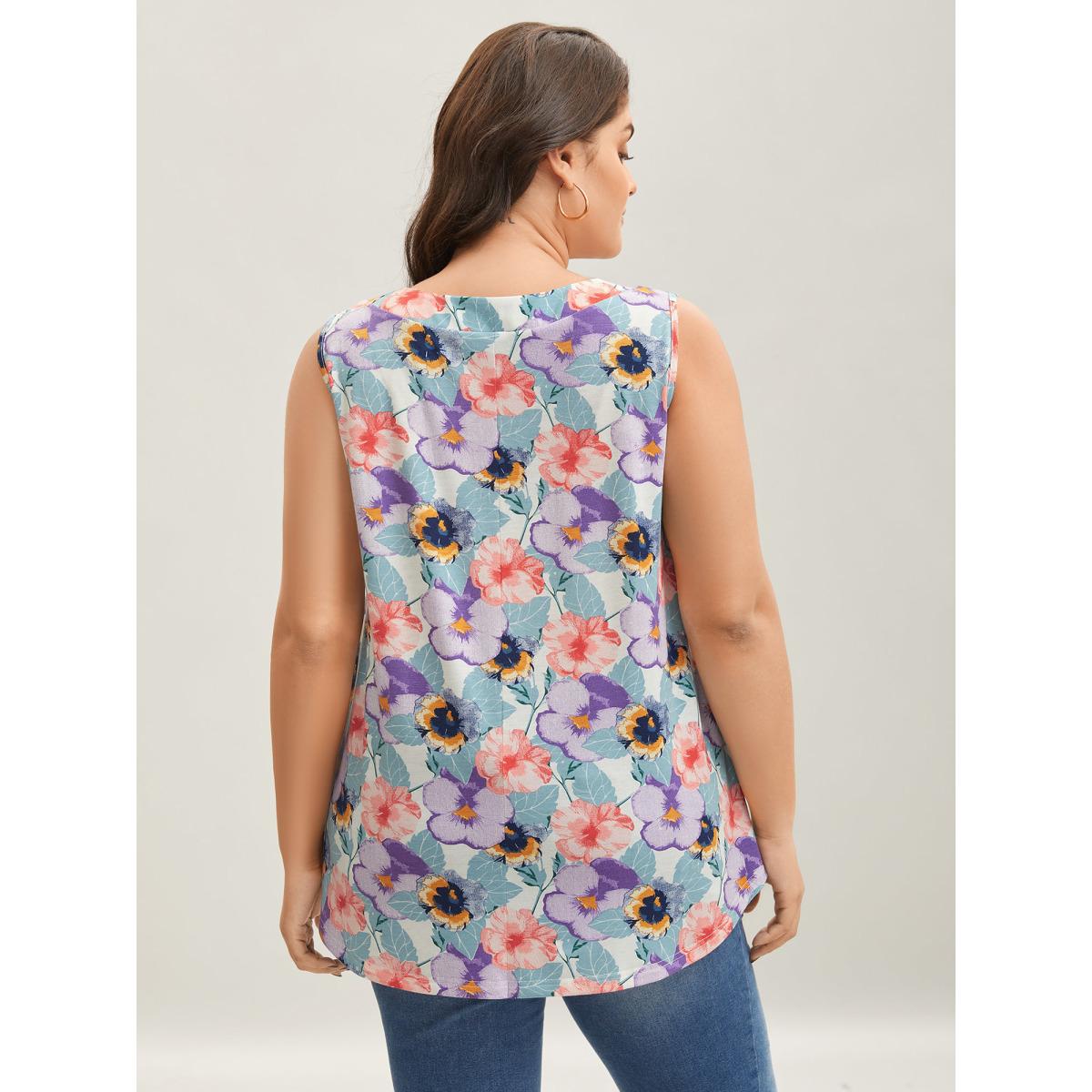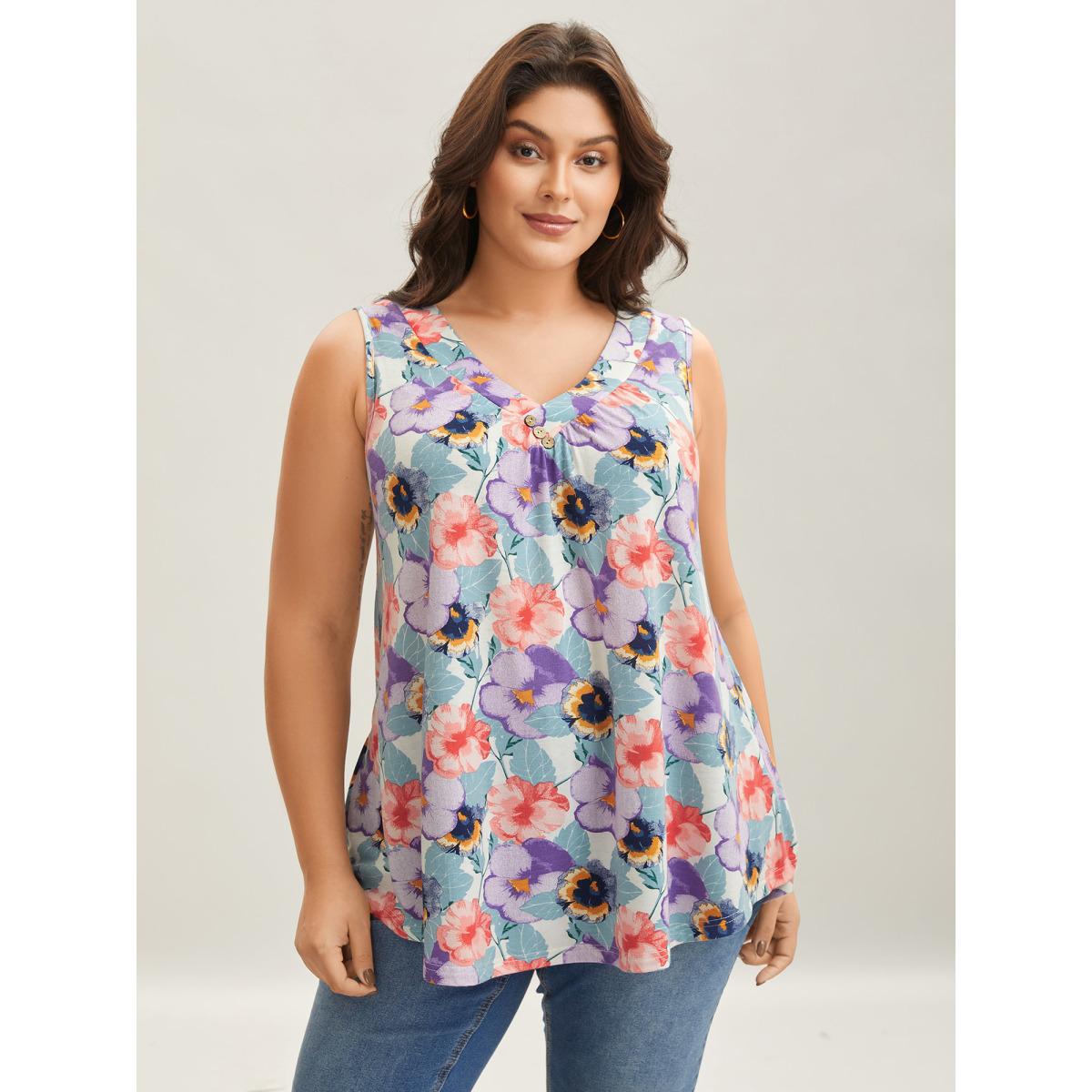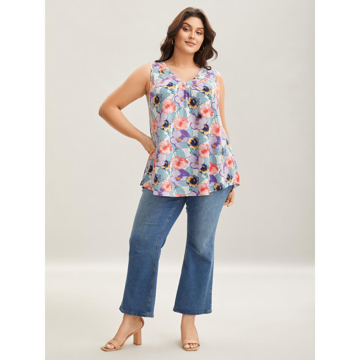 Plus Size Spring Romance Pleated Front Tank Top Women Multicolor Contrast V-neck Everyday-Elegant Tank Tops Camis BloomChic 14-16/1X