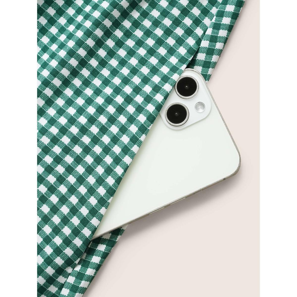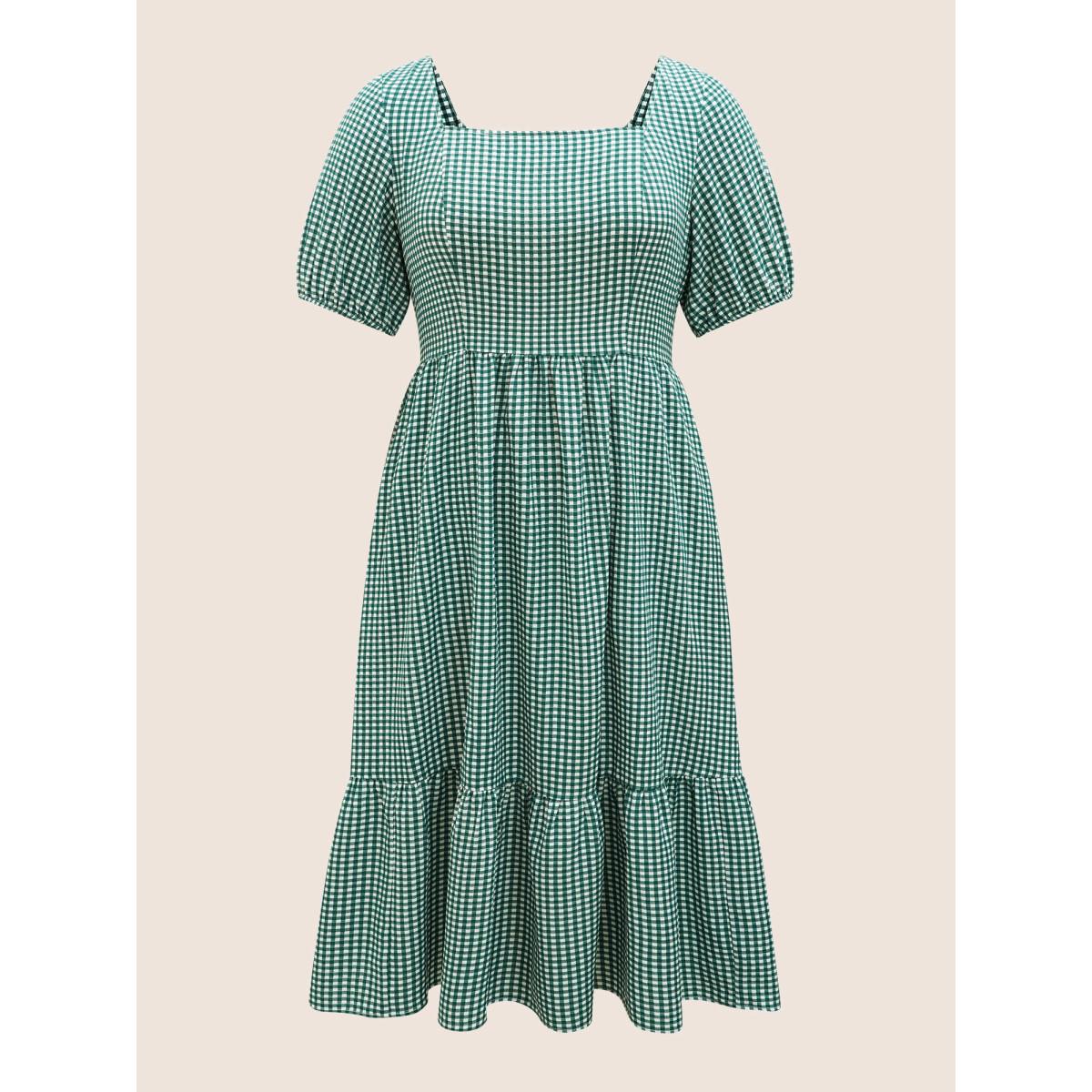 Plus Size Square Neck Gingham Elastic Waist Midi Dress Emerald Women Elegant Gathered Square Neck Half Sleeve Curvy BloomChic 28/5X Product Image