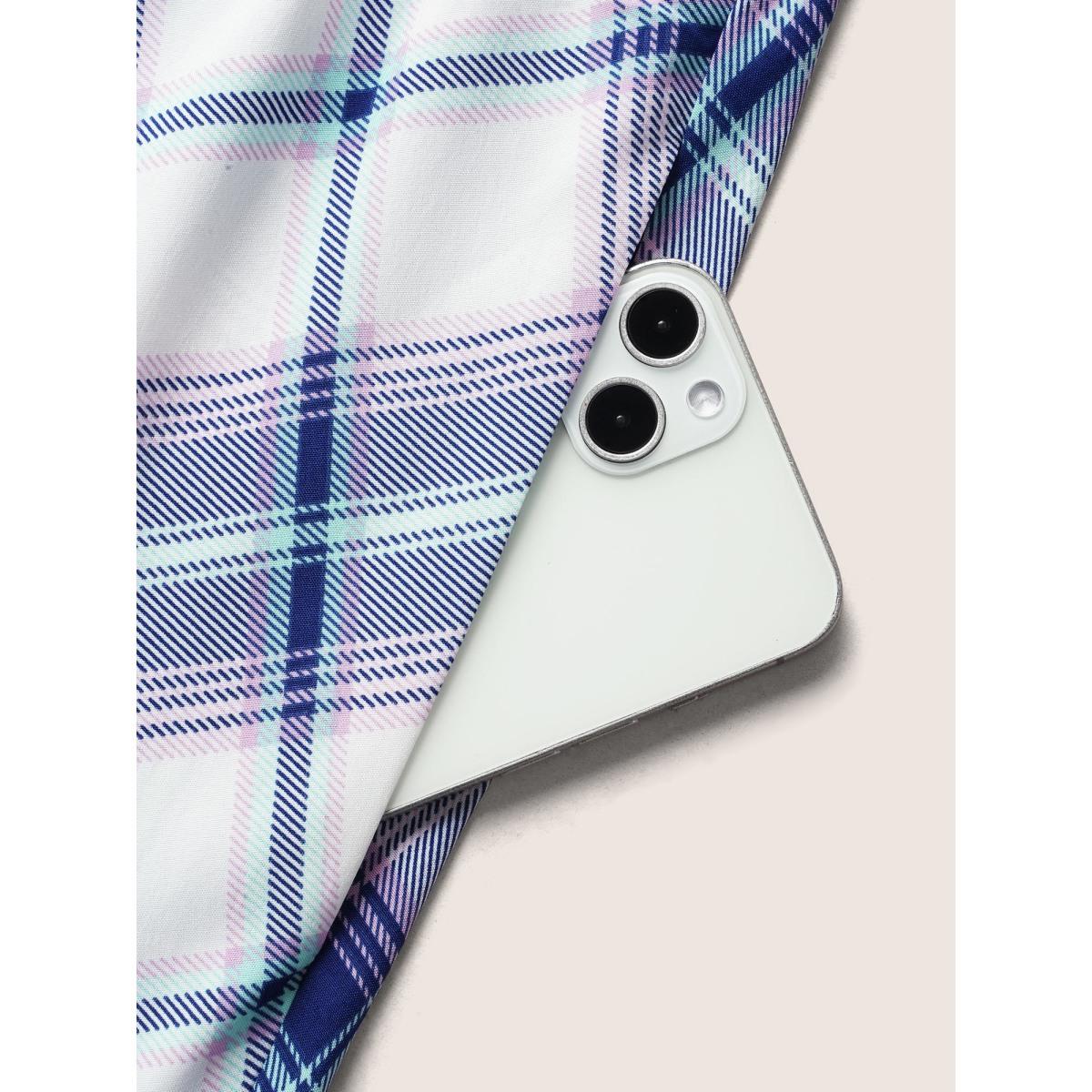 Plus Size Square Neck Plaid Gathered Puff Sleeve Dress DarkBlue Women Casual Gathered Square Neck Short sleeve Curvy BloomChic 18-20/2X