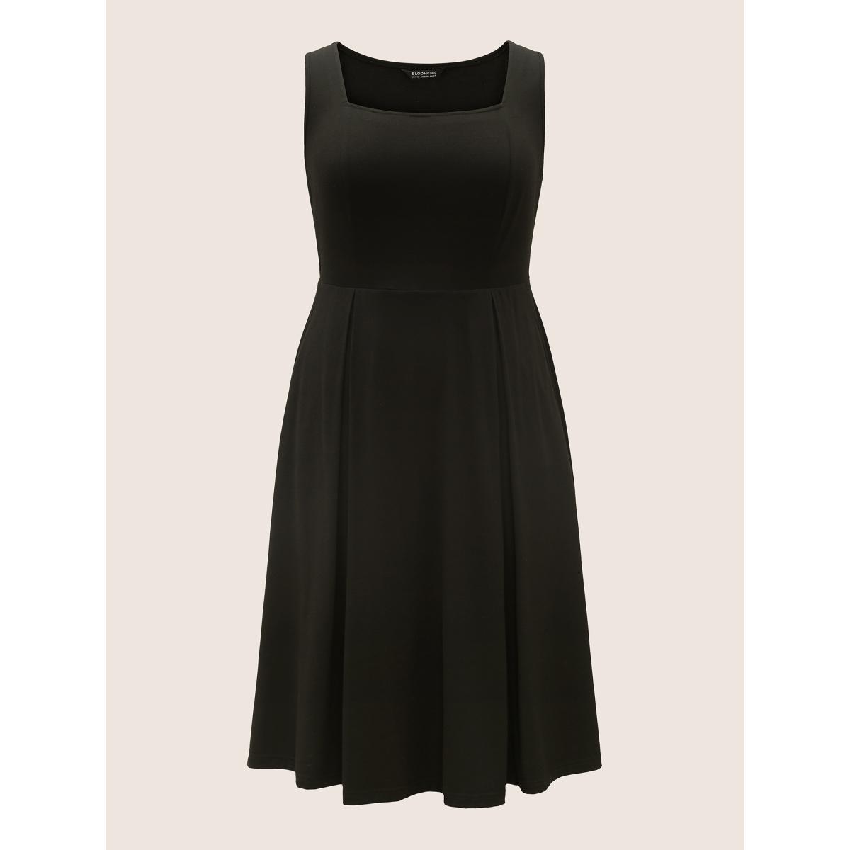 Plus Size Square Neck Solid Plicated Detail Midi Dress Black Women Basics Pleated Square Neck Sleeveless Curvy BloomChic 28/5X
