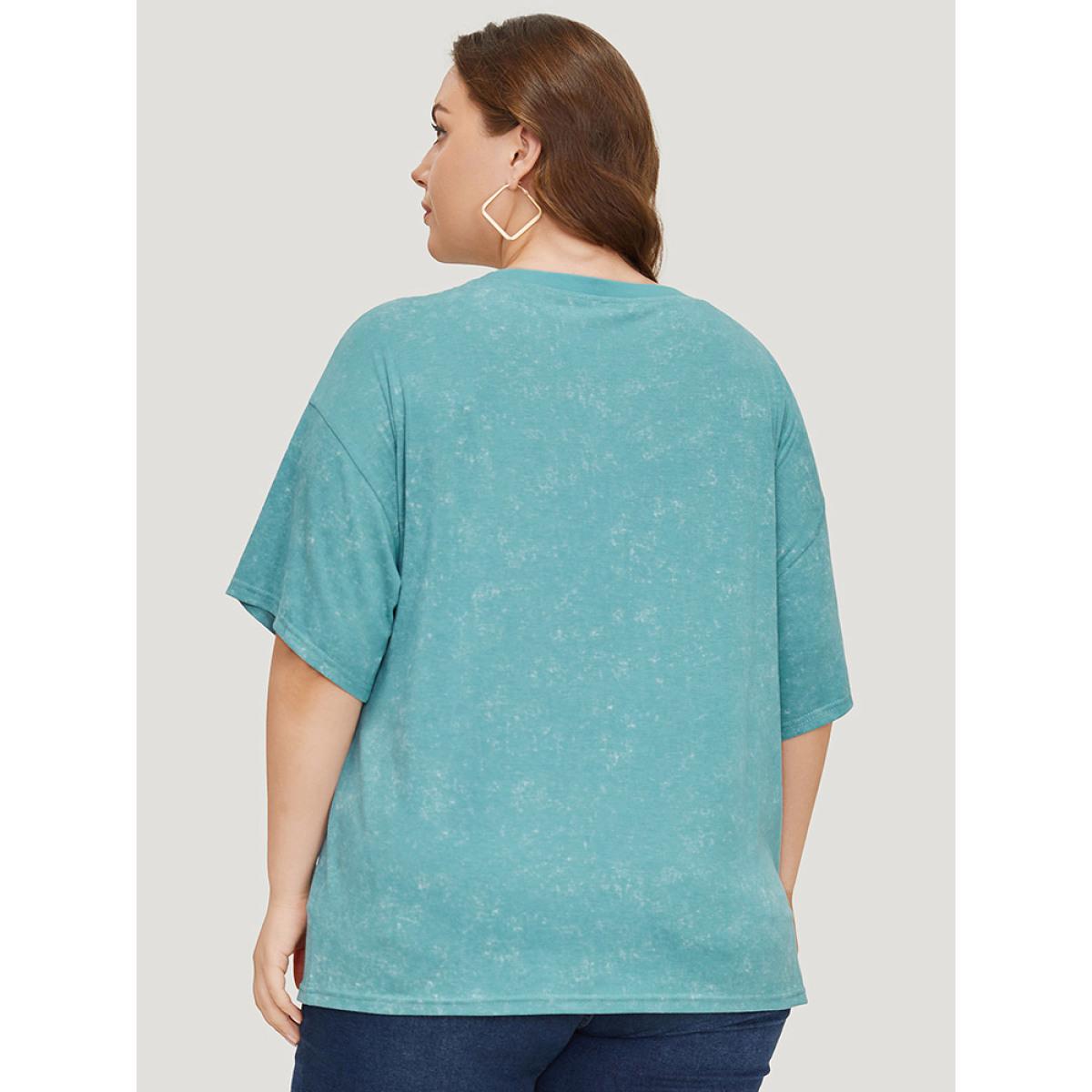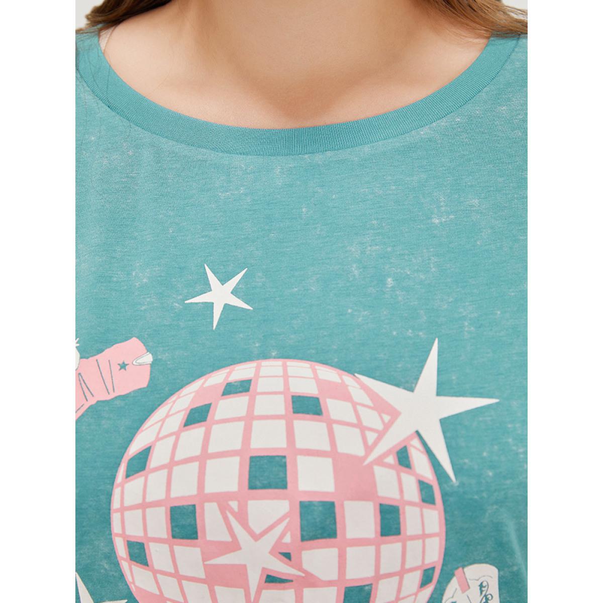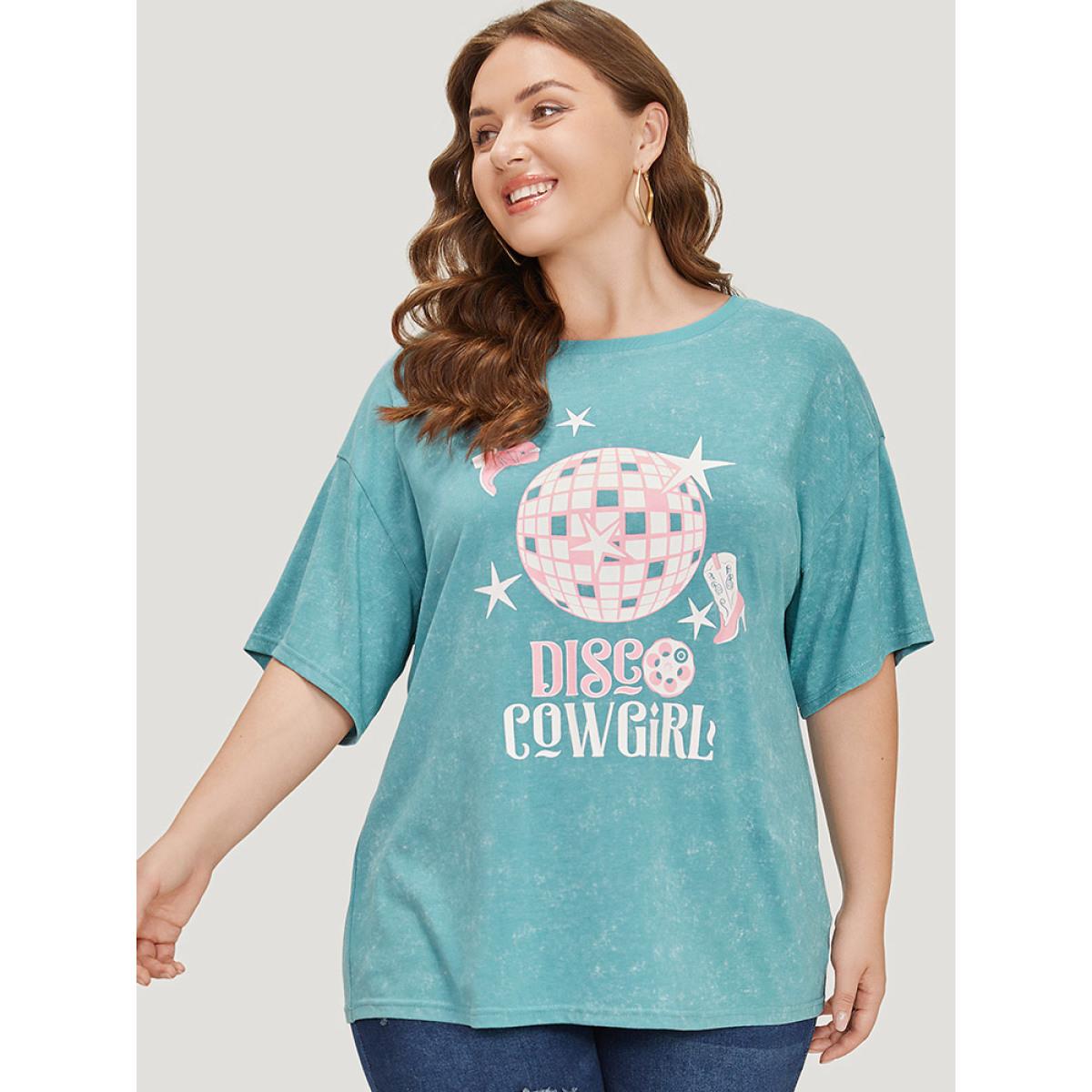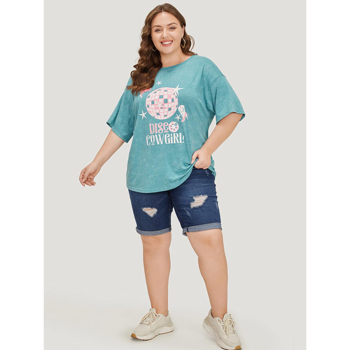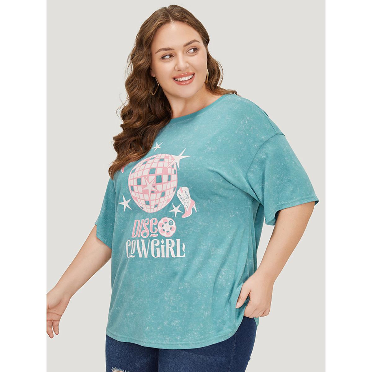 Plus Size Star & Boots Print Heather Graphic T-shirt Teal Women Casual POP culture Dailywear T-shirts BloomChic 10/M