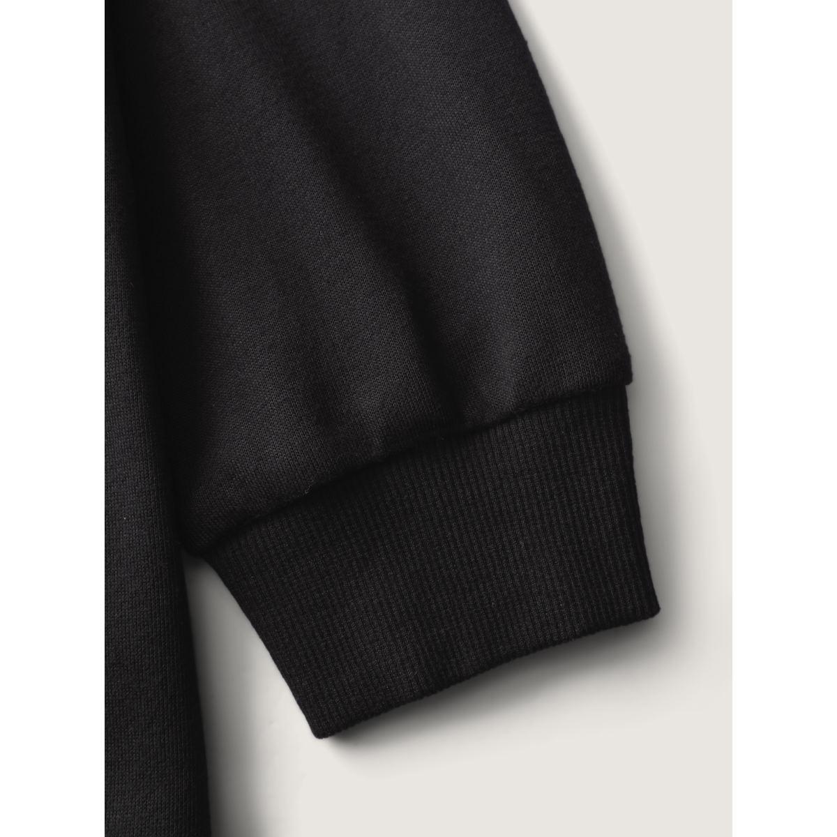 Plus Size Solid Textured Drop Shoulder Sweatshirt Women Black Casual Round Neck Dailywear Sweatshirts BloomChic 26/4X