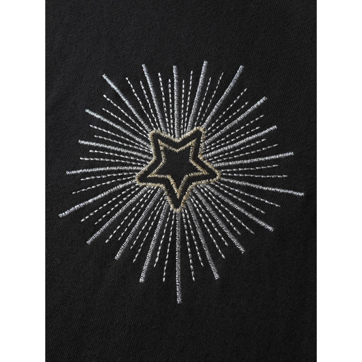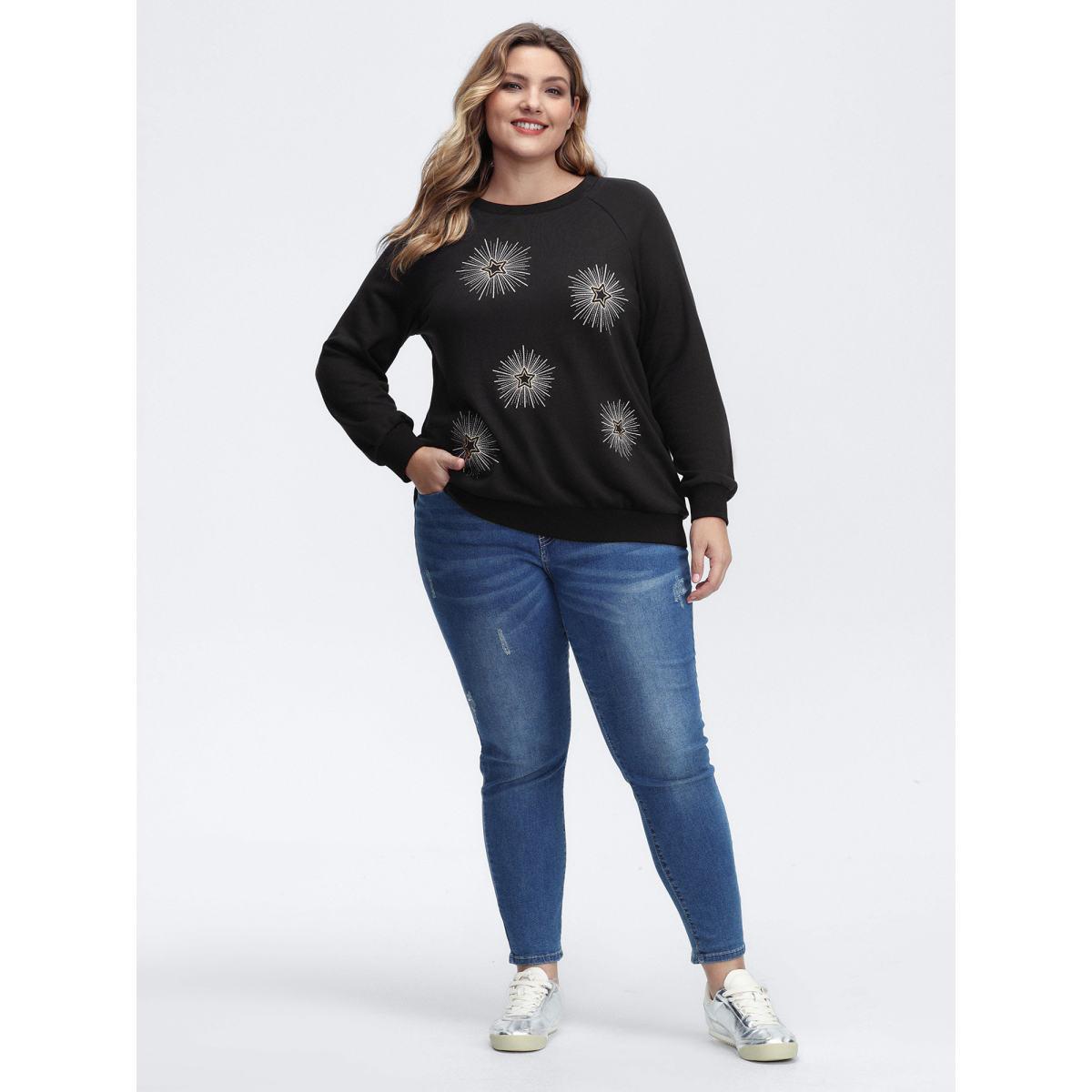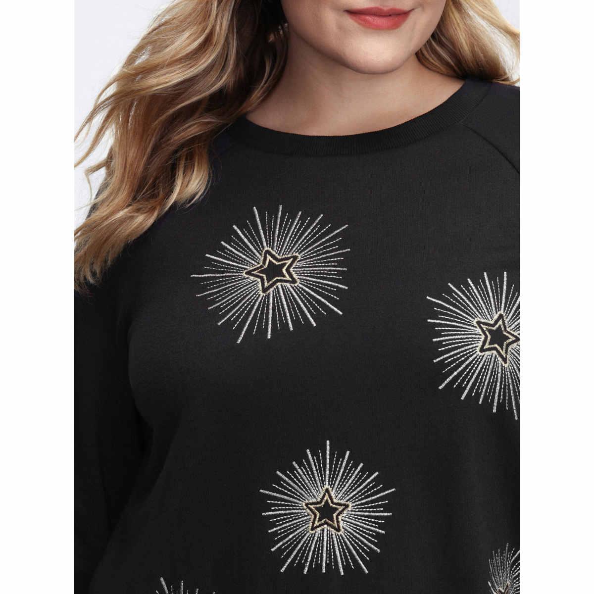 Plus Size Star Embroidery Round Neck Sweatshirt Women Black Leisure Round Neck Casual Sweatshirts BloomChic 10/M