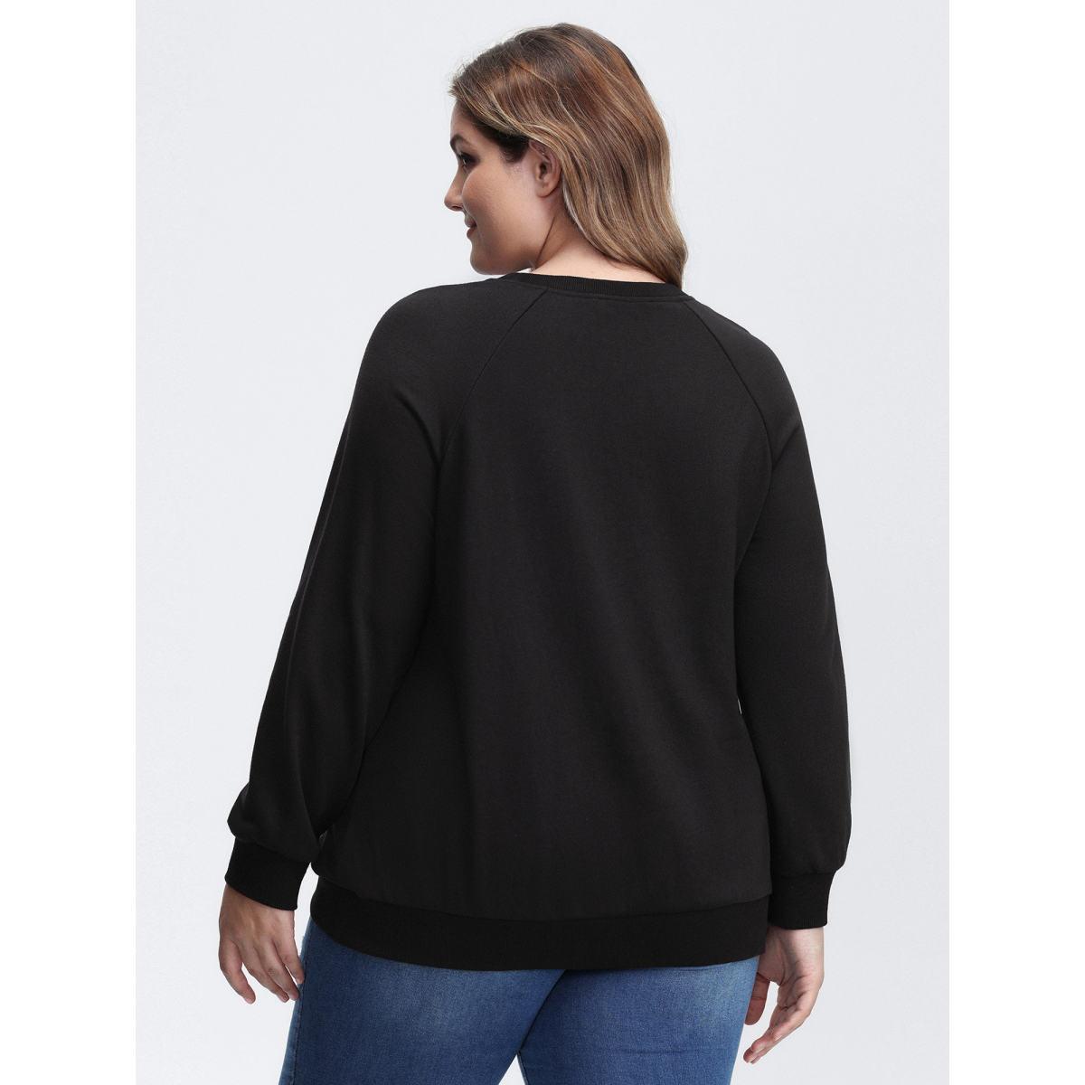 Plus Size Sequin Heart Embellished Puffy Sleeves Sweatshirt Women Black Casual Round Neck Everyday Sweatshirts BloomChic 12/L