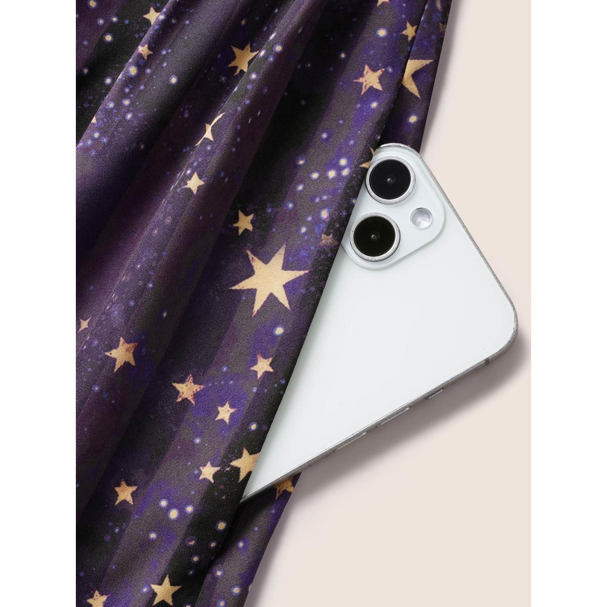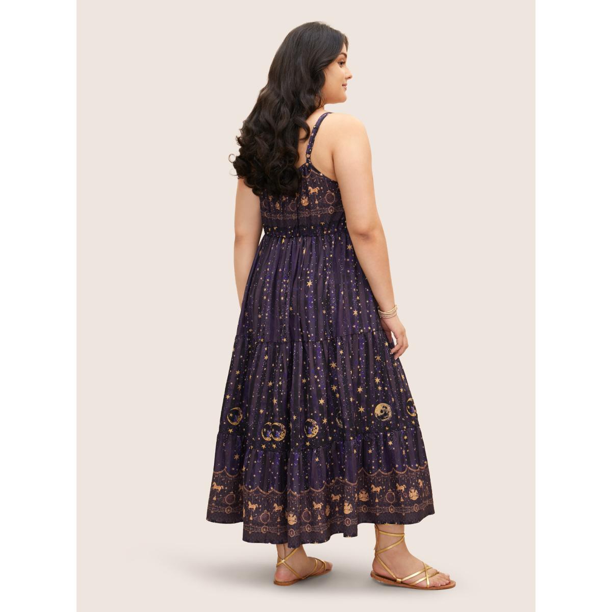 Plus Size Star & Moon Print Elastic Waist Maxi Cami Dress Deeppurple Women Boho Patchwork Non Sleeveless Curvy BloomChic 26/4X Product Image