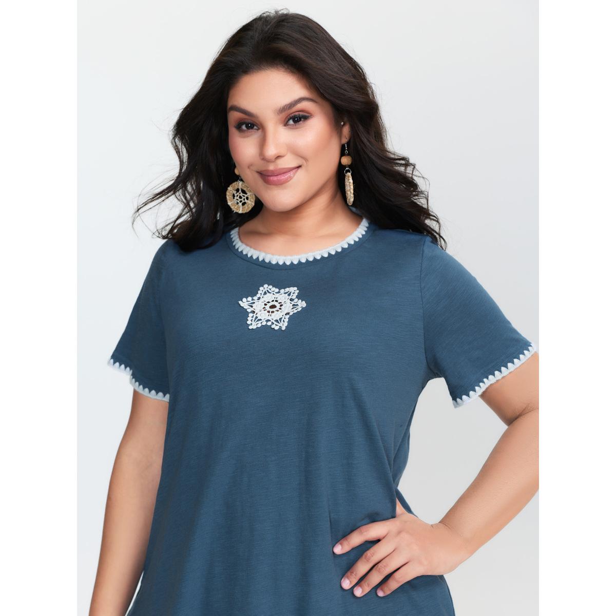 Plus Size Star Motif Cut-Out Round Neck T-Shirt Mediumblue Women Boho Round Neck Vacation T-shirts BloomChic 22-24/3X