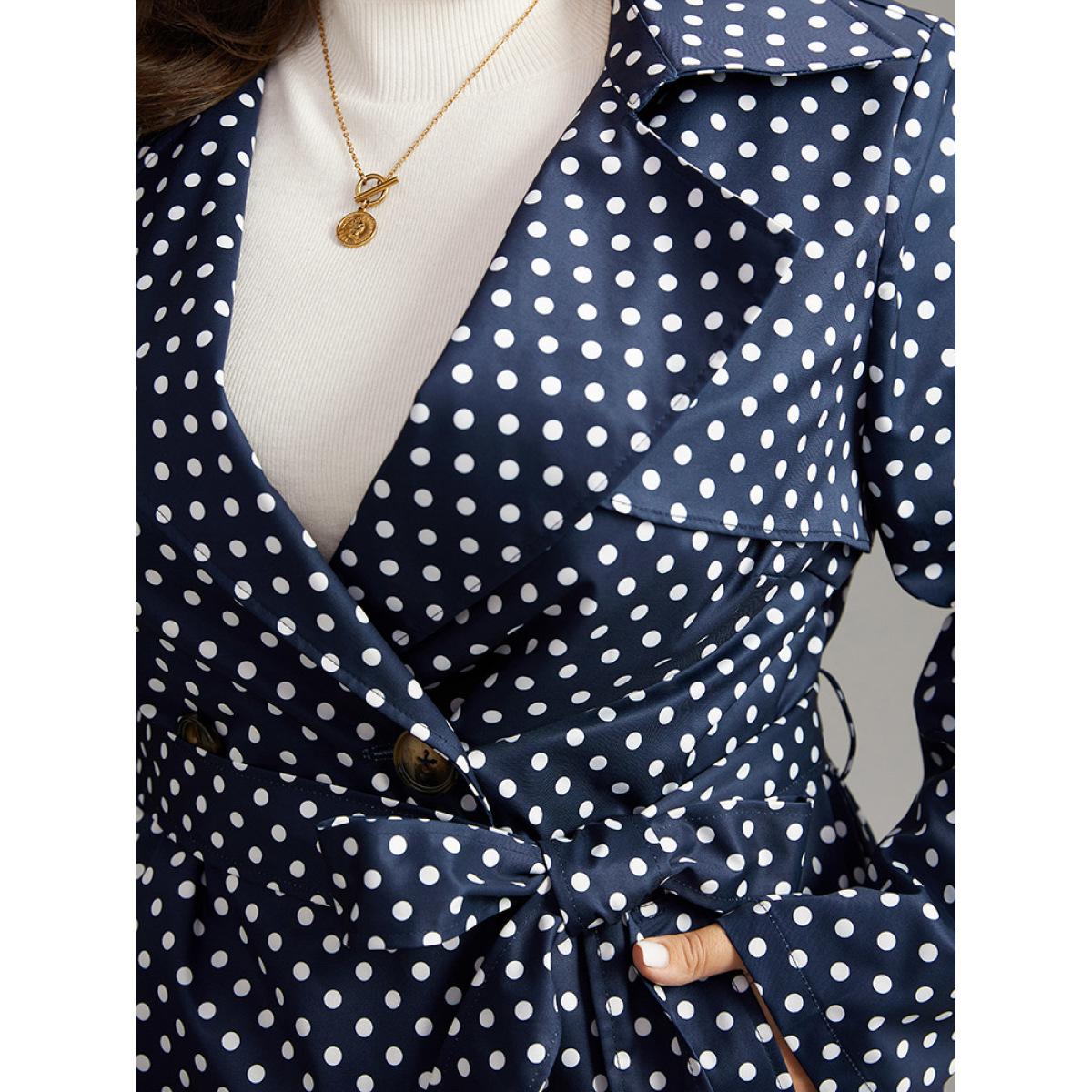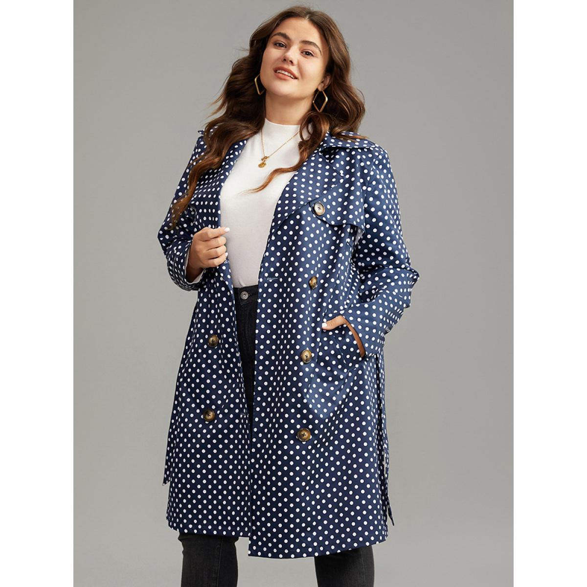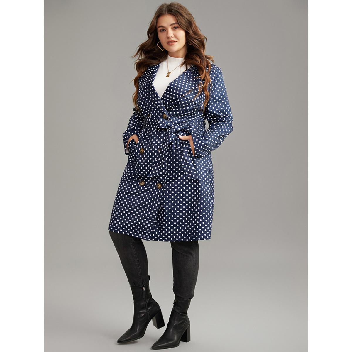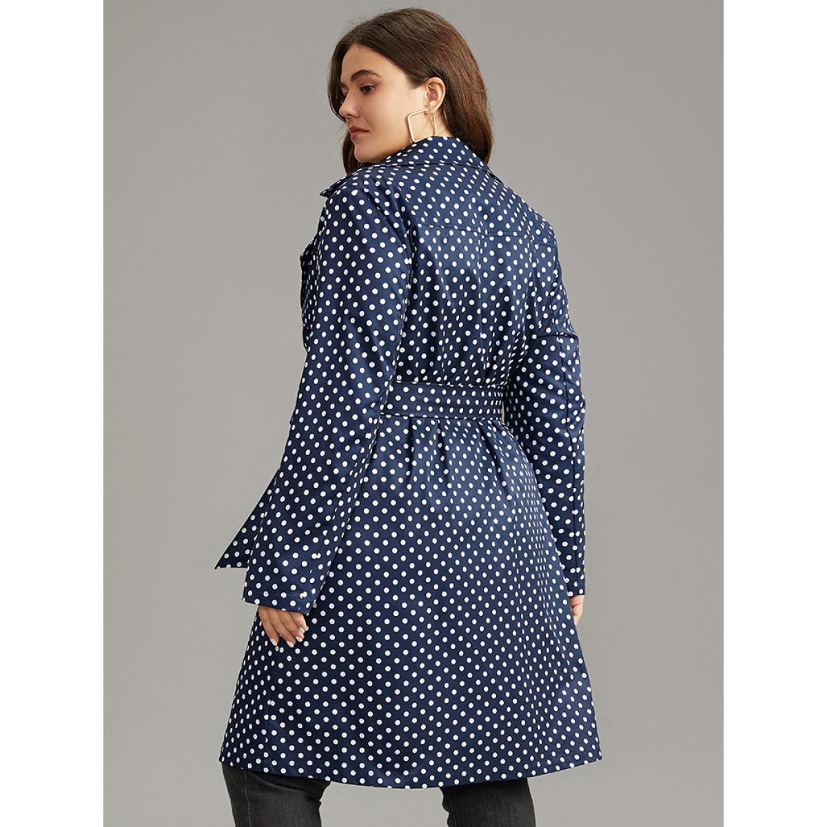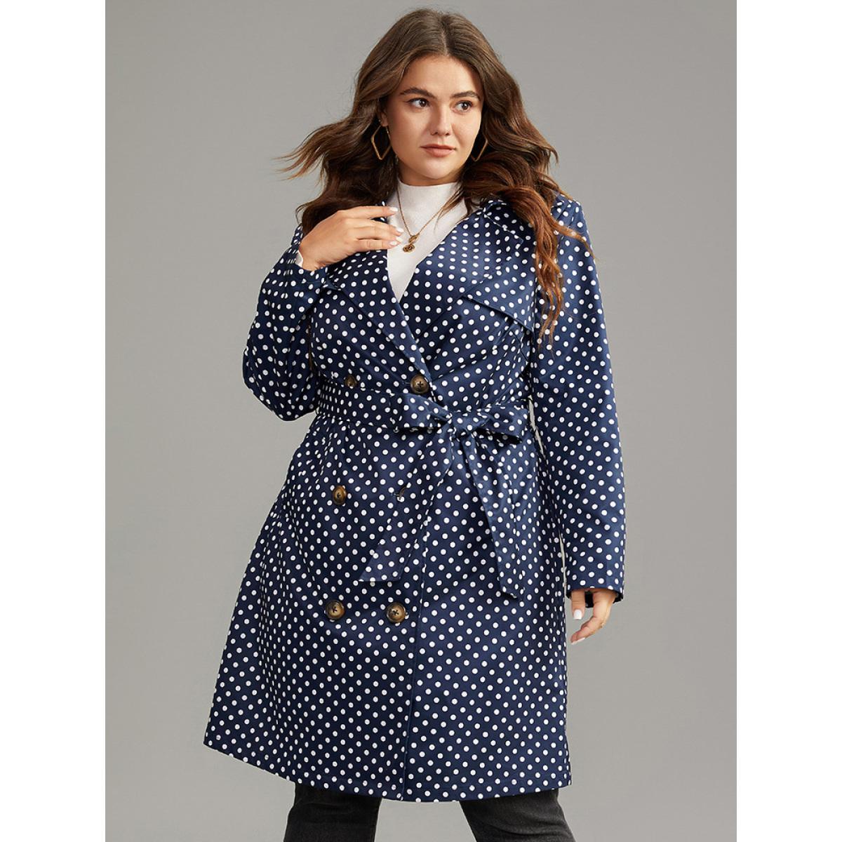 Plus Size Static-Free Polka Dot Belted Double Breasted Coat Women Indigo Casual Belted Ladies Dailywear Winter Coats BloomChic 14-16/1X