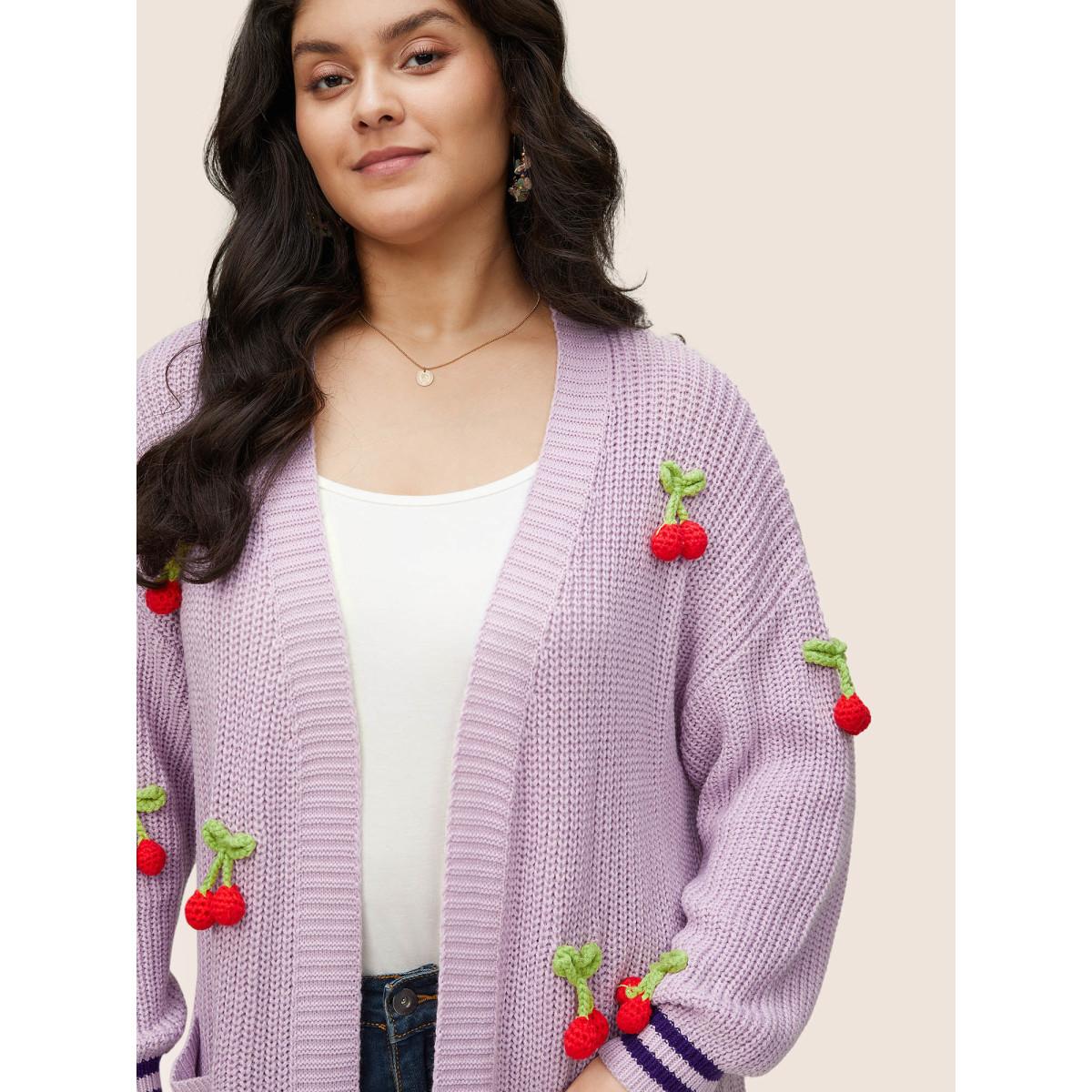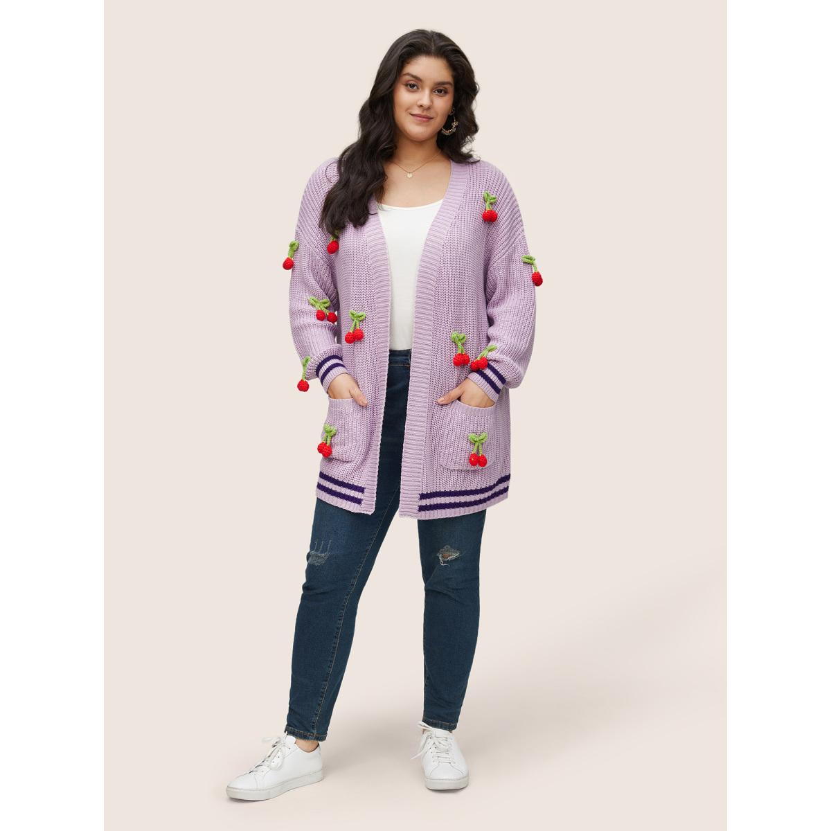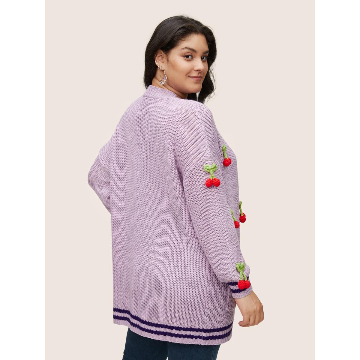 Plus Size Stereo Cherry Design Striped Patchwork Cardigan Lilac Women Casual Loose Long Sleeve Everyday Cardigans BloomChic 10/M