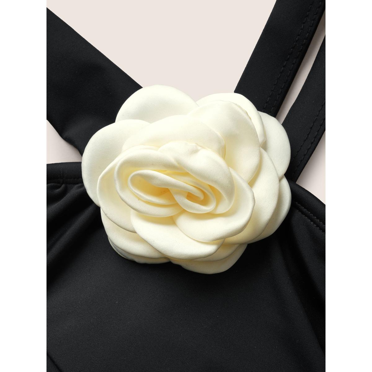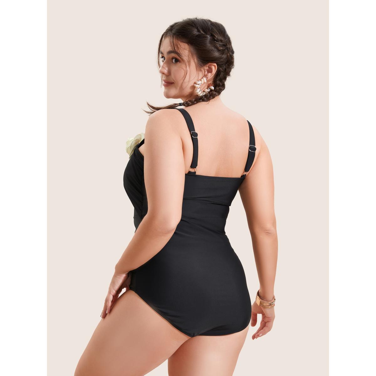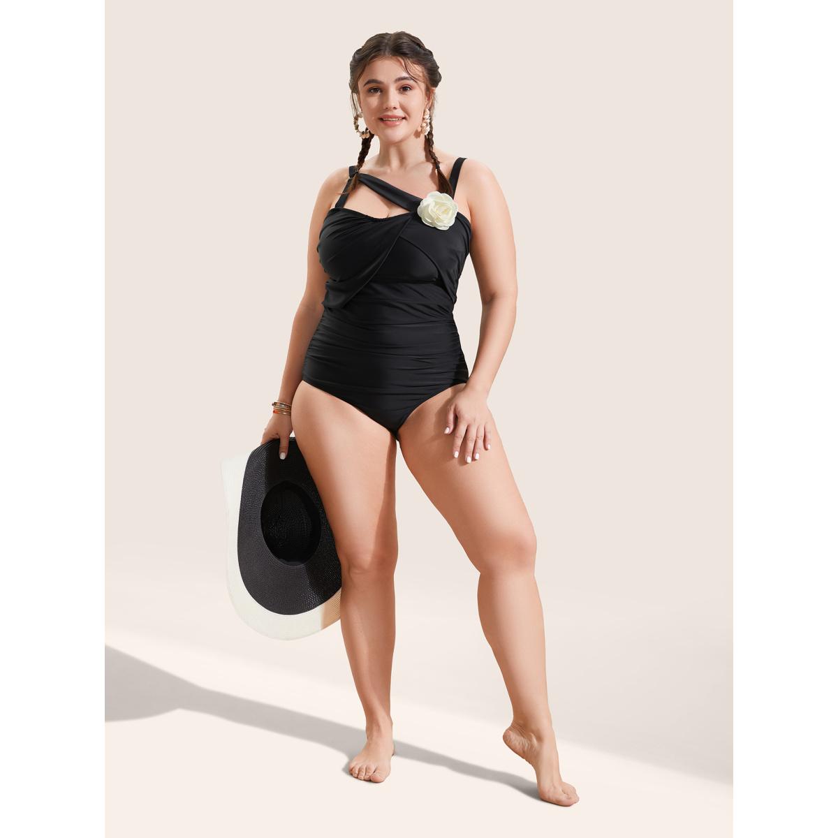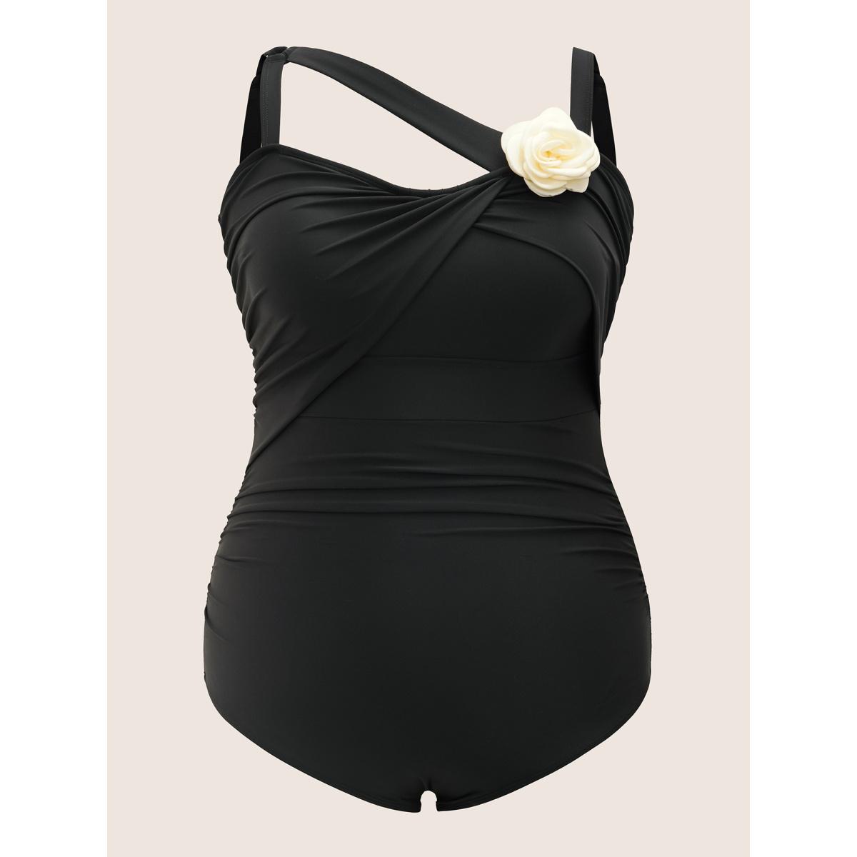 Plus Size Stereo Flower Asymmetrical Ruched One Piece Swimsuit Women's Swimwear Black Beach Overlapping Curve Bathing Suits High stretch One Pieces BloomChic 28/5X