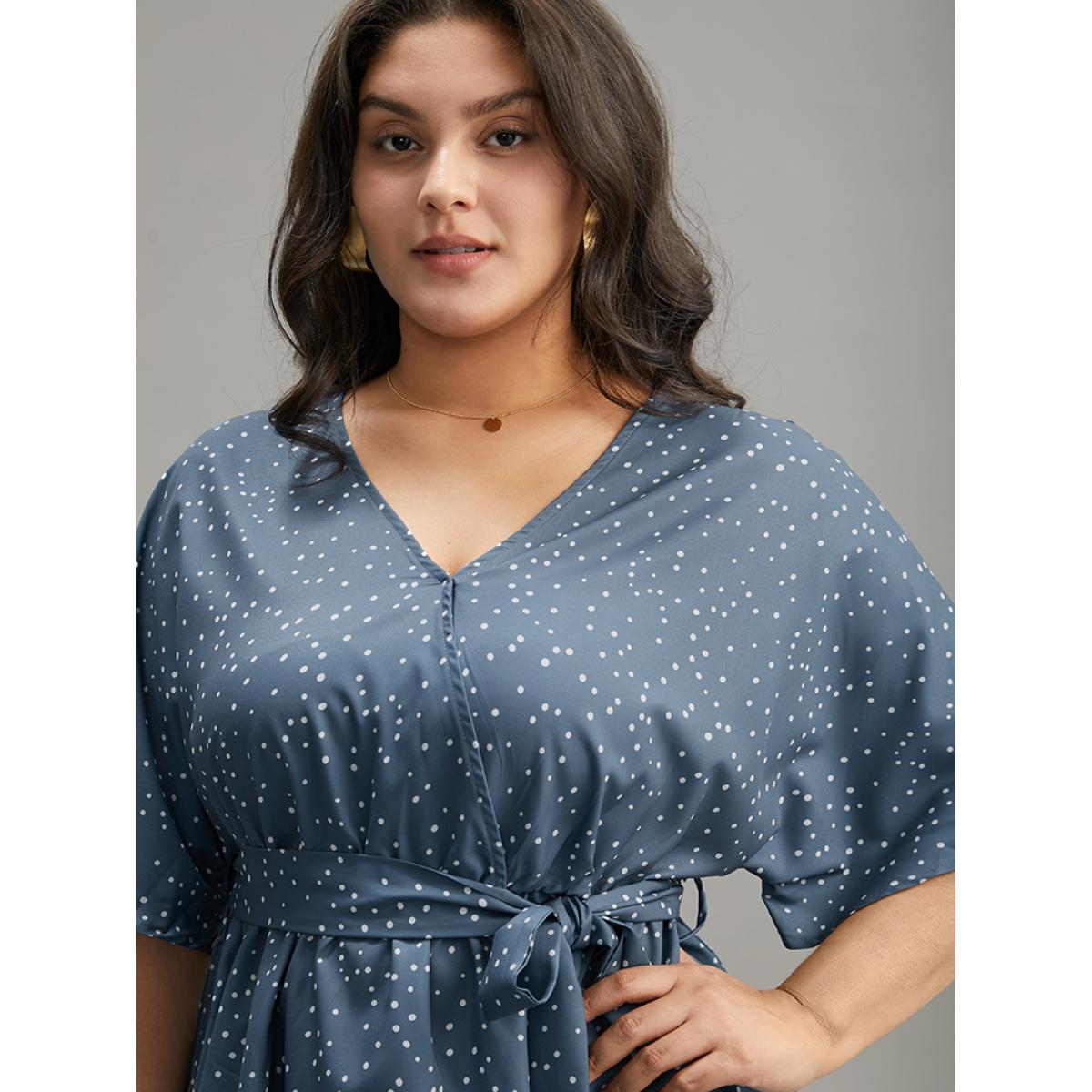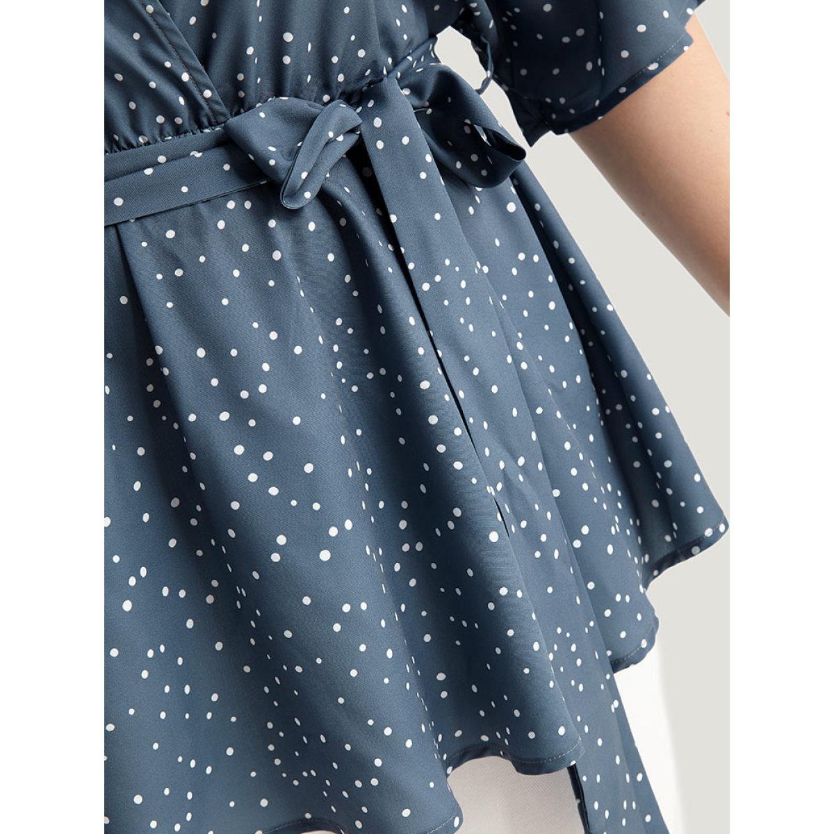 Plus Size Stone Polka Dot Flutter Sleeve Wrap Belted Blouse Women Office Short sleeve V-neck Work Blouses BloomChic 26/4X Product Image