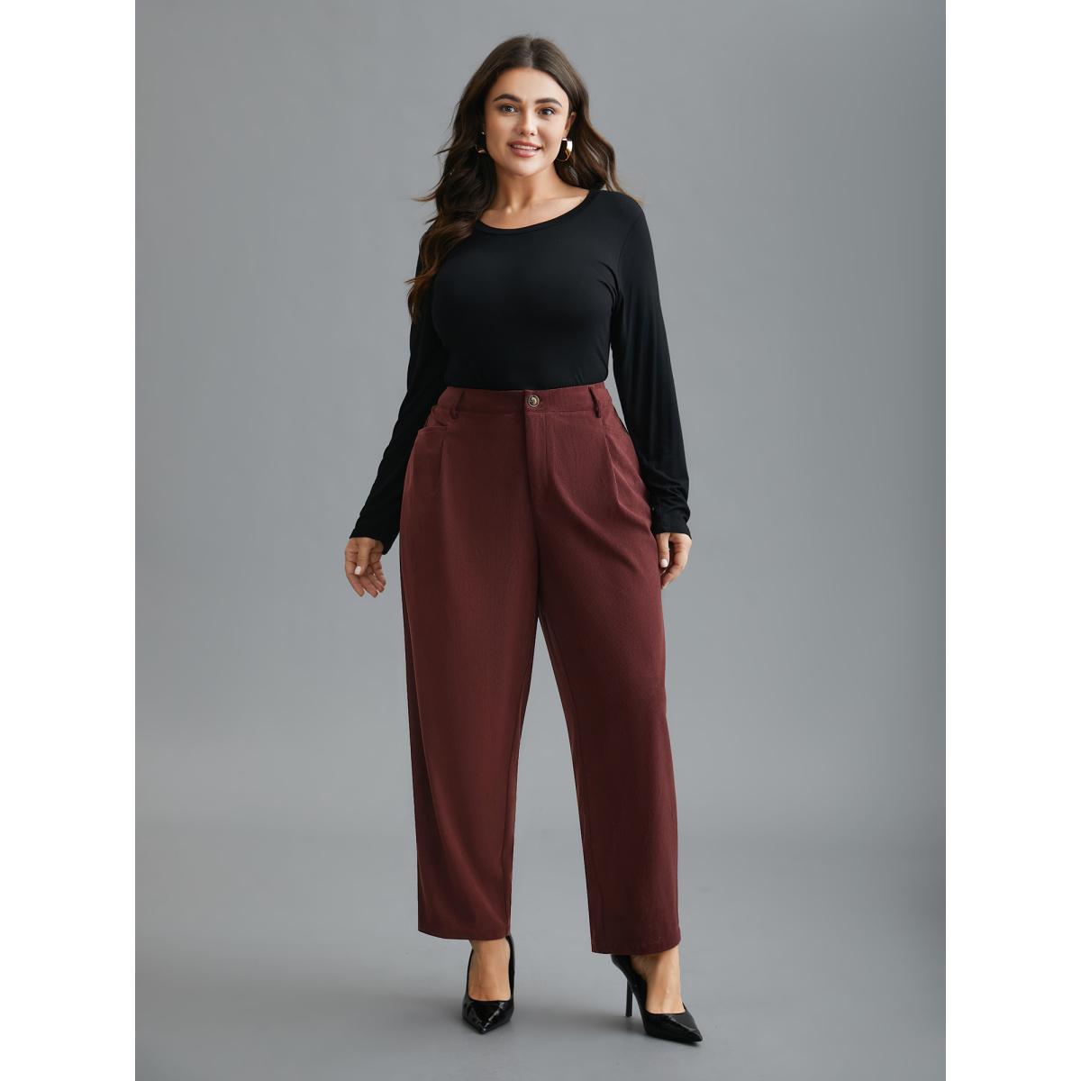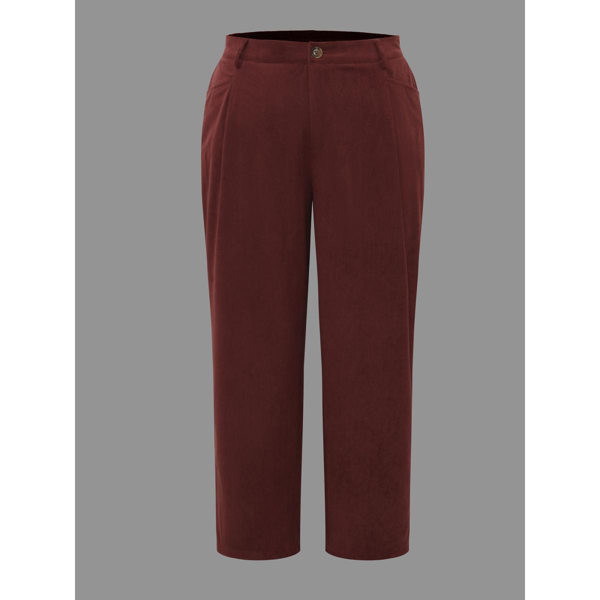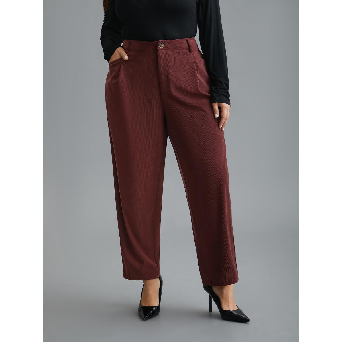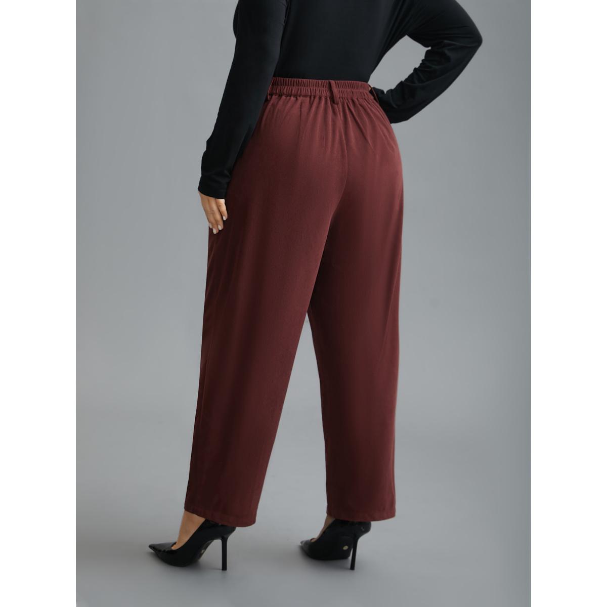 Plus Size Plain Pocket Elastic Waist Trim Hem Pants Women Burgundy Casual High Rise Dailywear Pants BloomChic 18-20/2X