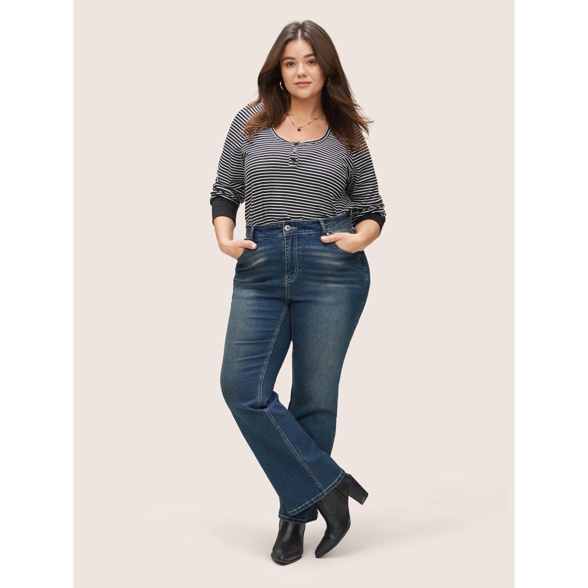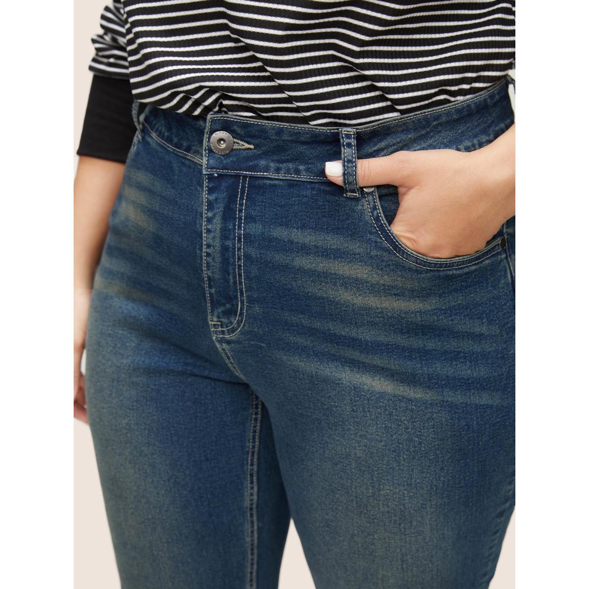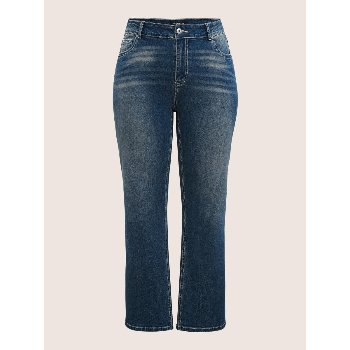 Plus Size Straight Leg Vintage Full Length Jeans Women Aegean Casual Plain Plain High stretch Pocket Jeans BloomChic 24/3X Product Image