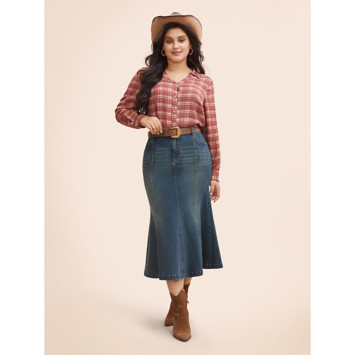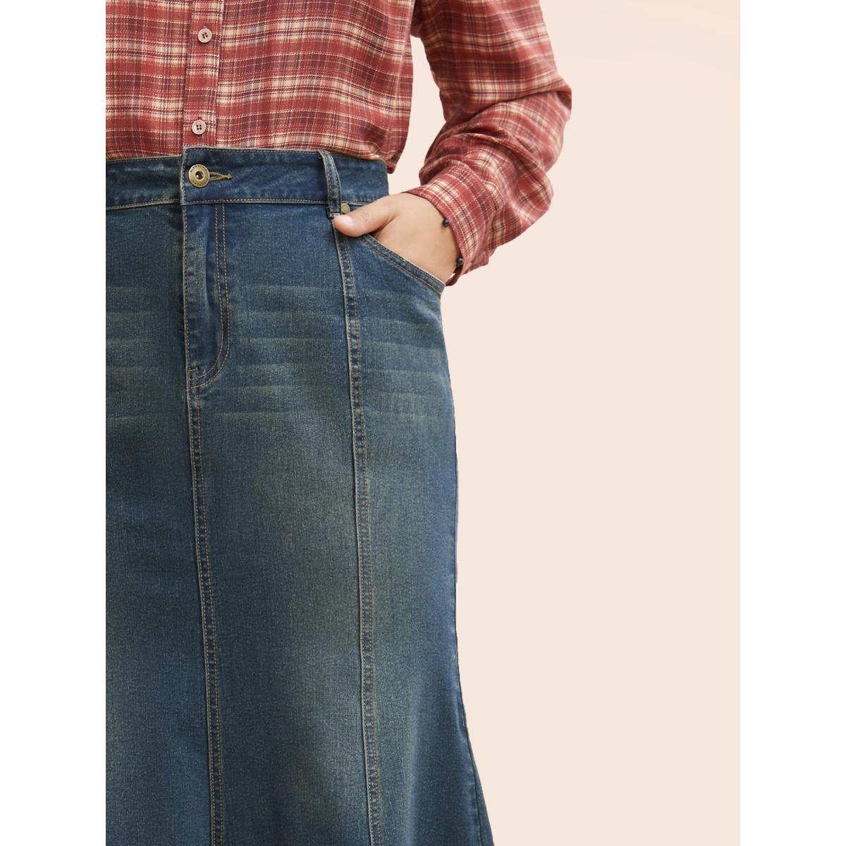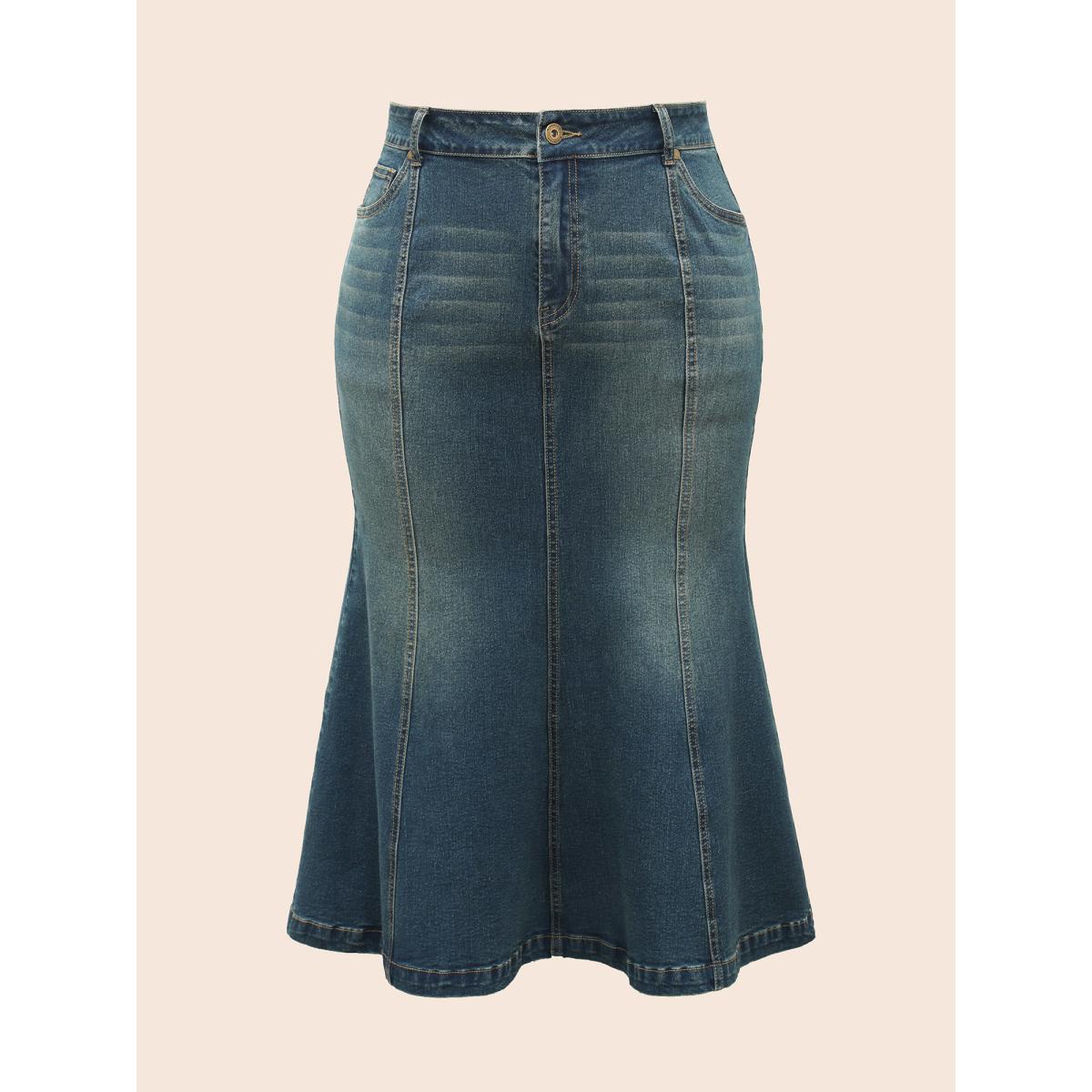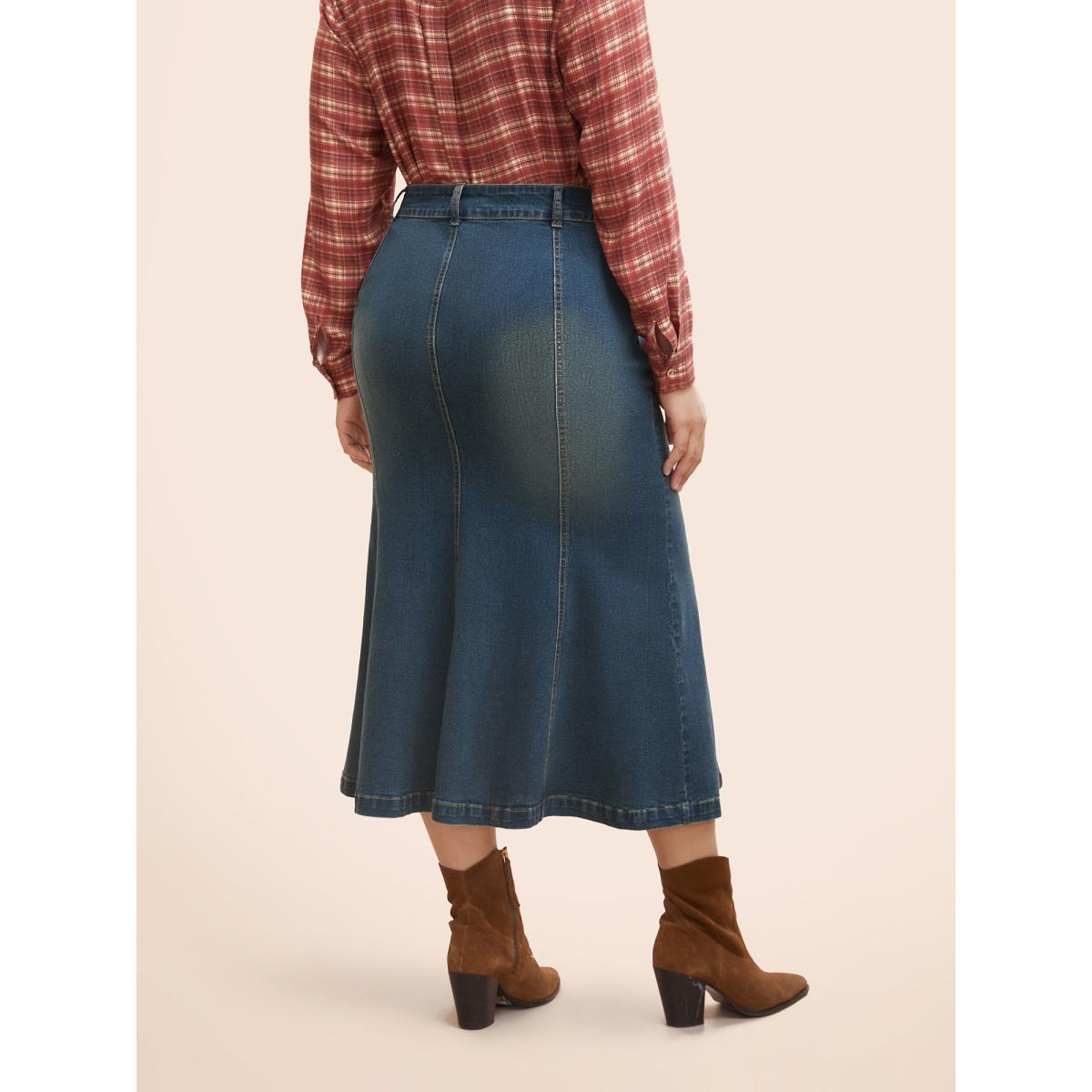 Plus Size Stretch Denim Mermaid Cut Skirt Women Bluevintage Everyday Button Medium stretch Medium Wash 16/1X Casual Denim Skirts BloomChic