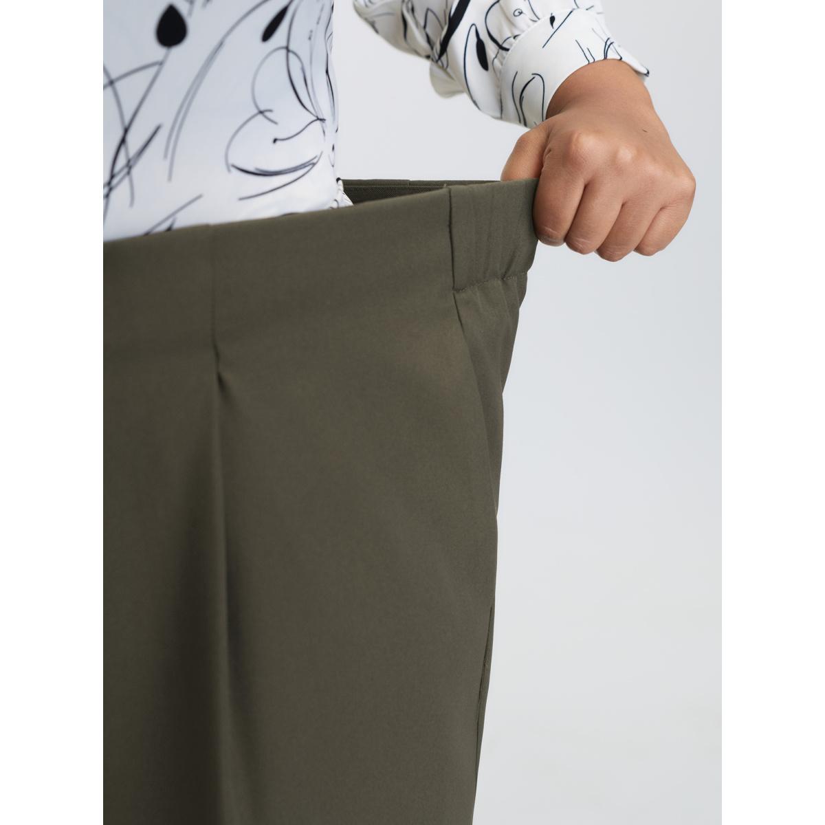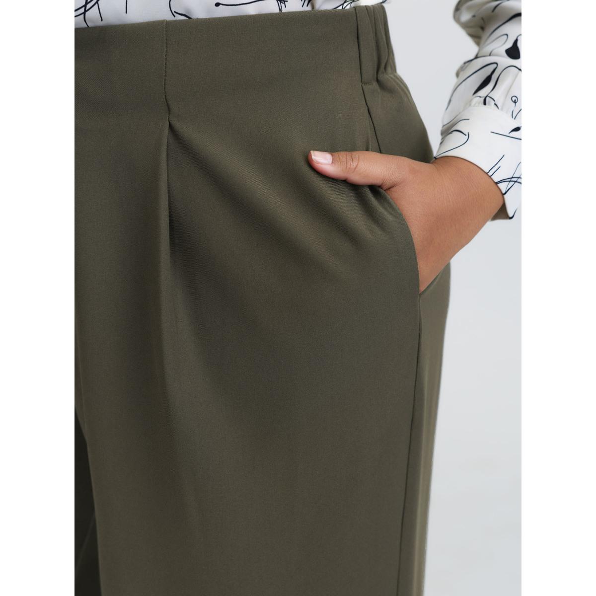 Plus Size Stretchy Back Waistband Wide-Leg Pants Women ArmyGreen Office Straight Leg Mid Rise Office Pants BloomChic 12/L