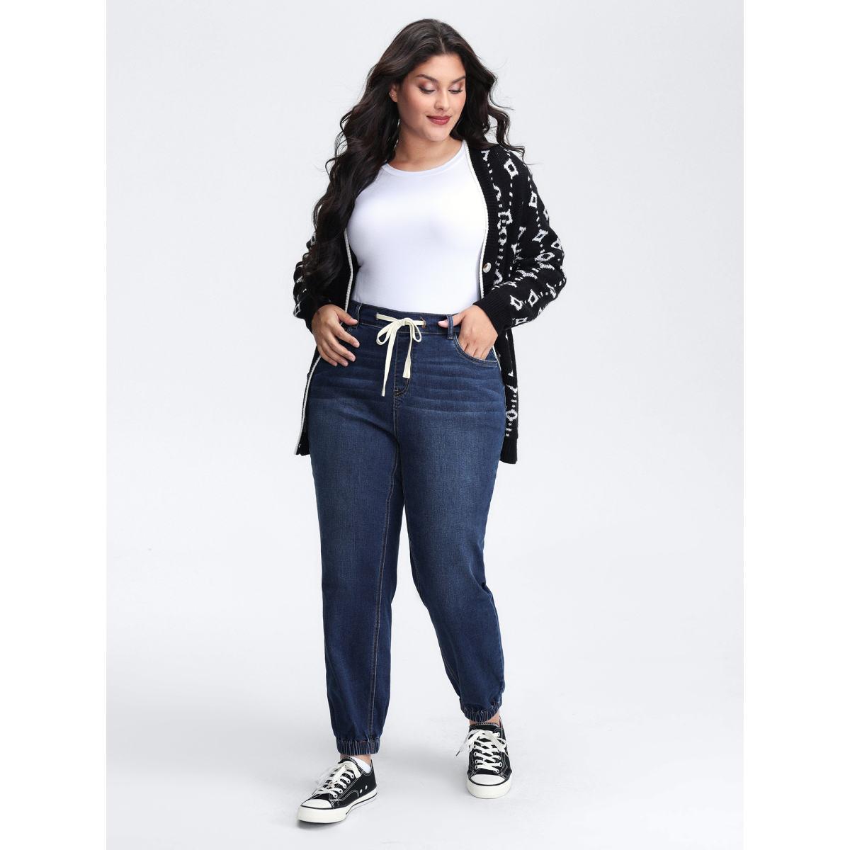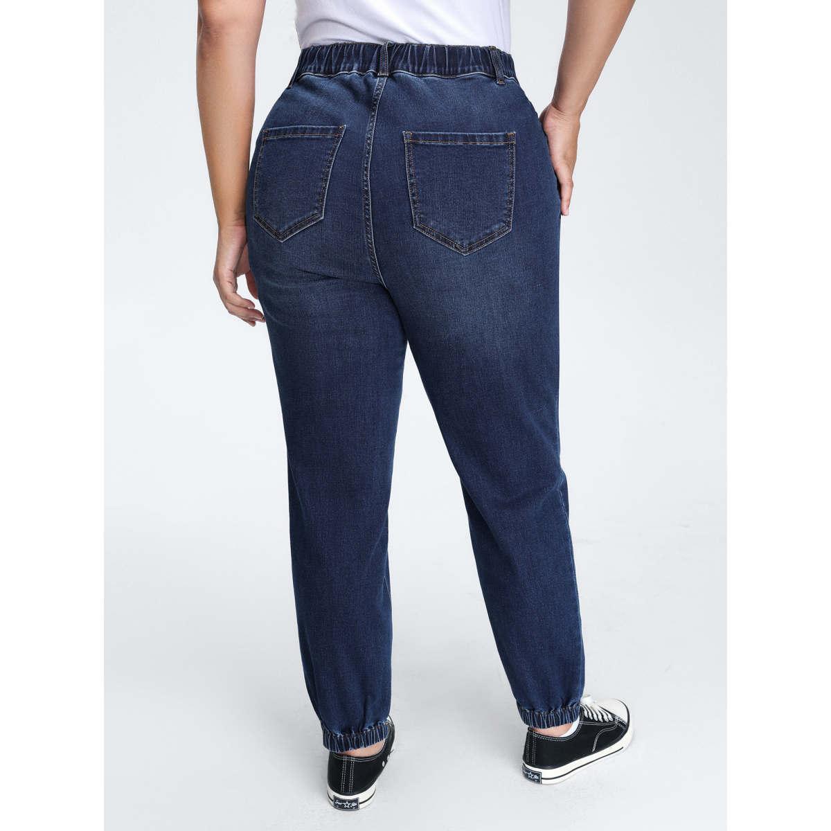Plus Size Stretchy Drawstring Cuffed Jogger Jeans Women Denimindigo Leisure Elastic Waist Medium stretch Slanted pocket Jeans BloomChic 30/6X