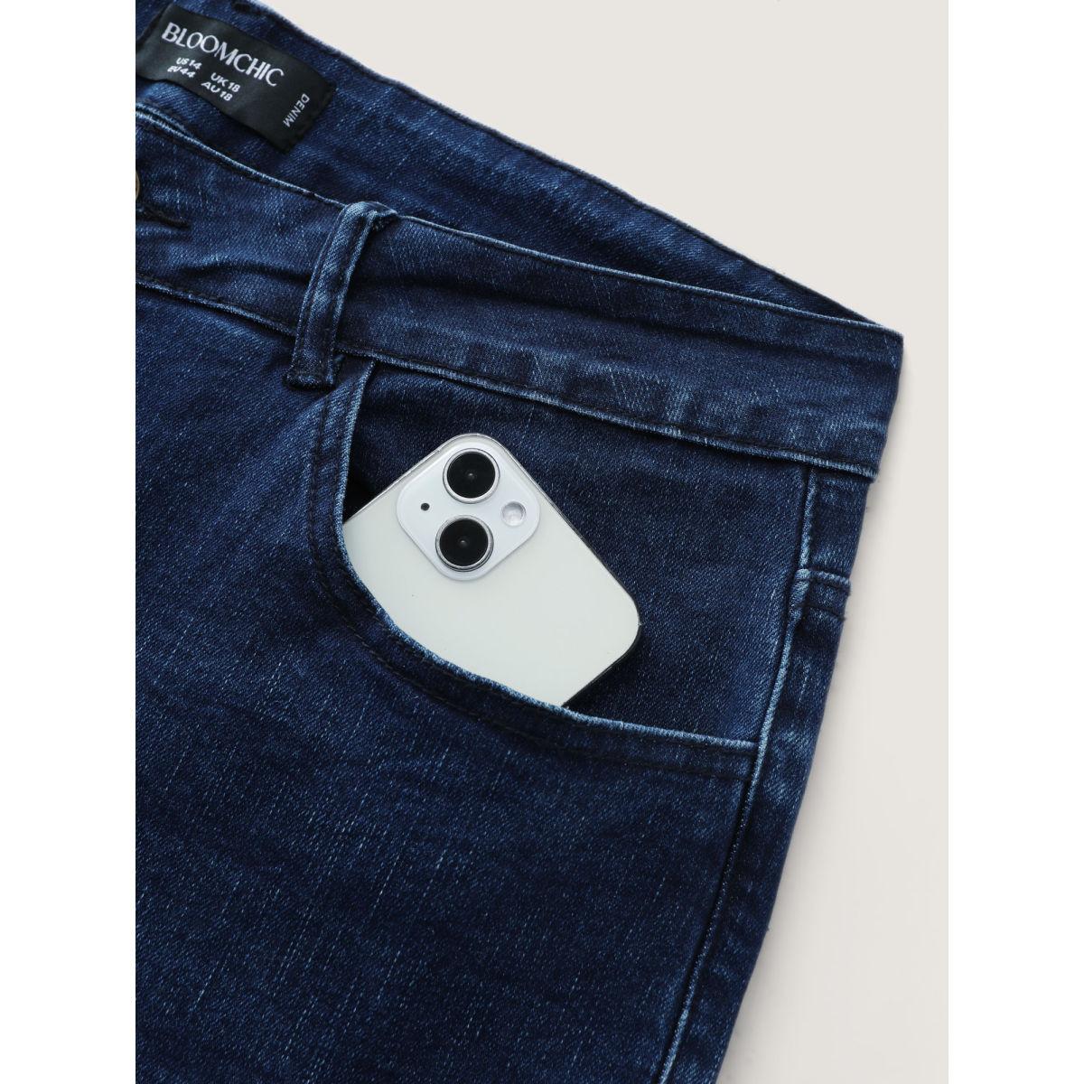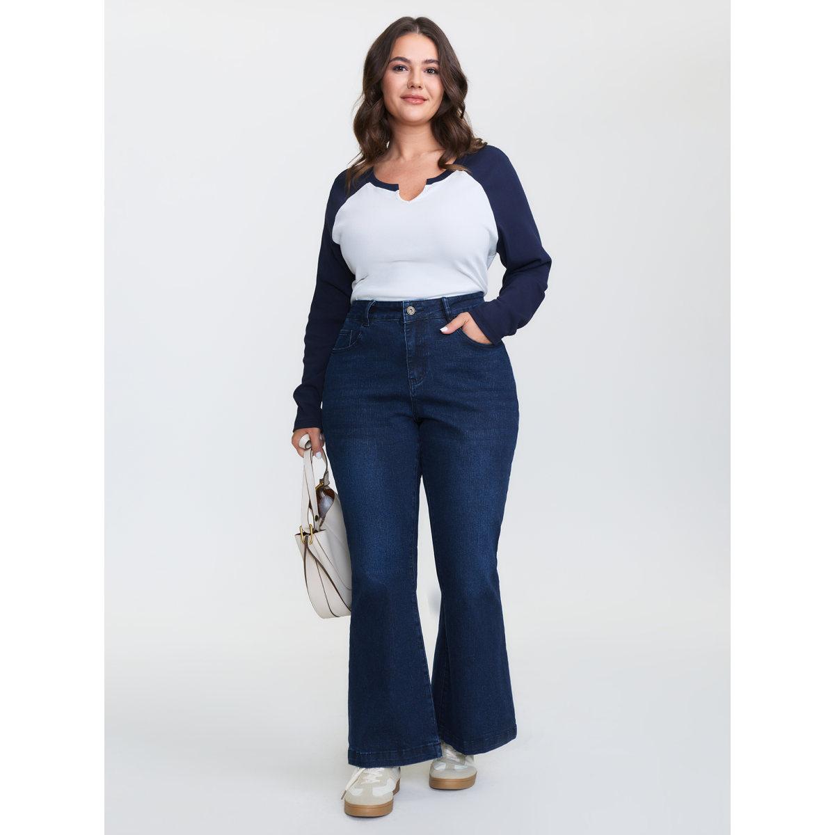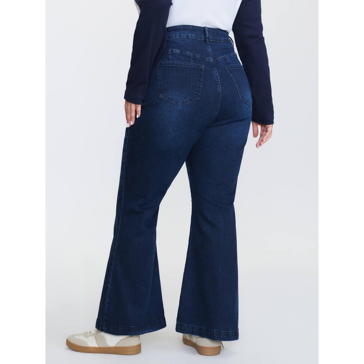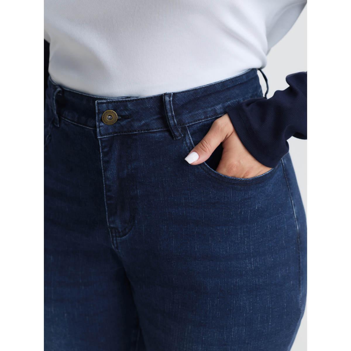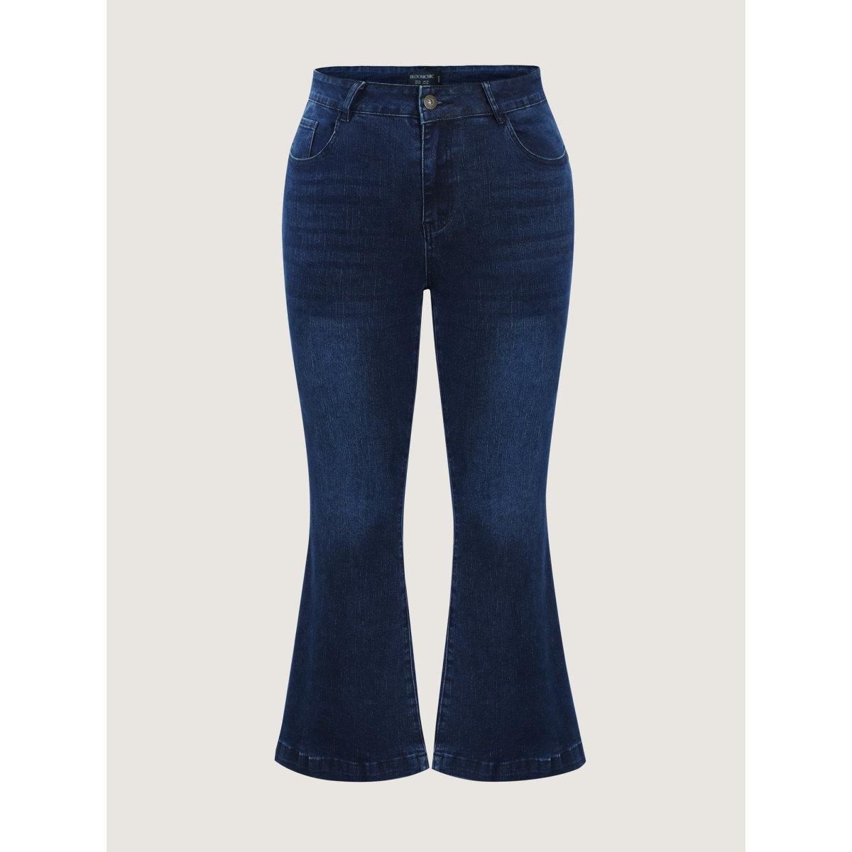 Plus Size Stretchy Mid-Rise Bootcut Jeans Women Darkindigo Timeless Topstitching High stretch Slanted pocket Jeans BloomChic 28/5X