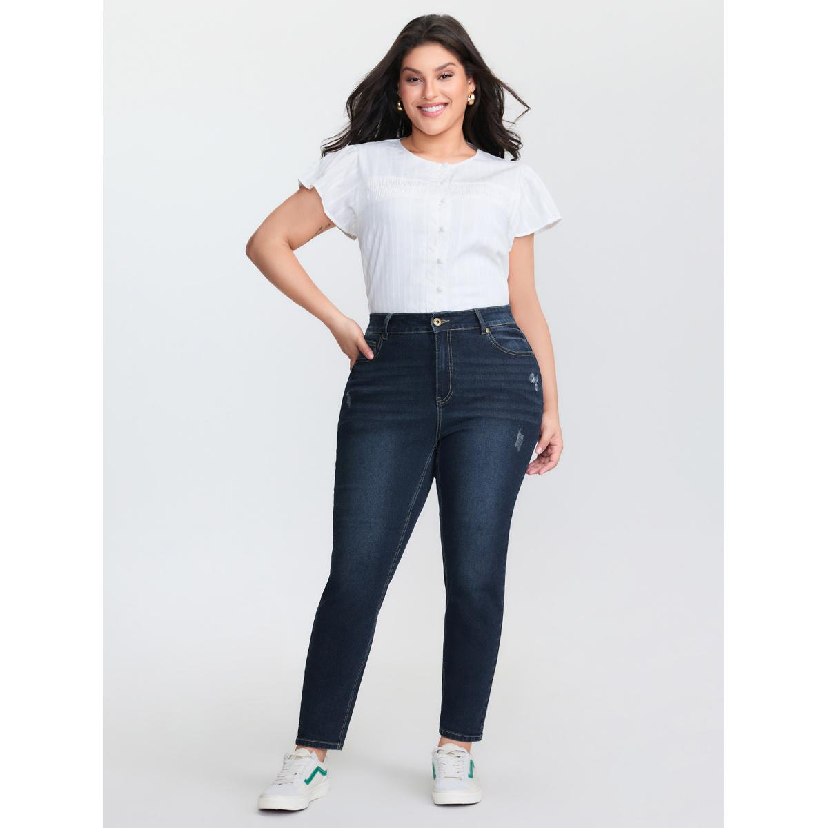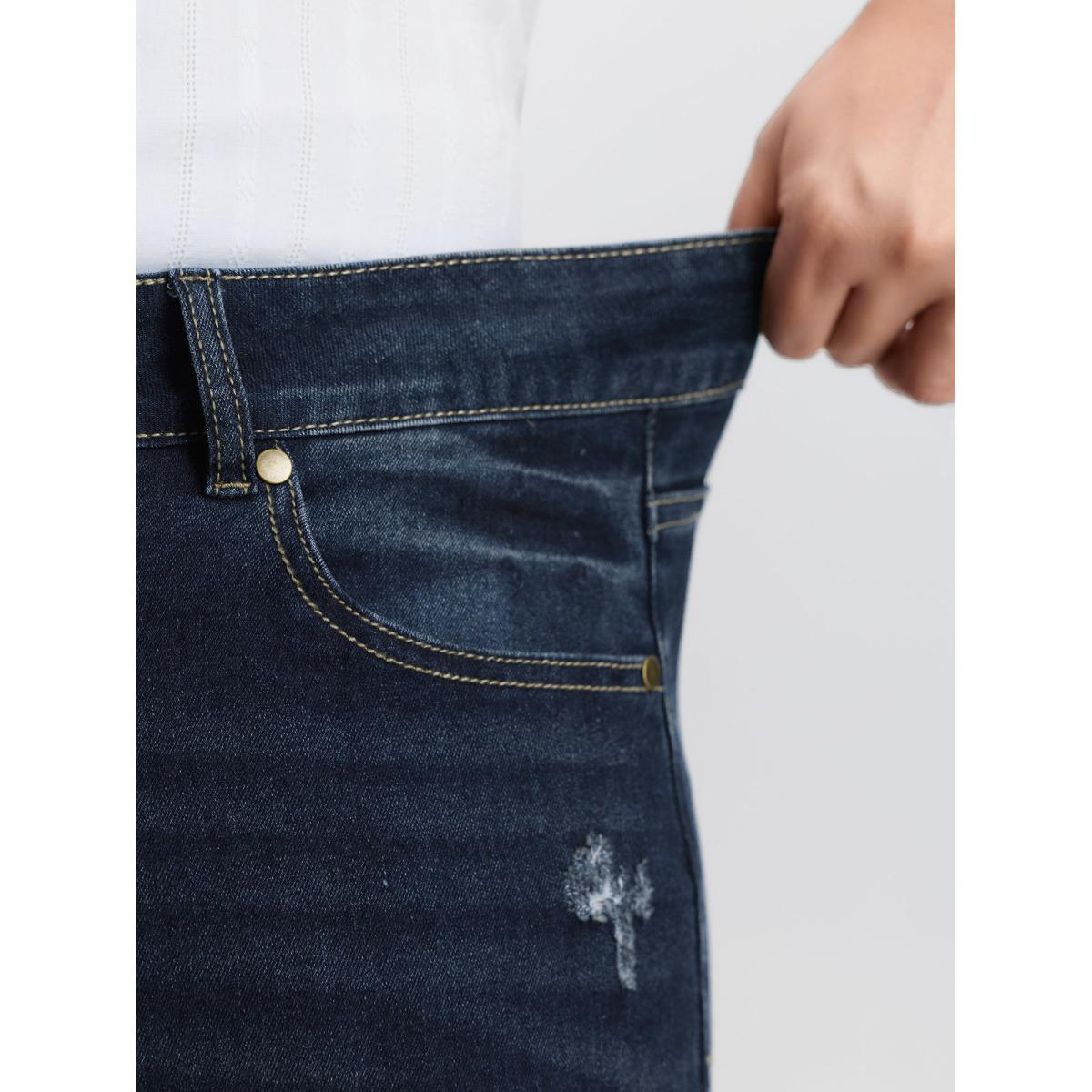 Plus Size Stretchy Mid-Rise Skinny Fit Jeans Women Bluevintage Leisure Distressed High stretch Slanted pocket Jeans BloomChic 22/3X