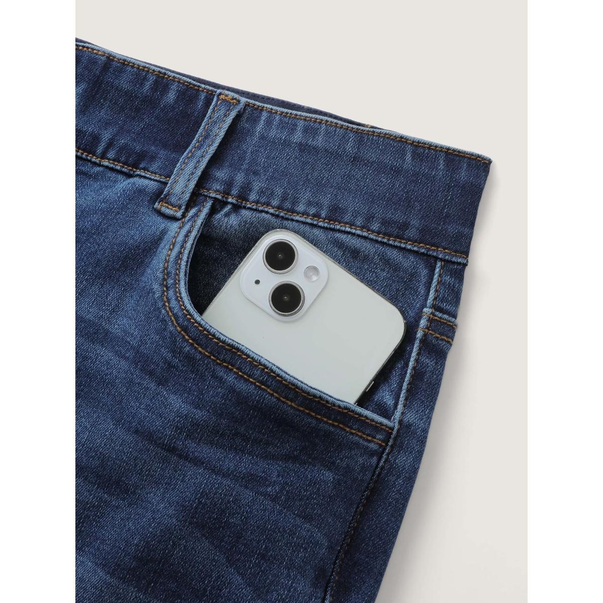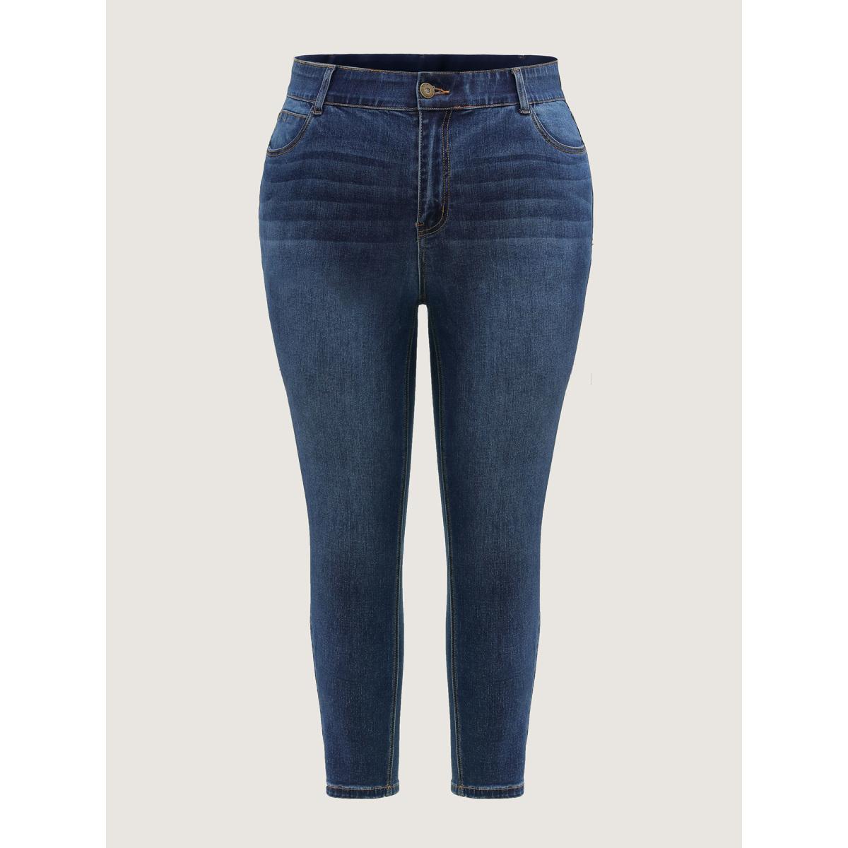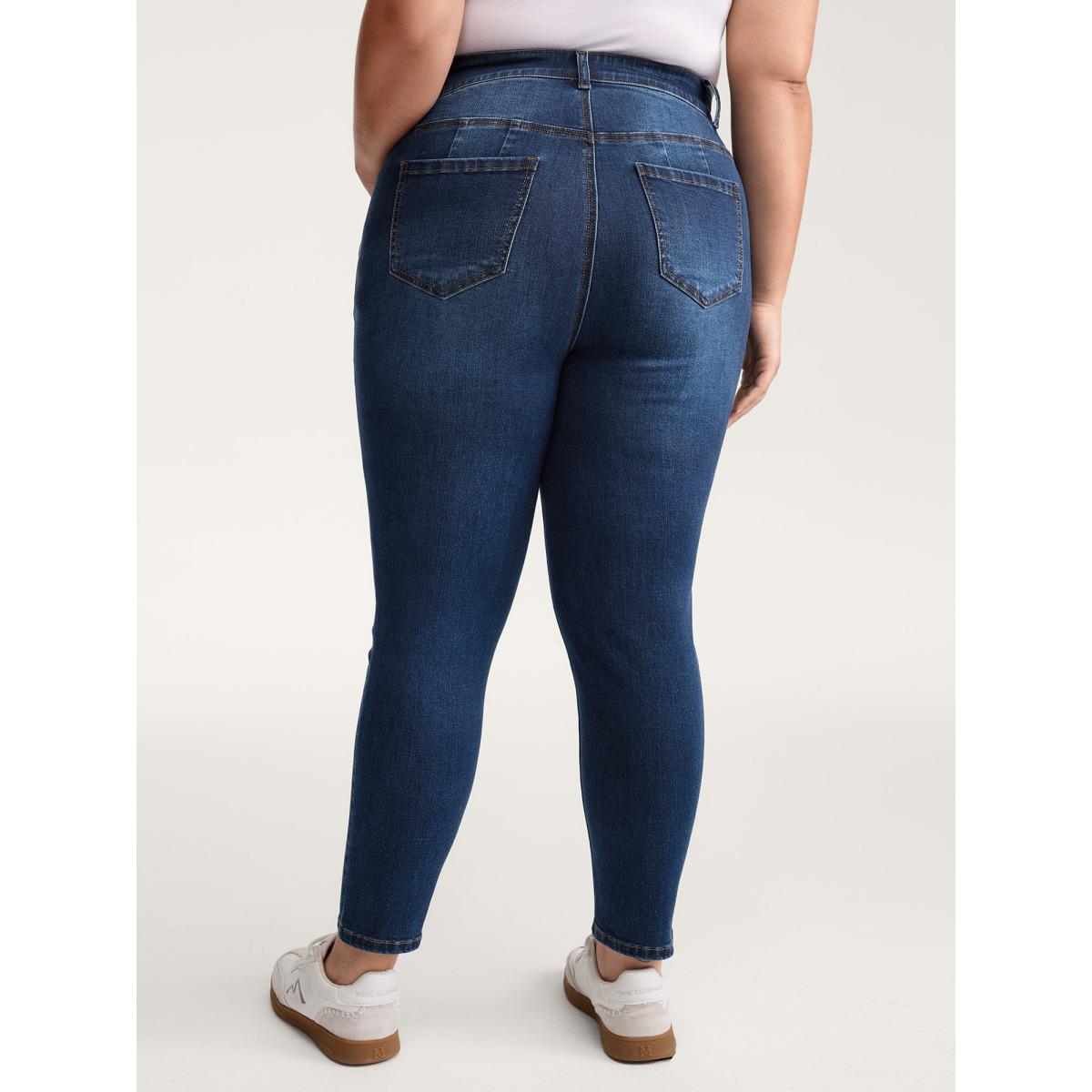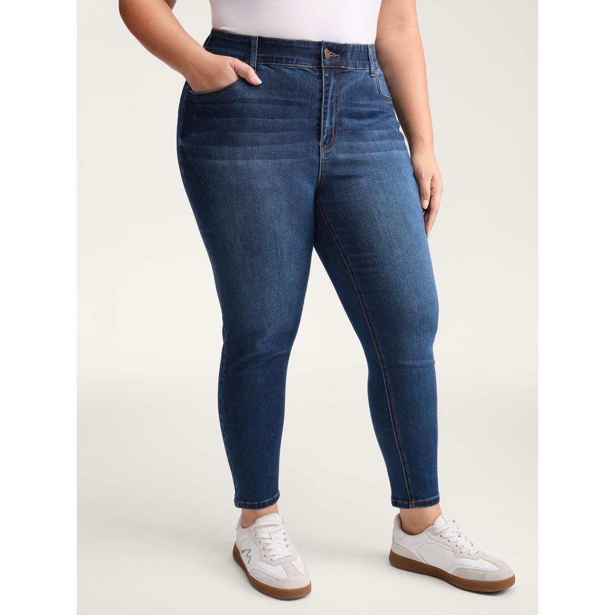 Plus Size Stretchy Mid-Rise Skinny-Fit Jeans Women Denimindigo Leisure Elastic Waist High stretch Slanted pocket Jeans BloomChic 14/1X