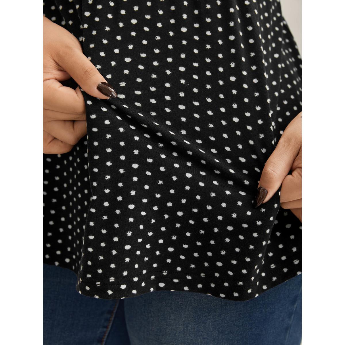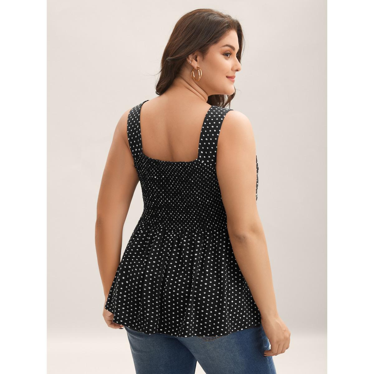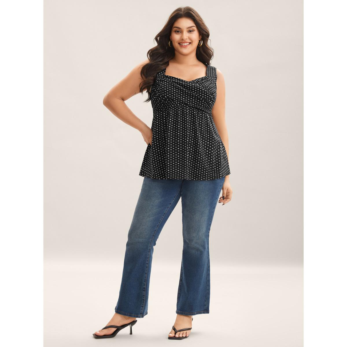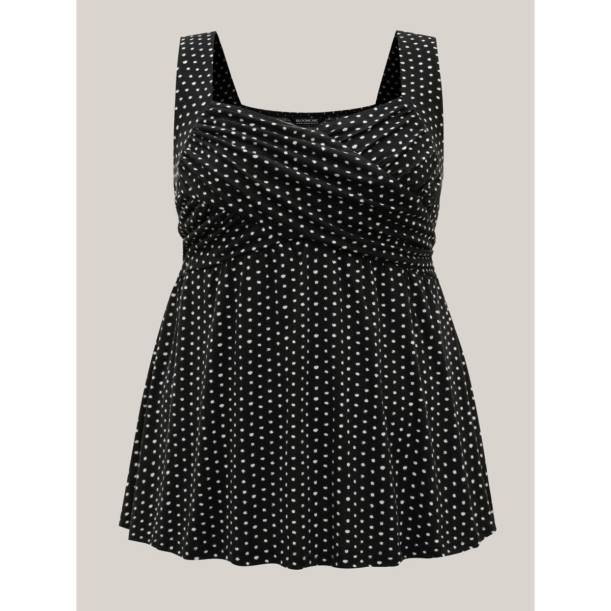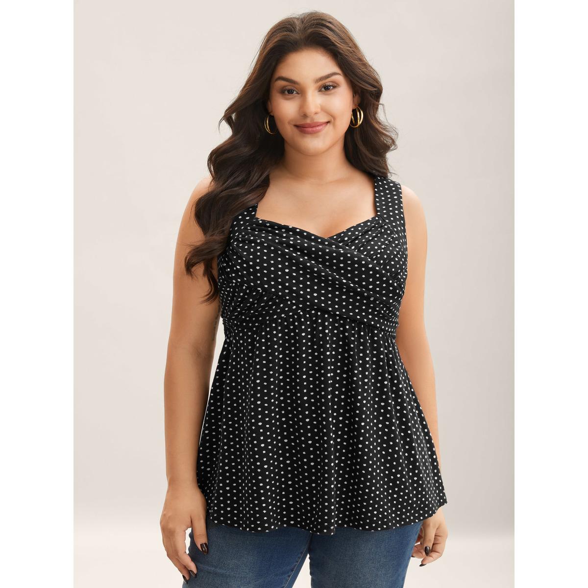 Plus Size Stretchy Polka Dots Shirred Tank Top Women Black Overlapping Deep V-neck Everyday-Elegant Tank Tops Camis BloomChic 28/5X