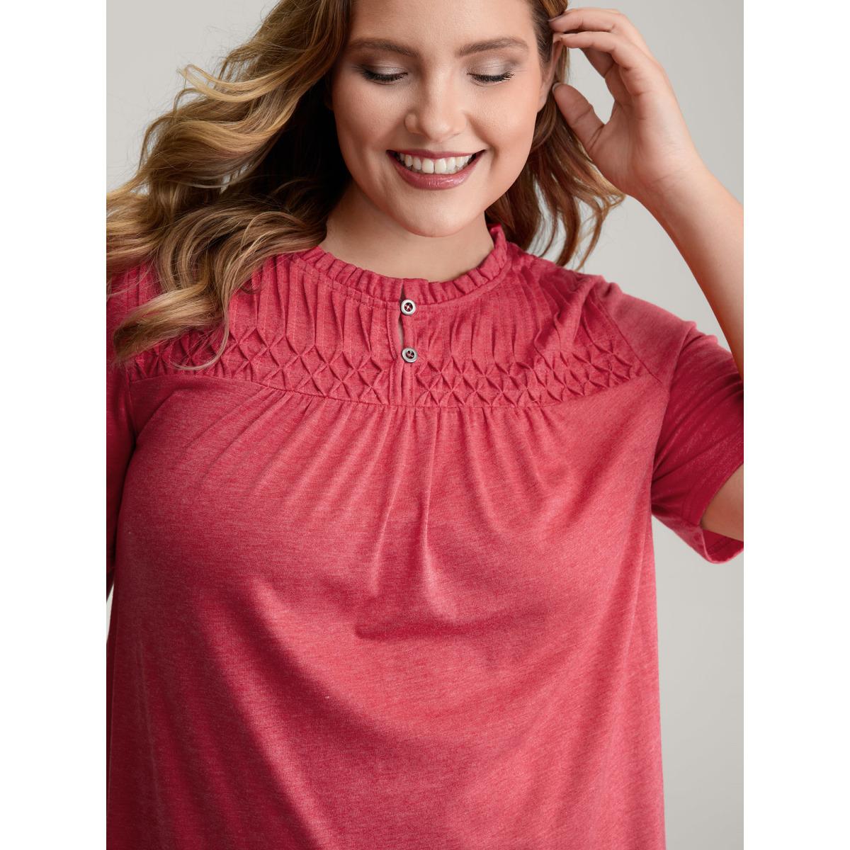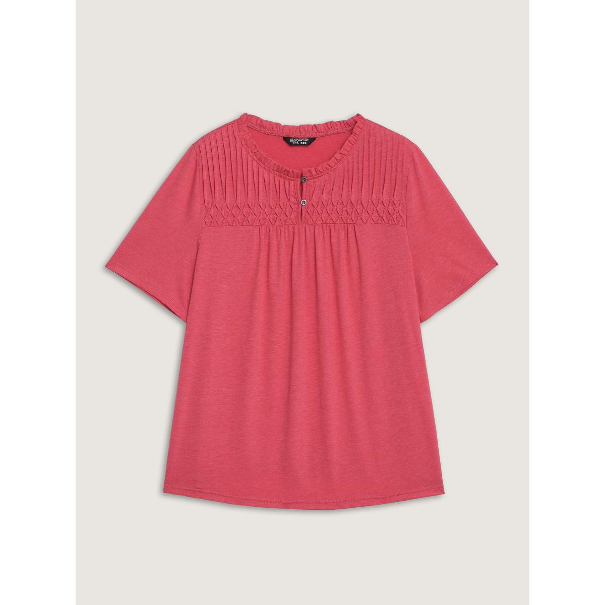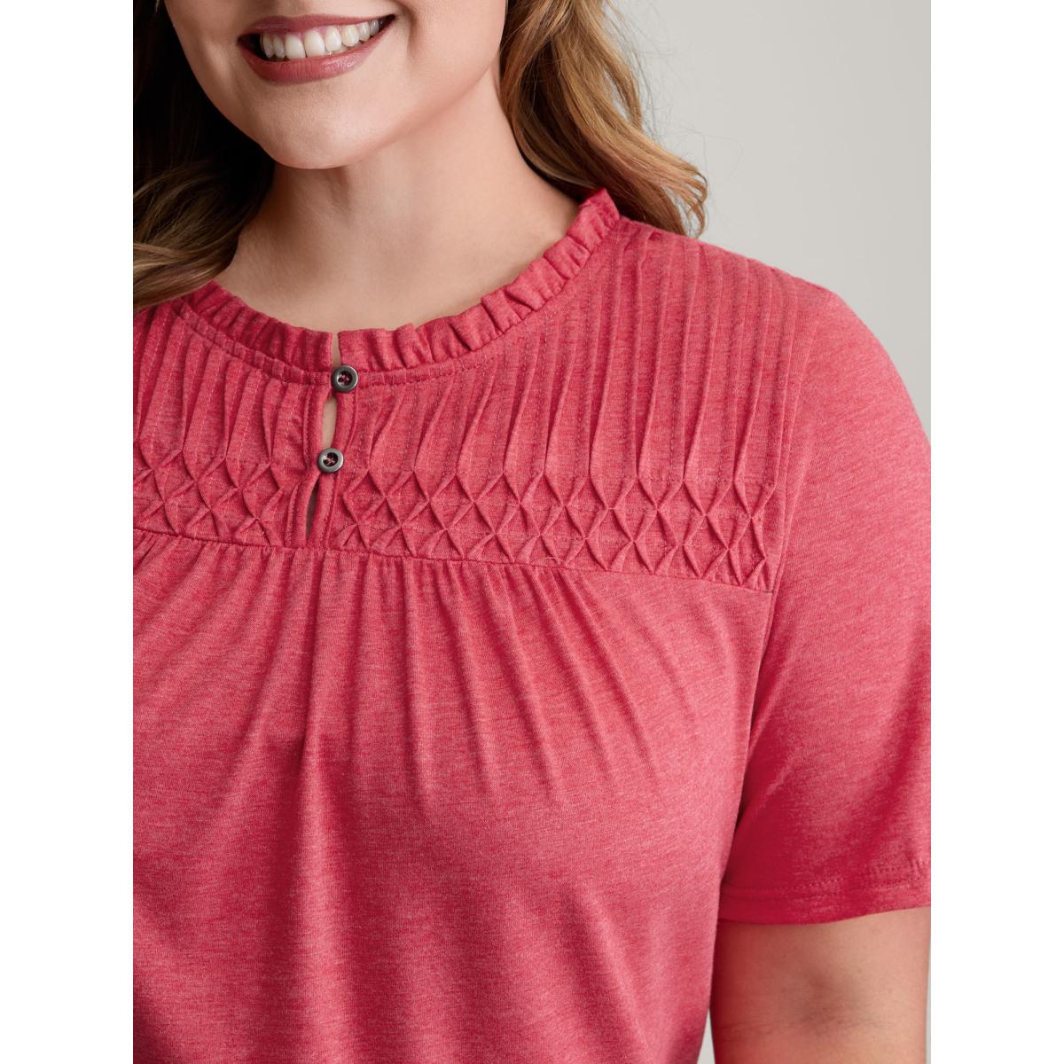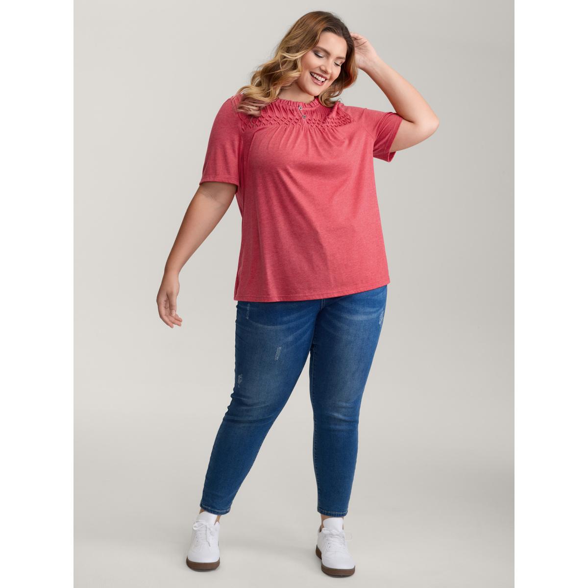 Plus Size Stretchy Ruched Neckline Ruffled Neck T-Shirt OrangeRed Women Leisure Gathered Round Neck Casual T-shirts BloomChic 30/6X