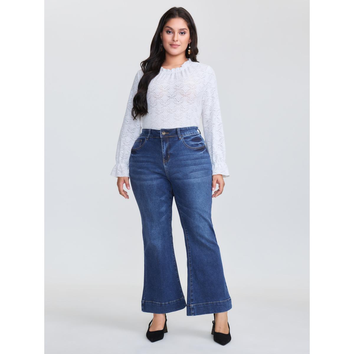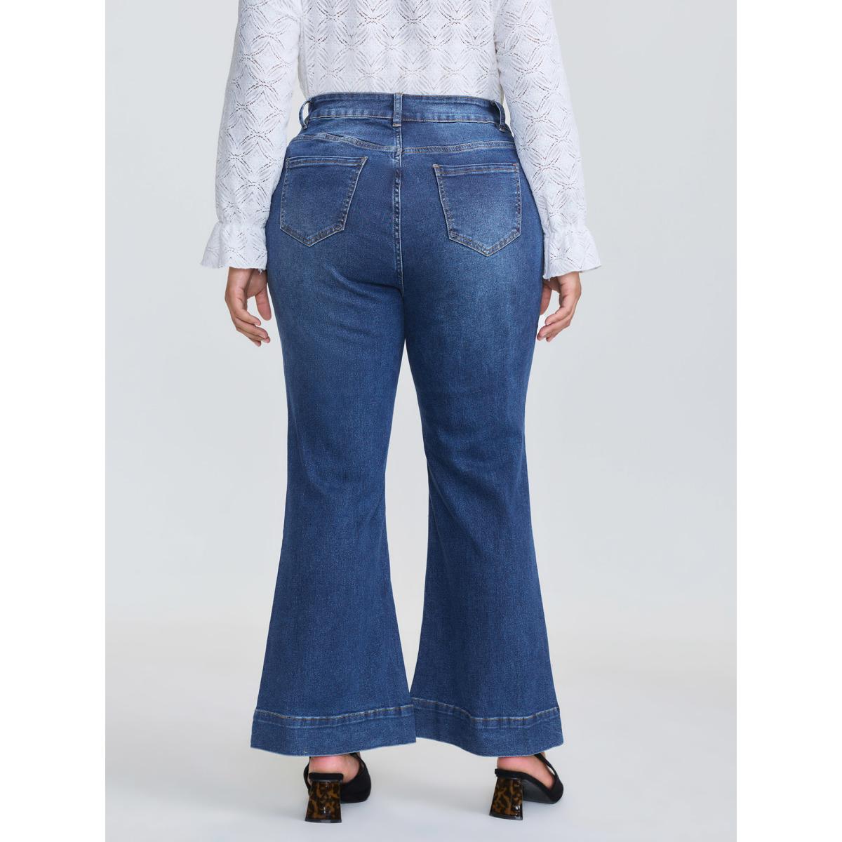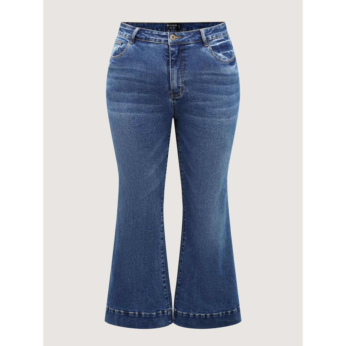 Plus Size Stretchy Waist Flared Hem Jeans Women Bluevintage Leisure Medium stretch Slanted pocket Jeans BloomChic 24/3X