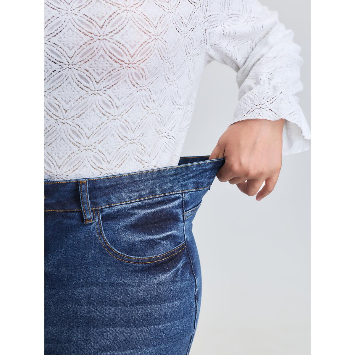 Plus Size Stretchy Waist Whiskered Bootcut Jeans Women Denimindigo Elegant Medium stretch Slanted pocket Jeans BloomChic 30/6X