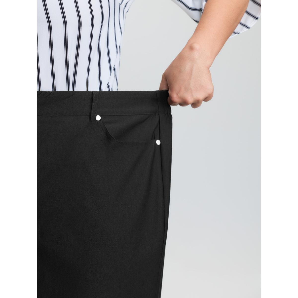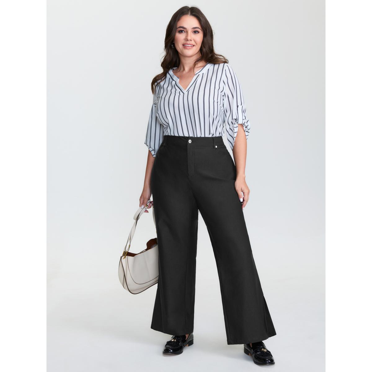 Plus Size Stretchy Split Hem Bootcut Pants Women Black Leisure Bootcut Mid Rise Casual Pants BloomChic 10/M