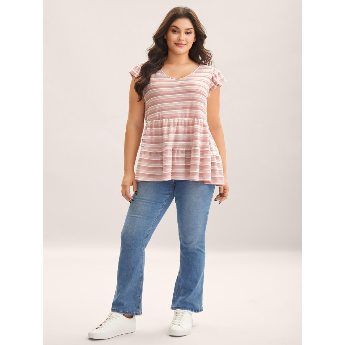 Plus Size Stretchy Stripe Print Tank Top Women Dirtypink Texture V-neck Everyday-Casual Tank Tops Camis BloomChic 26/4X