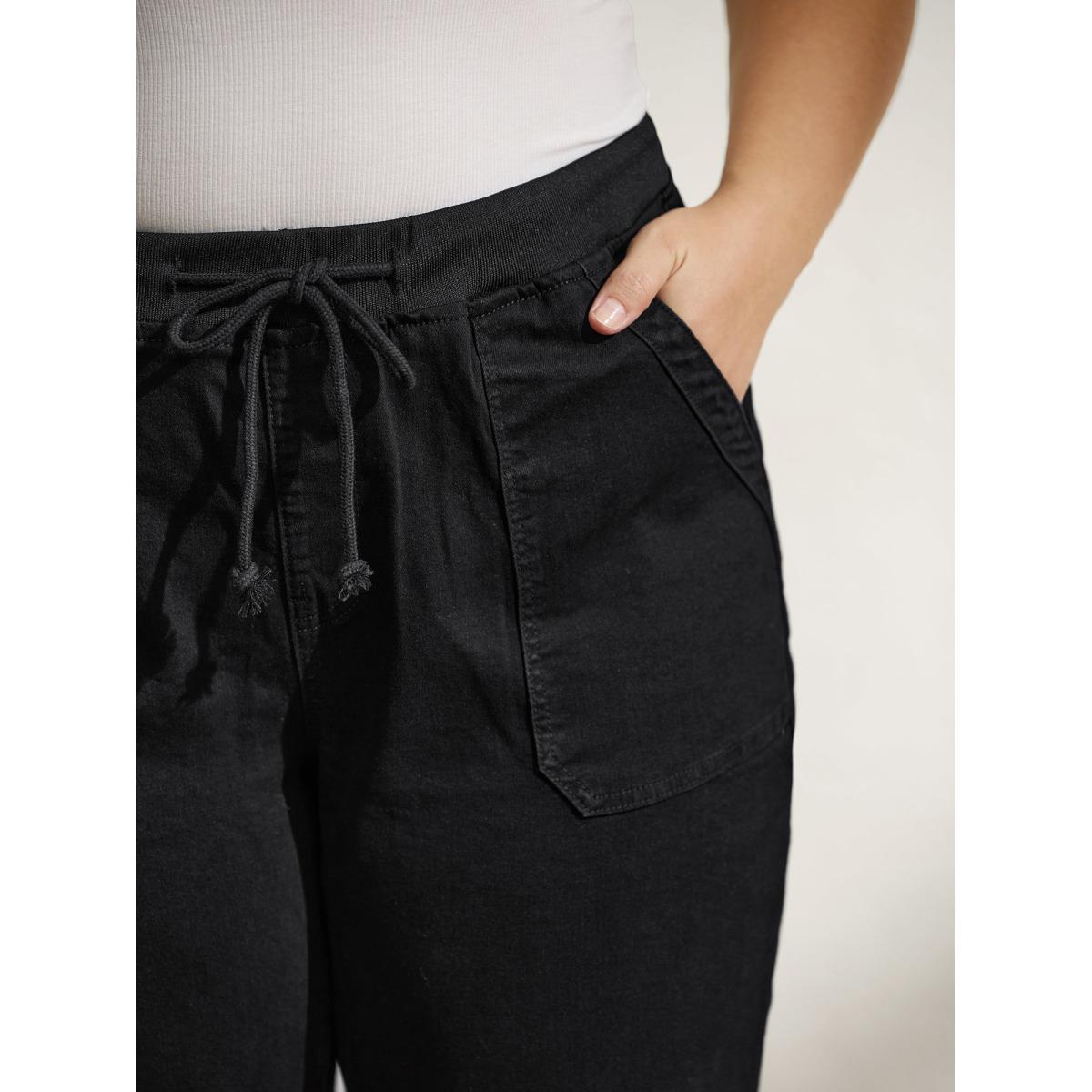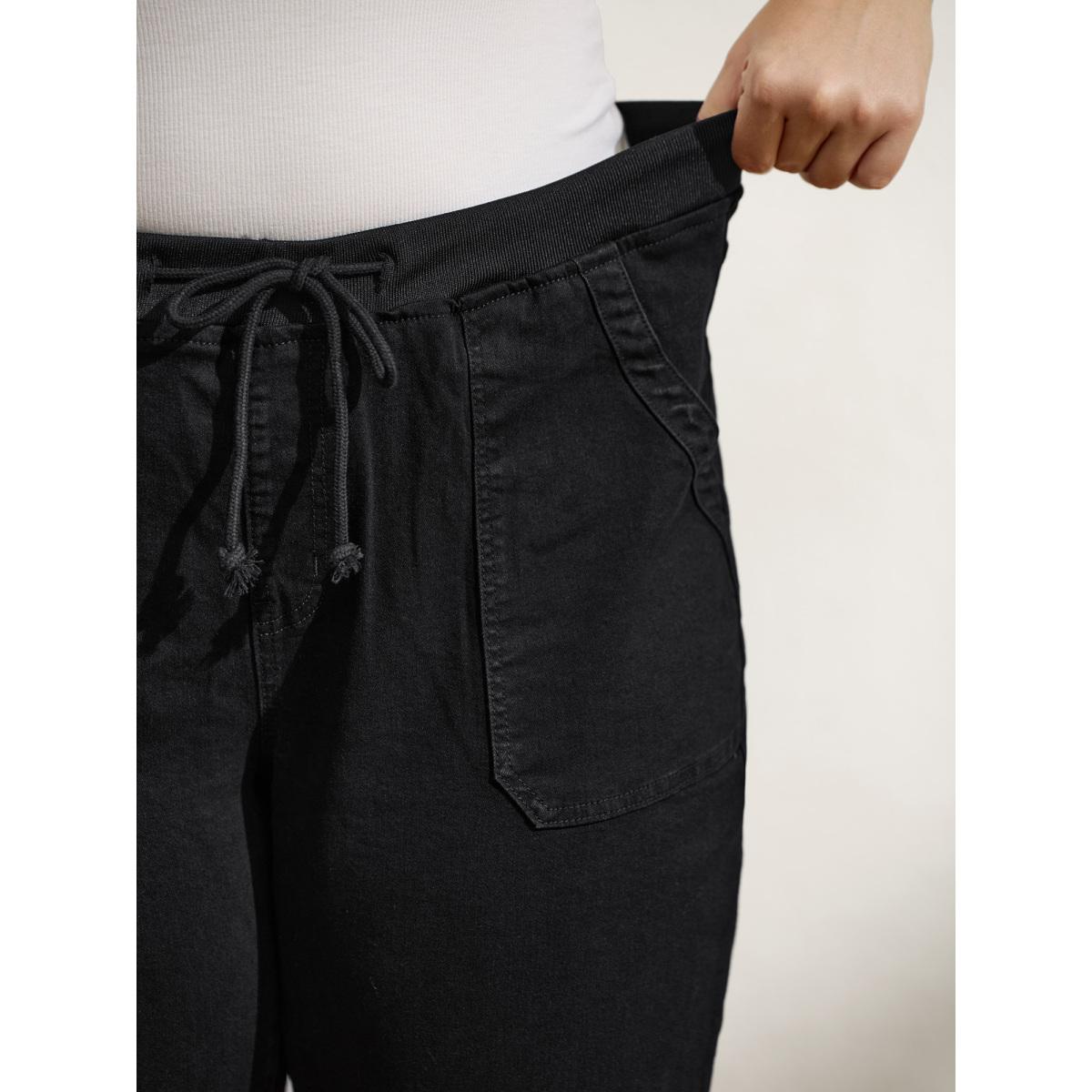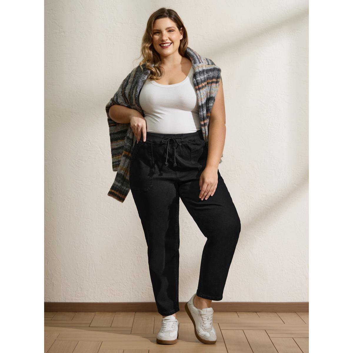Plus Size Stretchy Threaded Waist Skinny-Fit Jeans Women Denimblack Leisure Elastic Waist High stretch Slanted pocket Jeans BloomChic 28/5X
