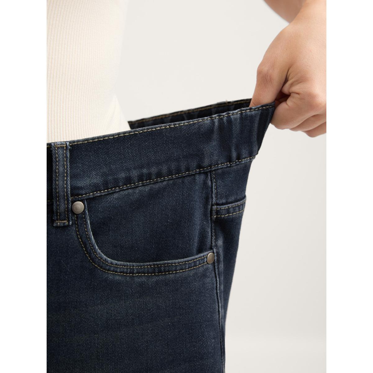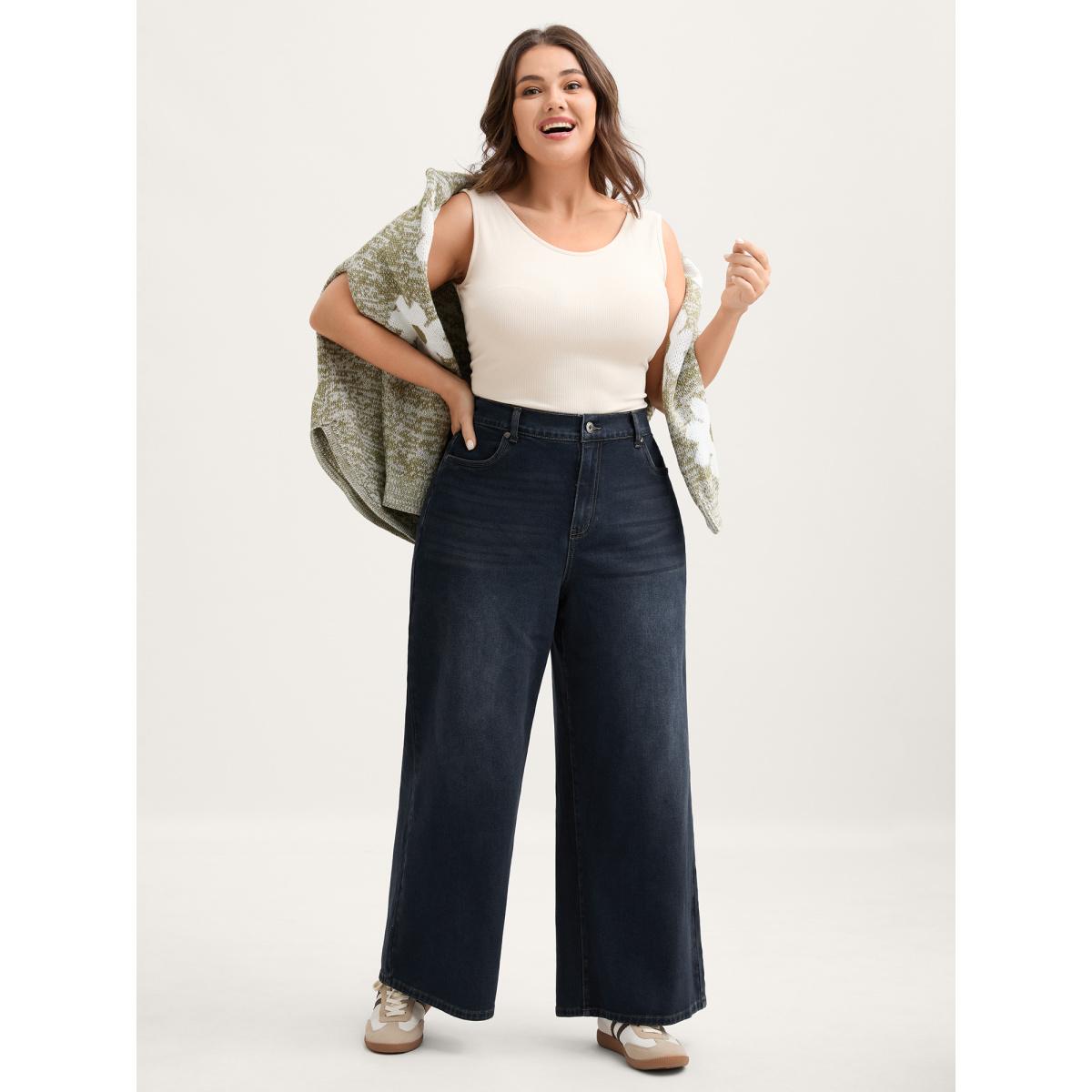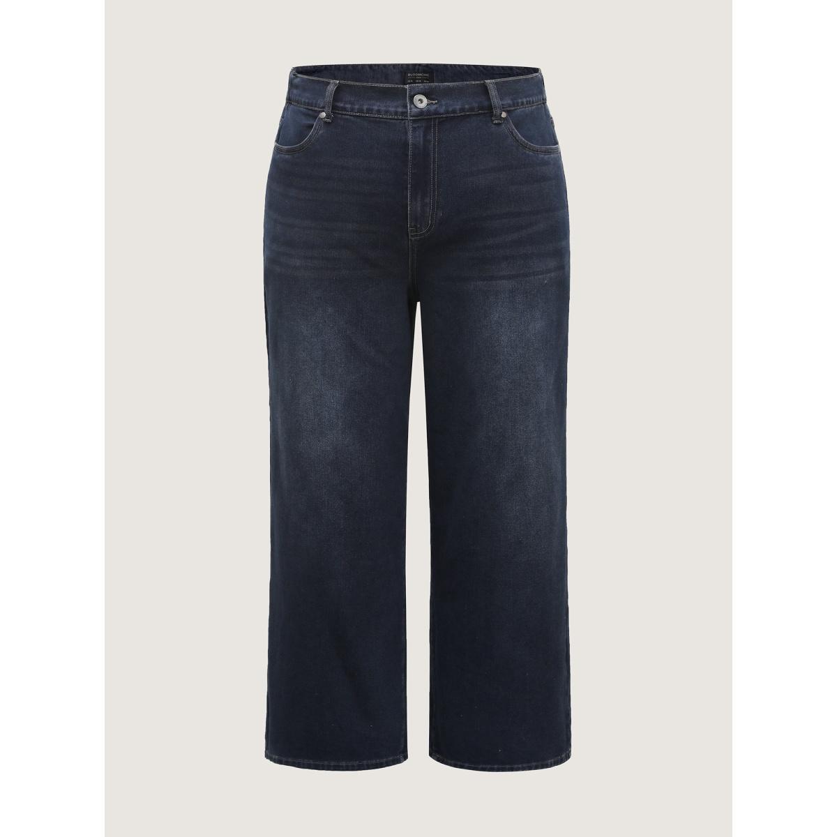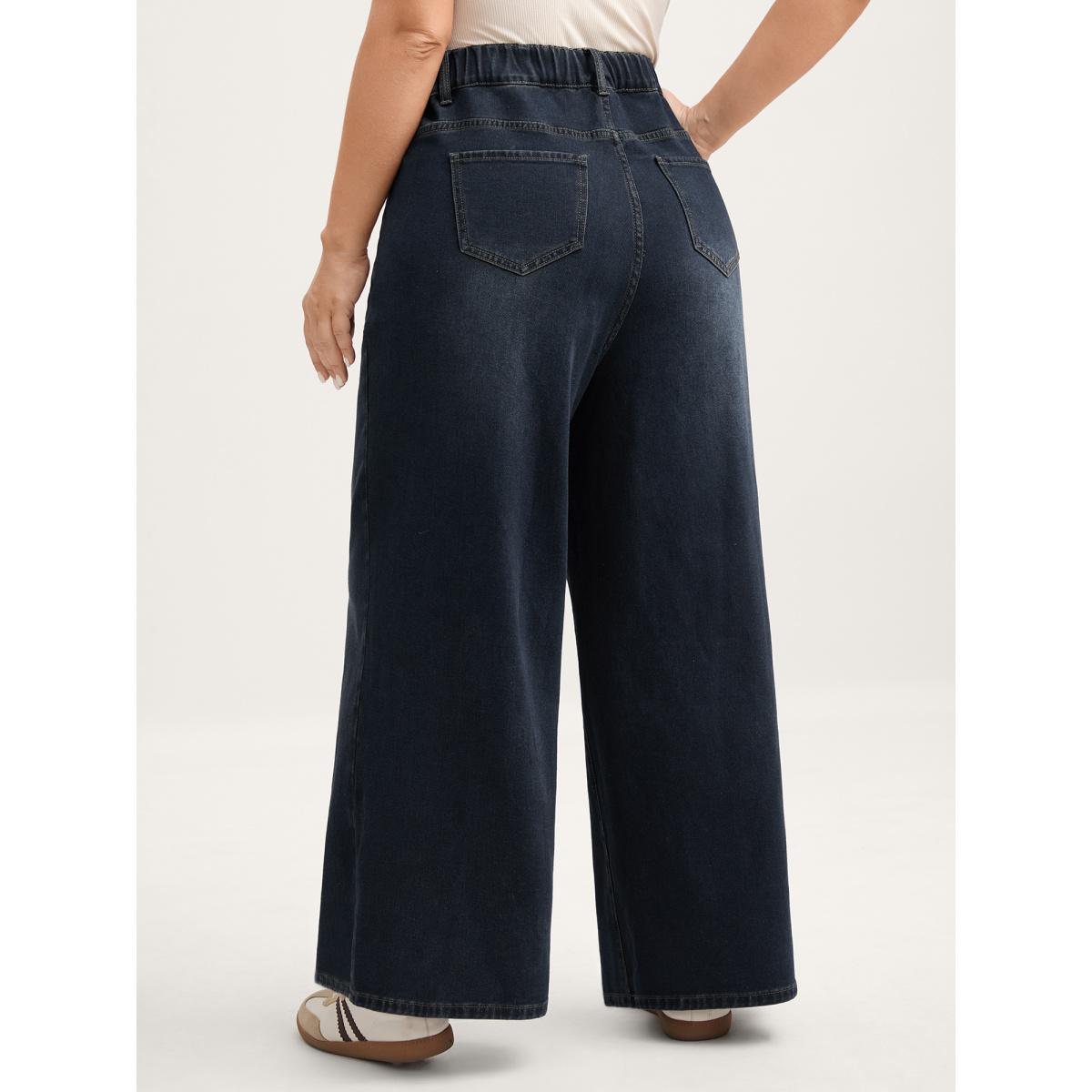 Plus Size Stretchy Waist Retro Wash Wide-Leg Jeans Women Darkindigo Leisure Elastic Waist High stretch Slanted pocket Jeans BloomChic 18/2X