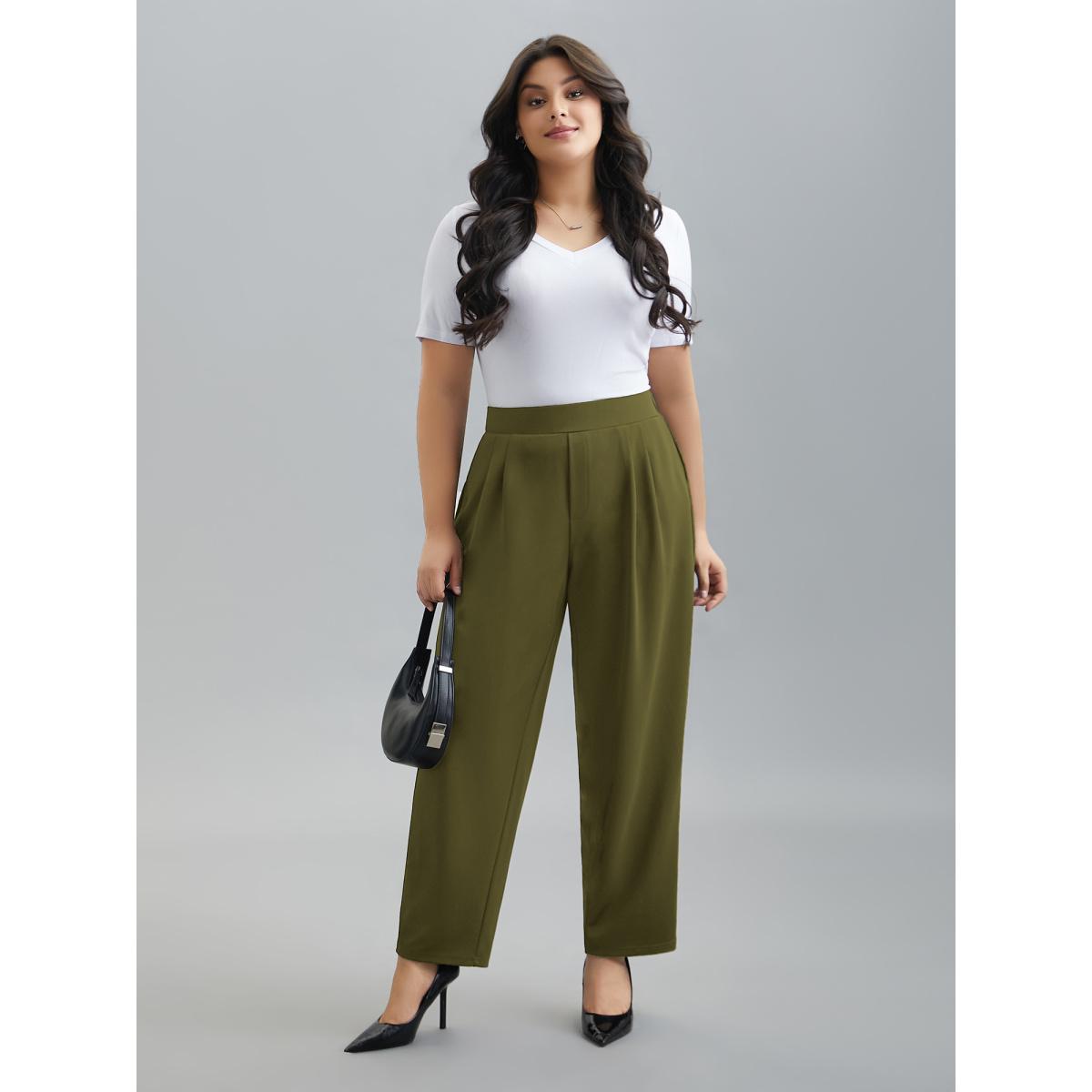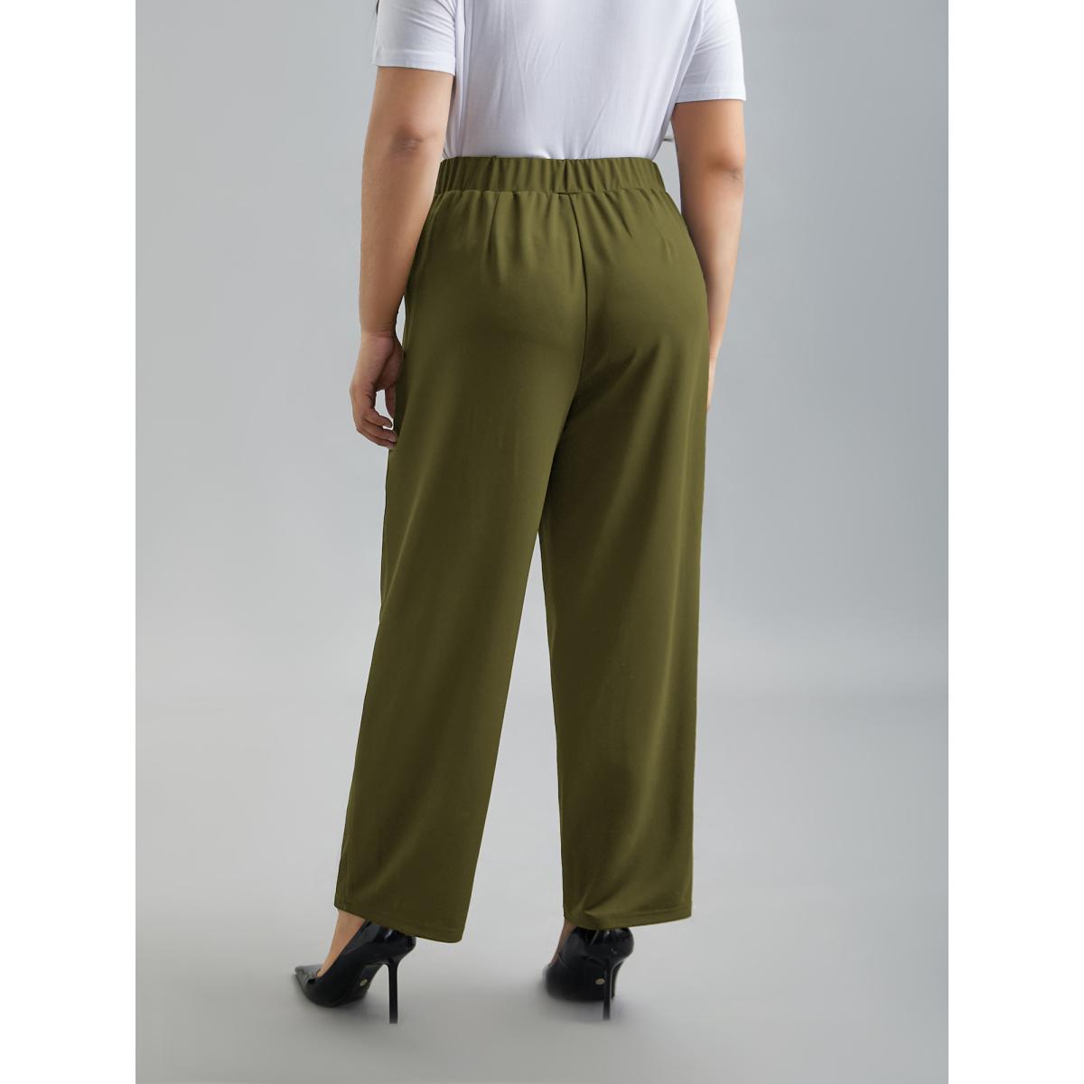 Plus Size Stretchy-Waist Straight Leg Pants Women Olive Workwear Essentials Straight Leg Mid Rise Work Pants BloomChic 14-16/1X