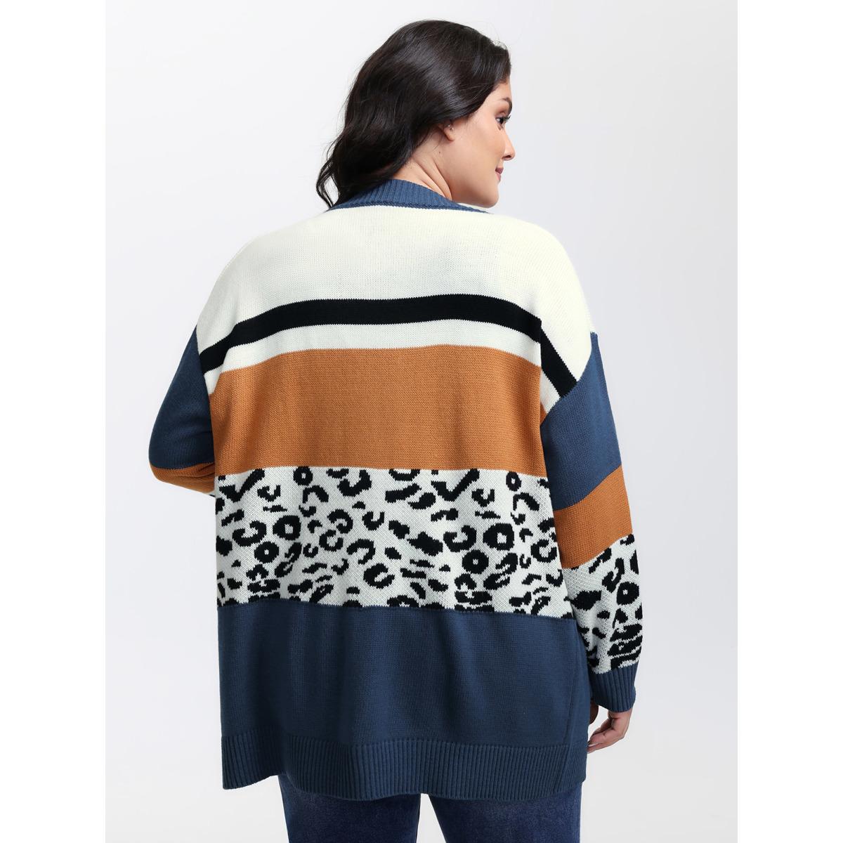 Plus Size Stripe Color Block Leopard Knit Cardigan Aegean Women Playful Loose Long Sleeve Casual Cardigans BloomChic 26/4X