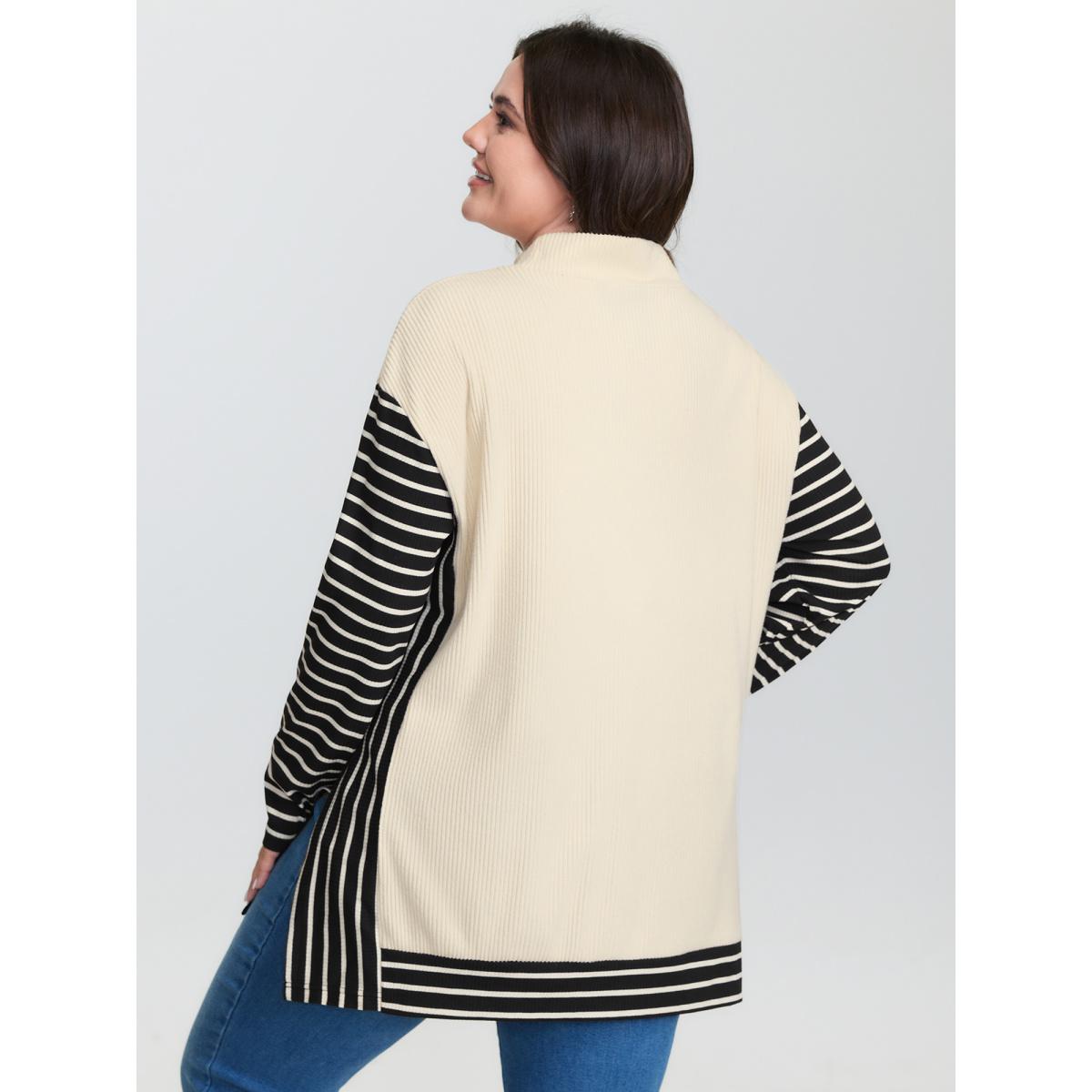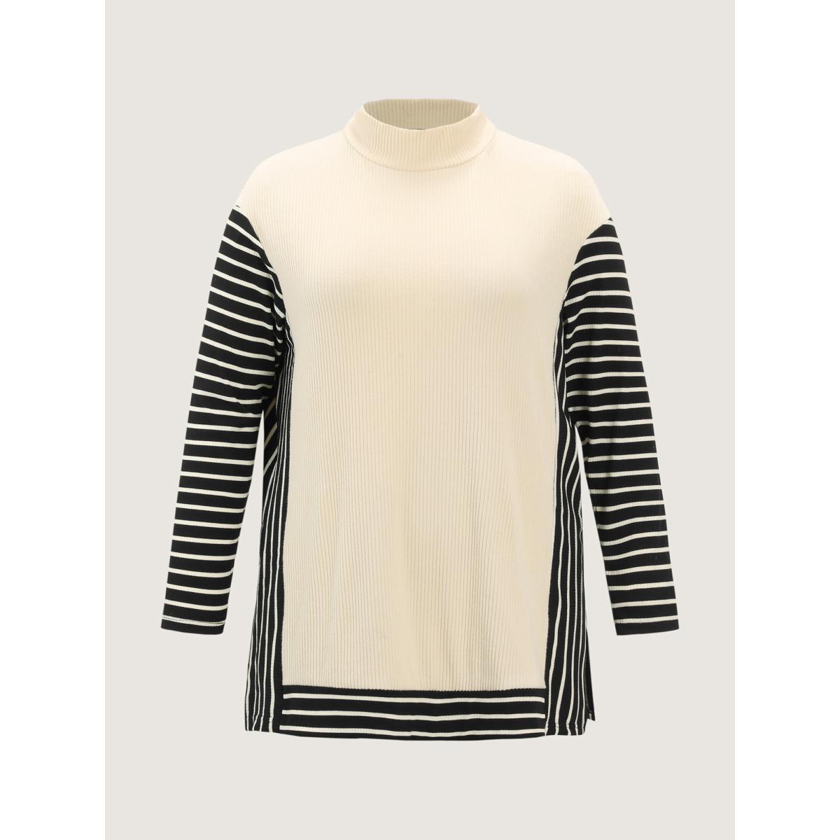 Plus Size Striped Color Contrast Mockneck T-Shirt Apricot Women Leisure Texture Mock Neck Casual T-shirts BloomChic 28/5X Product Image